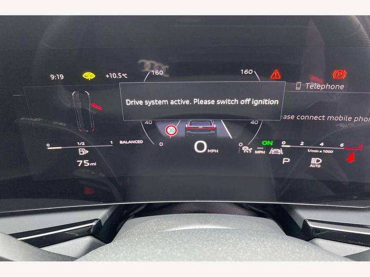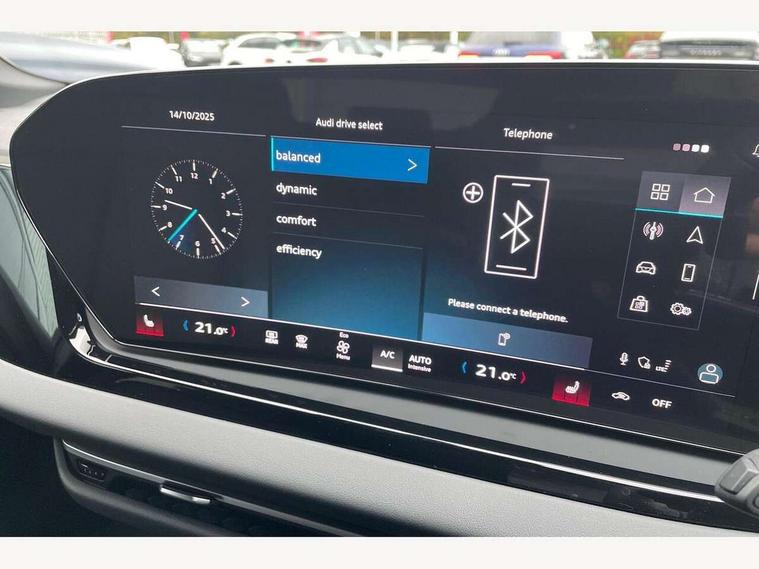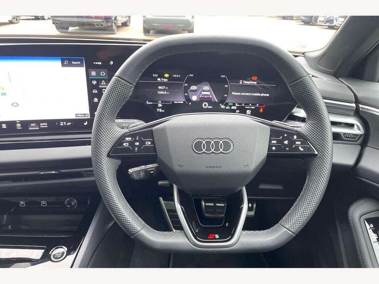 Adaptive cruise control, Advanced driver attention and fatigue montior, Audi application store, Audi assistant, Audi connect emergency call and service, Audi drive select, Audi smartphone interface, Audi virtual cockpit plus with 11.9" OLED colour display, Automatic start/stop system with coasting functionality, Camera based traffic sign recognition, Intersection assist, Lane departure warning, MMI navigation plus with high resolution 14.5" OLED touchscreen colour display, Park assist plus, Parking system plus with 360 display, Progressive steering with servotronic, Rear view camera, Swerve assist and turn assist, Traffic sign based speed limiter, Sports suspension lowered by 20mm, 2 USB-C ports in both the front and rear, Audi sound system impressive sound with 10 loudspeakers including centre speaker and subwoofer, 6-channel amplifier with a total output of 180 watts, DAB digital radio reception, Smartphone compartment with wireless charging, Aluminium roof rails, Aluminium window trims, Auto dimming rear view mirror, Body colour door mirrors, Door mirrors - electrically adjustable, heated, folding and auto dimming on both sides, Front and rear electric windows, Front door sill trims with aluminium inlays, illuminated with 'S' logo, High beam assist, LED headlights Plus incl. digital daytime running lights, turning light, all-weather light, motorway light, manouevring light and intersection light, LED rear lights pro incl. dynamic rear indicators and illuminated light strip with animated coming and leaving home function, LED third brake light, Privacy glass, Rear and side windows with heat insulating glass, Rear side wing doors, Rear wash/wipe, S Line badges on the front wings, S line bumpers, radiator grille and diffuser in phantom black and diffuser insert in matt anthracite, White rhombus logo projection light in exterior mirrors, Windscreen with acoustic glazing, 3 rear headrests, 3 seat rear bench, 3 spoke leather steering wheel with multi-function buttons with touch control, flattened on top and bottom, with S badging and contrast stitching, 3-zone automatic climate control, 40:20:40 split folding rear seat bench with centre armrest and cup holders, Comfort front centre armrest, Front and rear floor mats, Front seats with manual adjustment for position and 4-way electric lumbar support, Front sport seats with integrated headrest and S embossed logo, Headlining in black cloth, Heated front seats, i-Size child seat mounting on the front passenger side and outer rear seats, i-Size and top tether on the outer rear seats, Luggage compartment lid, electrically opening and closing, Manual steering column height and depth adjustment, Single front passenger seat, Stainless steel pedals and footrest, Steering wheel grips in perforated leather and shift paddles, Ambient lighting package plus - A5, 3x3 point rear seat belts, Driver airbag, Electric child safety locks, First aid kit with warning triangle and vests, Front emergency brake assist, Front passenger airbag, Front passenger airbag deactivation, Front side airbags with head airbag system and front interaction airbag, Hill hold assist, Seat belt monitoring with rear seat occupant reminder, Tyre pressure loss indicator, Anti theft alarm, Anti-theft wheel bolts, Keyless Go, Accent surfaces and control buttons in gloss black, Black dashboard with contrast stitching, Inlays in matt brushed aluminium with linear embossing, anthracite, Softwrap in leatherette with contrast stitching, Upper and lower interior elements in leatherette, Tyre repair kit,