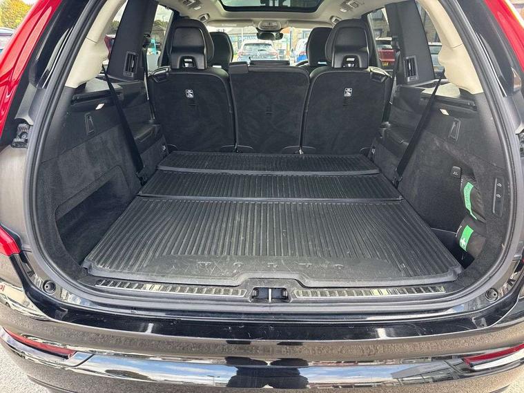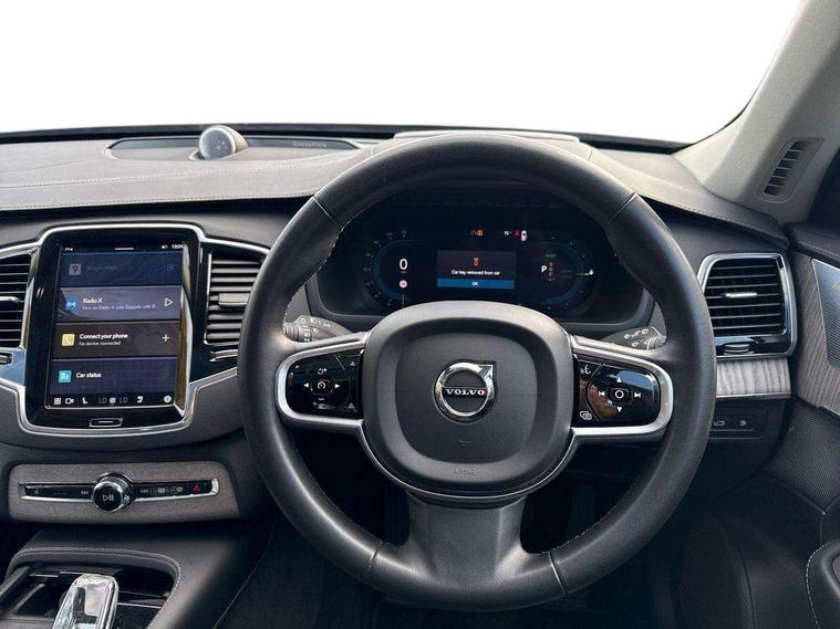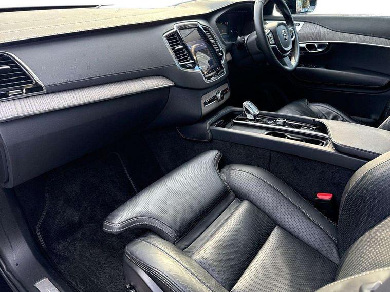 12.3" Progressive Driver Display, 360 degree surround view parking camera with side proximity sensors, 9" centre console portrait touch screen, Adjustable steering wheel force, Bluetooth hands free telephone connection, Drive mode settings, Driver alert control with lane keeping aid, Driver assistance (pilot assist and adaptive cruise control), Driver awareness - Blind spot information system with steer assist, cross traffic alert with autobrake and rear collision warning and mitigation, Emergency call service, Front and rear park assist, Google Automotive Services - Navigation with Voice recoginition and google assistant, Handsfree power tailgate opening and closing, Oncoming Lane Mitigation, Power operated tailgate, Service interval indicator, Speed limiter, Speed sensitive steering, Trip computer, Volvo on call, Wireless Mobile Phone Charger, 3.7 kW monophase on board charger, 7m 10amp Charge Cable with 3 Pin Plug and 7m 1-Phase 16amp Type 2 / Mode 3 Charge Cable, 8 speed automatic transmission with start/stop + manual change functions, Active four C chassis - four corner adaptive dampers with electronic air suspension, Electric rear axle drive, Lithium-ion battery, Recharging port located in nearside front wing, DAB Radio (Digital Audio Broadcasting), Low speed exterior sound speaker, Premium Sound by Bowers and Wilkins, dirac live, dolby pro logic II surround sound, 18 speakers/1400W output and fresh air subwoofer, Steering wheel remote infotainment controls, Active bending headlights with adaptive shadow technology, Adaptive brake lights with high level LED brake lights, Auto dimming interior + exterior mirrors, Auto folding and heated power door mirrors, Automatic headlight levelling system, Automatic LED Headlights + Active high beam incorporating daytime running lights, Body colour bumpers, Dark tinted windows - rear side windows and rear screen, Front and rear power windows, Headlight cleaning system, High gloss black door mirrors and window surround, High gloss black front and rear bumper deco, High gloss black mesh front grille with surround, Home safe and approach lighting, Integrated roof rails in high gloss black, Power glass tilt and slide panoramic sunroof with sun curtain, Puddle lights, Rain sensor with automatic windscreen wiper activation, Rear side wing doors, Rear wash/wipe with intermittent wipe setting, Roof antenna, Roof spoiler, Visible VIN plate, 12V socket front tunnel console, rear passenger compartment and cargo area, 2 seat bench in 3rd row, 2nd Row centre armrest with and cupholders, 3 seat bench in 2nd row, 4 zone electronic climate control with Clean zone air quality system + pollen filter, A-pillar parking ticket holder, Advanced interior air cleaner PM2.5, Air conditioning for 3rd row of seats, Ambient door and instrument panel lighting, B Pillar ventilation, Bright metal luggage threshold, Centre console cupholders and storage, Floor mats, Front and rear door pocket and front cupholder illumination, Front and rear reading lights, Theatre lighting and centre armrest storage illumination, Front footwell and side step illumination, Front headrests, Front seat cushion extensions, Heated front seats, Heated rear seats, Heated steering wheel, Height/reach adjustable steering column, Illuminated front and rear tread plates, Illuminated luggage compartment, Illuminated tailgate, Illuminated vanity mirrors + ticket holder, Illumination lockable glovebox compartment, Integrated sun curtains in rear doors, Isofix outer rear child seat preparation in 2nd row, Load protection net, Luggage compartment divider with grocery bag holder, Outboard armrest with cupholder and storage for third row passengers, Power driver seat with multi directional lumbar support and memory for seat and exterior mirrors, Power folding 2nd row headrests, Power passenger seat with multi directional lumbar support and memory, Rear footwell and side step illumination, Rear headrests, Recharge aluminium tread plates, Semi automatic load cover, Single front passenger seat, Underfloor luggage compartment storage, 7 three point seatbelts, City safety with steering support includes pedestrian, cyclist and large animal detection and front collision warning with full auto brake, Drivers knee airbag, Dual stage driver/passenger airbags, First aid kit, Front seats SIPS airbags, Hill descent control - off drive mode, Hill start assist, IC (Inflatable Curtains) - Full Length, Passenger airbag cut-off switch, Power child locks on rear doors, Power parking brake with auto hold function, Road sign information display, Run off Road Mitigation, Run off Road Protection, Seatbelt reminder and pretensioners for all seats, SIPS (Side Impact Protection System), Slippery road and hazard light alert, Stability and Traction Control with Spin control, Engine Drag Control and Corner Traction Control, Tyre pressure monitoring system, Vehicle deceleration control with Anti-lock Brake System, Electronic Brake Distribution and Emergency Brake Assist, Warning triangle, WHIPS whiplash protection system - front, Anti-theft alarm including immobiliser/volume sensor + level sensor, Care key with user defined top speed, Key integrated remote control central locking + fuel flap with deadlocking system and auto open/close power windows, Keyless drive includes keyless entry and keyless start, Locking wheel nuts, Private locking for glovebox and tailgate, Tailored Instrument Panel and Door Tops with Contrast Stitching, Tyre sealant kit and compressor,