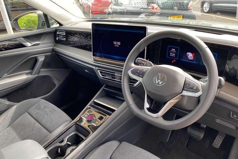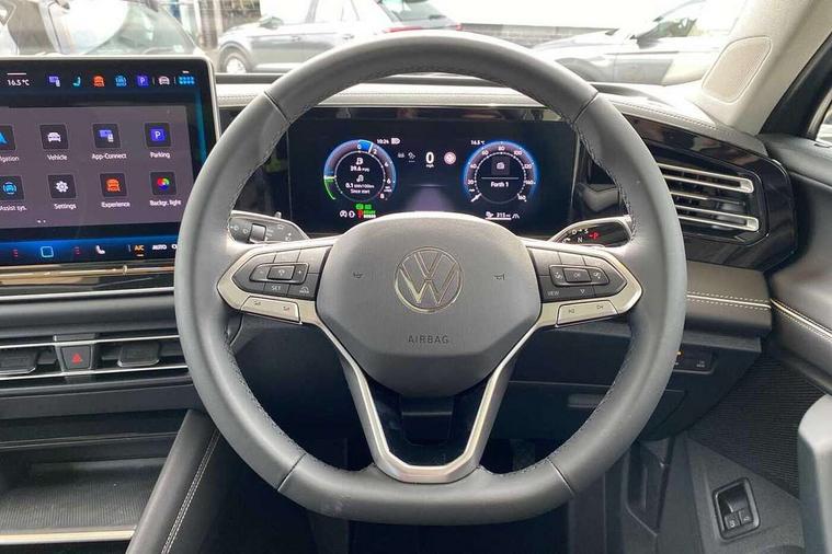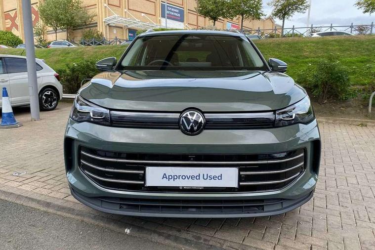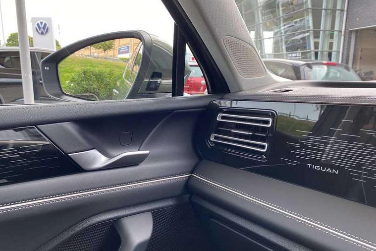 Adaptive cruise control (ACC), Advanced driver attention and drowsiness monitor, Bluetooth mobile phone interface, Car2X technology, Comfort drive travel assist, lane keeping system, lane assist and emergency assist, Digital Cockpit Pro - 10.25" high resolution dash display screen with customisable menus and information, Dynamic road sign display, E-Sim card for online connectivity, eCall emergency call service, Front Assist - Autonomous emergency braking with pedestrian and cyclist monitoring, Lane change system, Side assist, Rear traffic alert and Exit warning system, Multifunction front facing camera, Oncoming vehicle braking when turning including swerve support, Park assist pro with park distance control (Remote park assist), Power assisted steering with speed sensitive, Start/stop system with regenerative braking, Warning signal and warning light for front and rear seatbelts not fastened, Wireless App-Connect, Adaptive chassis control DCC pro includes driving mode selection, Charging cable Mode 3 Type 2 / 3 (16A), Front shock absorption, Front wheel drive, Rear shock absorption, Digital radio reception (DAB), Diversity antenna for FM reception, Air intake with Chrome trim, Ambient lighting with logo projection, Auto dimming interior rear view mirror, Automatic headlight control system, Body colored bumpers in R-Line style, Body coloured door handles, Body-coloured exterior mirror housings, Chrome moldings on the side windows, Coming/leaving home lighting function, Heat insulating glass in side and rear windows, Heated rear window, Heated windscreen washer jets, High level 3rd brake light, Illuminated door handle recesses, Illuminated lightline between headlamps, Laminated safety glass from B-pillar backwards 90% tinted, Laminated safety glass windshield, LED Day time running light, Rain sensor windscreen wipers, Rear fog light on one side, reversing light on both sides, Rear side wing doors, Rear wiper, Silver roof rails, 12V outlet in center console rear and in luggage compartment, 12V socket in centre console, 3 bench rear seats in 2nd row, Air care climatronic 3 zone air conditioning system with rear air conditioning control panel, Carpet mats, front and rear, Centre console with illuminated storage compartment with sliding cover and two drinks holders, Ceramique headlining, Chrome elements on the mirror switch and power window switches and door pulls, Door and side trim panel with leatherette insert, Door sill protectors, Front centre armrest, Interior ambient lighting with 30 colour options, ISOFIX anchors for child seats on outer rear seats and front passenger seat compatible with i-Size, Mechanical rear seat release, Power adjustable lumbar support in front, Rear bench seat, split folding, longitudinally movable and folding with load-through hatch and centre armrest, Safety optimised front head restraints, Single front passenger seat, Sports comfort seats in front, Sun visors with illuminated vanity mirrors, Three rear head restraints, Variable luggage compartment floor, Comfort package with park assist plus and Safelock - Tiguan, Driver assistance package - Tiguan, 3 point seat belt for centre rear seats, 3 Point seat belts in front with pretensioners, 3 point seatbelts in outer rear with ECE label, Driver and front passenger airbag with front passenger airbag deactivation, Electronic parking brake with auto hold, Front and rear curtain airbags, Front and rear side airbags, Front centre airbag, Front disc brakes, Hill start assist, Manual child proof rear door locks, Rear disc brakes, Two tone horn, Warning triangle, Decorative inserts Cross in dash and front door panels, Interior door handle in matte chrome, Soul instrument panel, Tyre mobility kit including compressor and sealing foam,