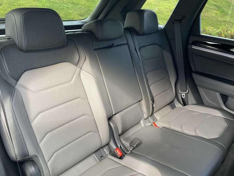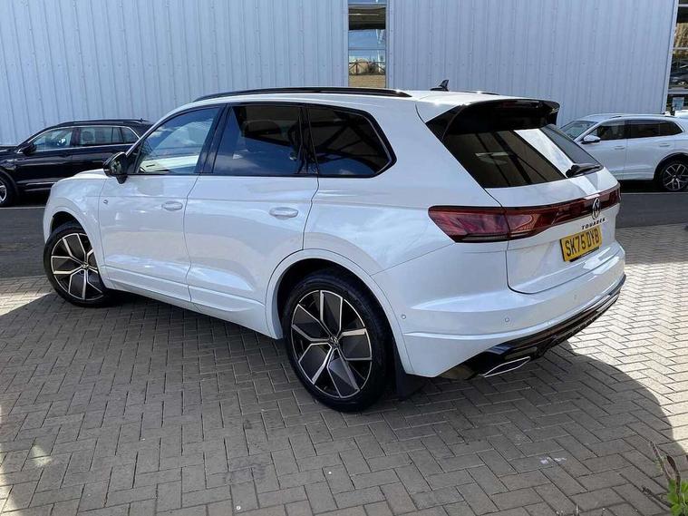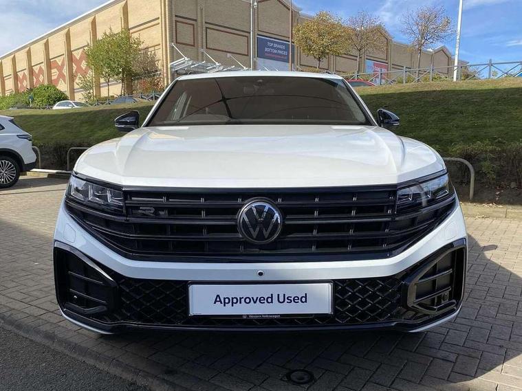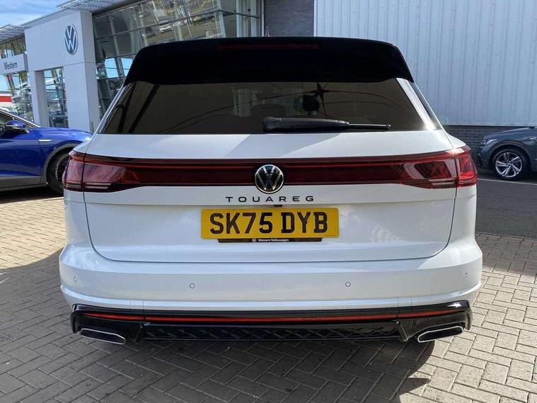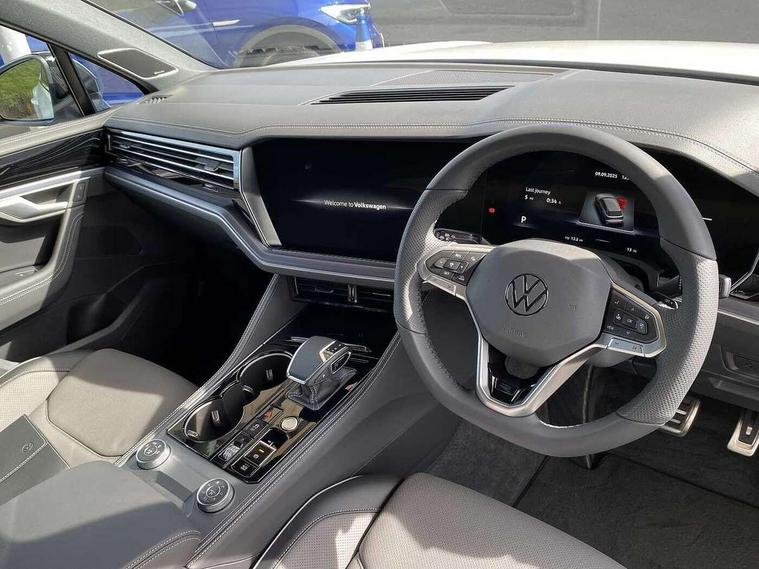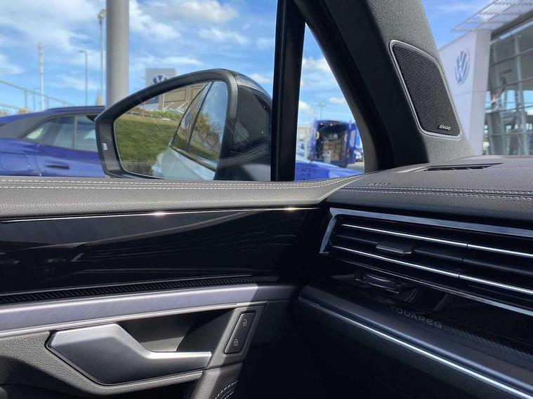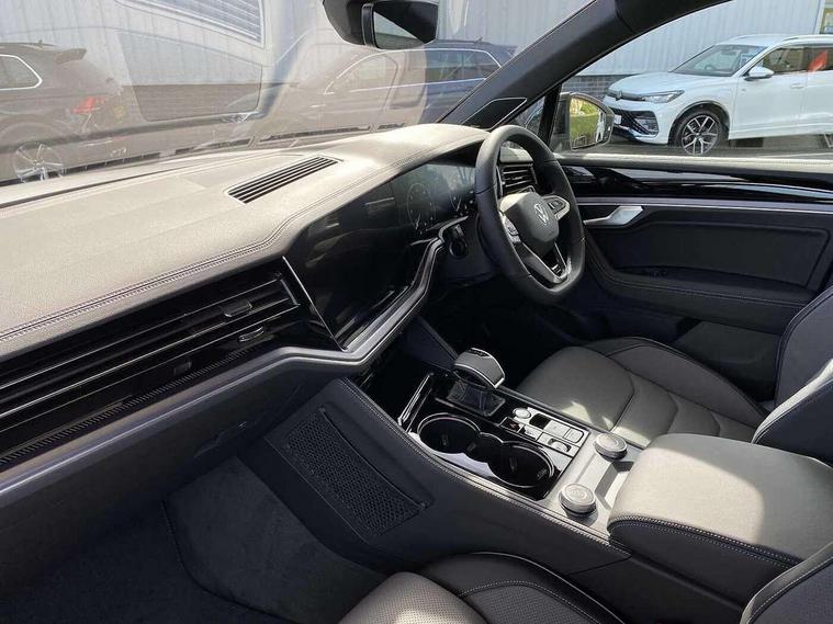 15" Screen Top infotainment system Premium (MIB3), Adaptive cruise control, Advanced driver attention and drowsiness monitor, Driver profile selection, Dynamic road sign display, E-Sim card for online connectivity, eCall emergency system, Innovision cockpit, Intelligent park assist, Mobile phone interface with inductive charging, Multi-colour Active Info display, Park Assist - Sensor controlled steering aid to assist parallel or bay parking, PAS, Warning signal and warning light for front and rear seatbelts not fastened, Wireless app connect, Adaptive chassis control, DAB Digital radio, Diversity antenna for AM/ FM reception, We Connect and We Connect Plus functionality, Automatic coming/leaving home lighting function, Automatic headlights, Black door mirrors, Black style comfort bumpers, Dynamic headlight range control with dynamic cornering light, Electric front tilt/slide panoramic sunroof and fixed rear sunroof, Electrically power adjustable, heated, folding, auto dimming, front passenger exterior door mirror lowering function, External USB type C socket and charging sockets, Gloss black roof rails, HD LED Matrix beam plus digital headlight projection with variable light distribution, Headlight washers, Highway light, LED 3rd brake light, LED daytime running lights, LED rear combination lamp with variable lighting functions and special styling, Poor weather light, Rain sensor, Rear exhaust tailpipe, Rear fog light with back up light on both sides, Rear light bar and illuminated logo, Rear side wing doors, Rear wiper, Stainless steel door sill protection, 12V socket in centre console, 3 rear headrests, 3 seat bench in 2nd row, 4 zone climate control, Airbag label on sun visor and B-pillar, Brushed stainless steel pedals, Double sun visors with illuminated vanity mirrors, Front + rear carpet mats, Front centre armrest, Leather wrapped multifunction sports steering wheel, heated, with touch control and shift paddles, Mechanical rear seat release, Power adjustable lumbar support in front, Power seats in front, right side with memory features and seat cushion depth adjustment, Rear seat backrest and split folding with center armrest, Single front passenger seat, Memory pack plus - Touareg, 3 point seatbelts, outer rear with ECE lable, ABS, Child locks on rear doors, Curtain airbags, Driver and front passenger safety-optimised head restraints, Driver/Front Passenger airbags, Extended pedestrian protection measures, Front assist, Front seat side impact airbags, Generative braking with start and stop system, Height adjustable 3 point front seatbelts with pre tensioners, Passenger airbag deactivate switch, Three 3 point rear seatbelts, Two tone horn, Warning triangle and first aid kit, Alarm system with interior protection, Easy open and close sensor controlled luggage compartment opening and closing with remote unlocking, Keyless Access Keyless locking and starting system with SAFELOCK, Aluminium decorative inserts, Black decorative trims, Gloss black decorative inserts in centre console, Tool kit,