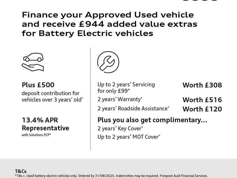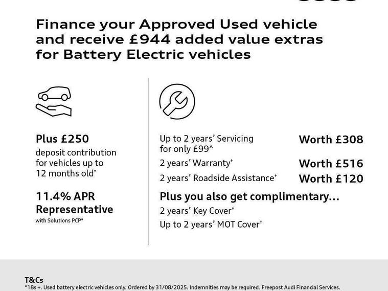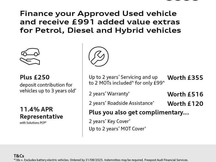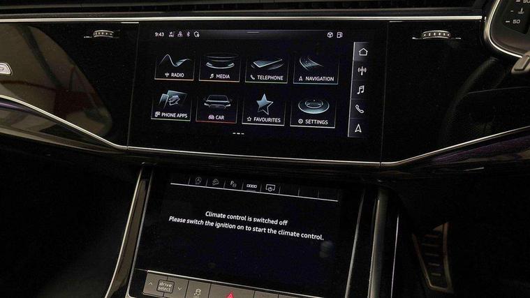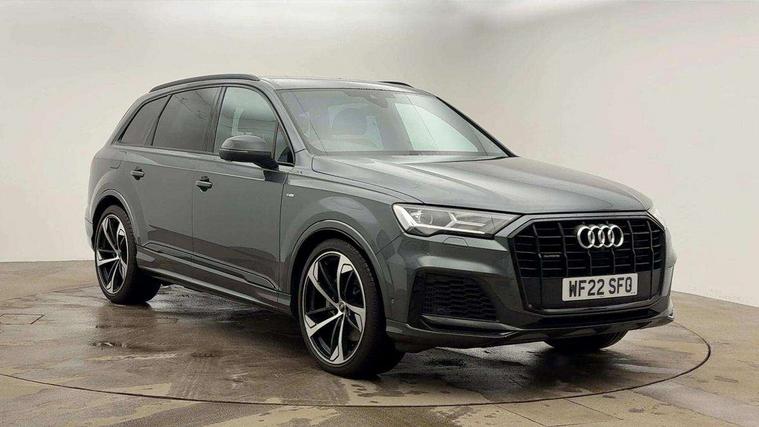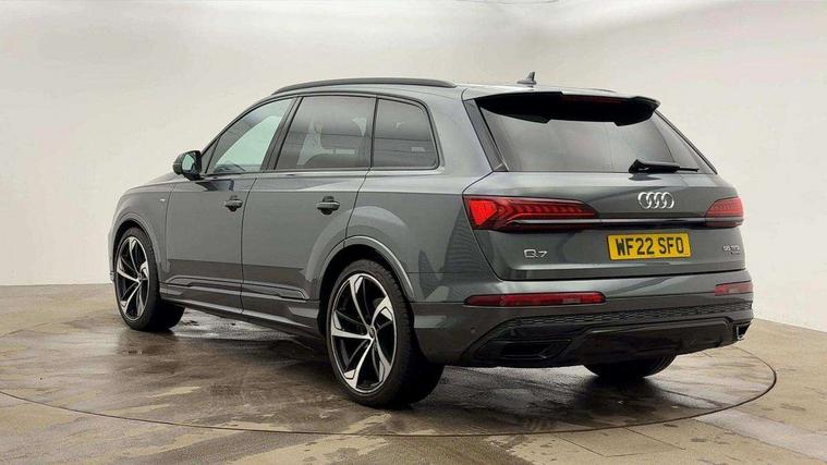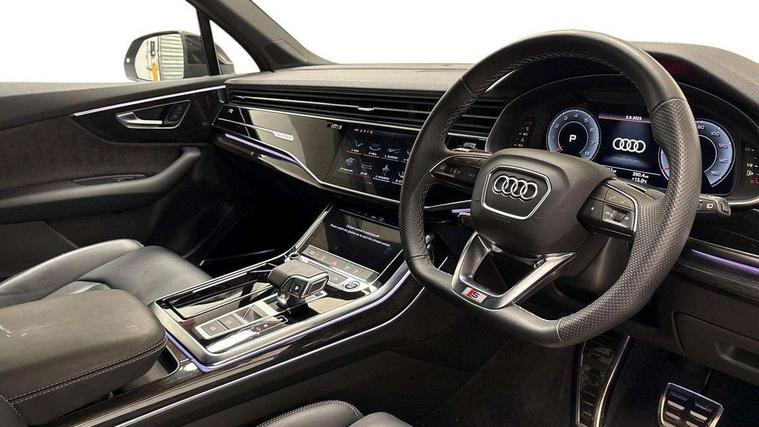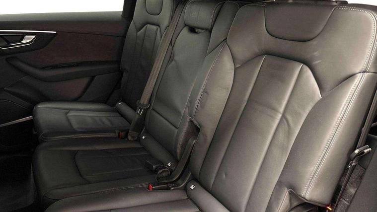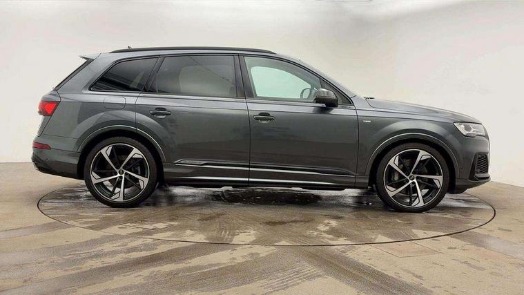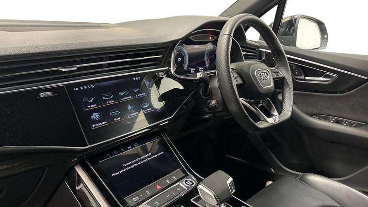 Audi connect safety and service (e-call), Audi connect with Amazon Alexa Integration, Audi drive select (Auto, Comfort, Dynamic, Efficiency, Individual, Off-road and All road), Bluetooth interface, Camera based traffic sign recognition, Electromechanical steering, MMI navigation plus with MMI touch screens includes 10.1" and 8.6" screens with haptic feedback, Natural voice recognition, Parking system plus with 360 degree display (front, rear and side sensors) - acoustic and visual park assist system, Power operated tailgate, Rear view camera, Smartphone interface includes wireless Apple carplay/Android Auto, Start/stop system, 48V Mild hybrid technology, 85 litre fuel tank, Adaptive air sports suspension, Quattro all wheel drive with self locking centre differential, Audi music interface - front 2 USB-C ports with charger and data functions, Audi sound system with 6 channel amplifier, 180 watt amplifying capacity and 10 loudspeakers including subwoofer, DAB digital radio module, 3rd brake light, Audi matrix LED headlights with dynamic front and rear indicators, Auto dimming frameless rear view mirror, Black roof rails, Bumpers in contrast paint scandium grey finish includes door trim and wheel arch trim strips, inlays in door strip contain quattro embossing, Electrically adj heated/folding + automatically dimming exterior mirrors with memory + automatic kerb side function for passenger side exterior mirror, Heat insulating glass in windshield, Integrated LED indications in door mirrors, LED daytime running lights, LED rear tail lights, Privacy glass - dark tinted rear and rear side windows from B-pillar backwards, Rear side wing doors, Rear wiper, 2 seat bench in 3rd row, 3 seat bench in 2nd row, 4 zone deluxe automatic climate control, 7 seat layout with ISOFIX points for the front passenger seat and rear passenger seat, Black cloth headlining, Comfort front centre armrest, Electric adjustable front seat with 4 way lumbar support, driver memory functionality, Folding rear seats, Front head restraints, Front/rear floor mats, Heated front seats, Illuminated door sill trims with S logo, LED interior ambient lighting, Luggage compartment cover, Luggage compartment sill protection in stainless steel, Rear head restraints, Single front passenger seat, Stainless steel pedals, Sunvisors with illuminated vanity mirrors, Titanium black styling pack - Q7/SQ7, 3 point seatbelts on all rear seats, Audi pre sense front, Child locks on rear doors, Driver and front passenger, front side and curtain airbags, Electromechanical parking brake, Electronic Stabilisation Control (ESC) including ABS, ASR and EDL, Extended pedestrian protection measures, Hill hold assist, Seatbelt monitoring, Tyre pressure loss indicator, Warning triangle and first aid kit, Anti theft alarm, Anti-theft wheel bolts and wheel loosening detection, Keyless Go, Remote central locking, Polished oak trim with grey finish inlay, Tool kit, Tyre repair kit,