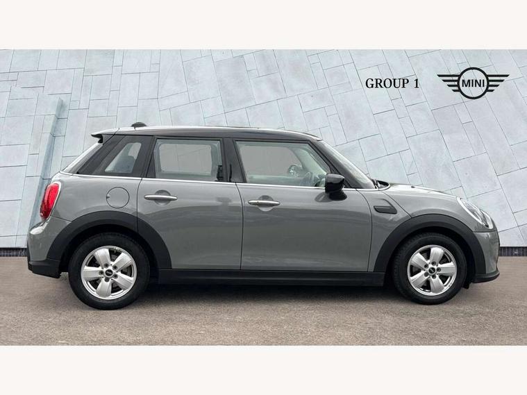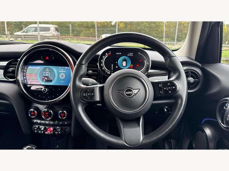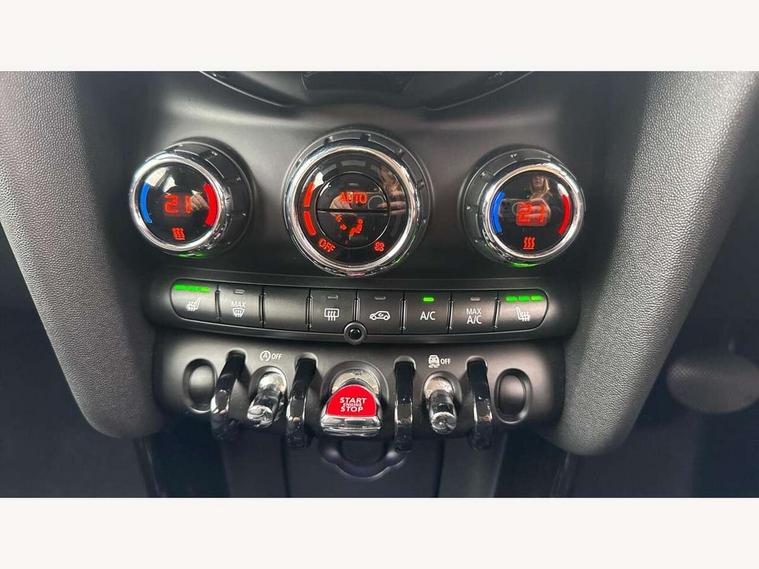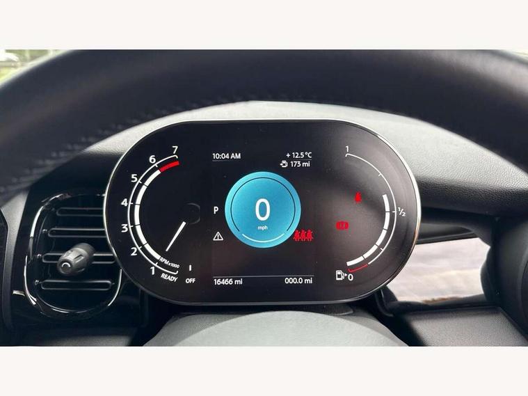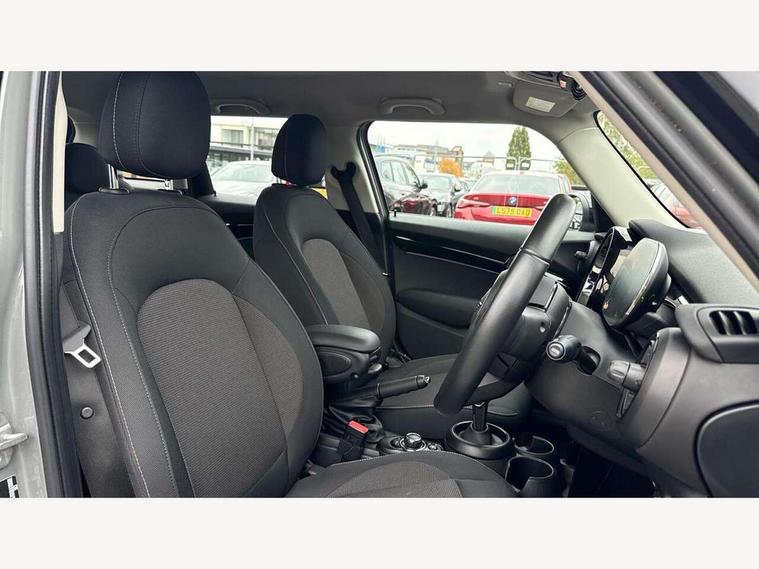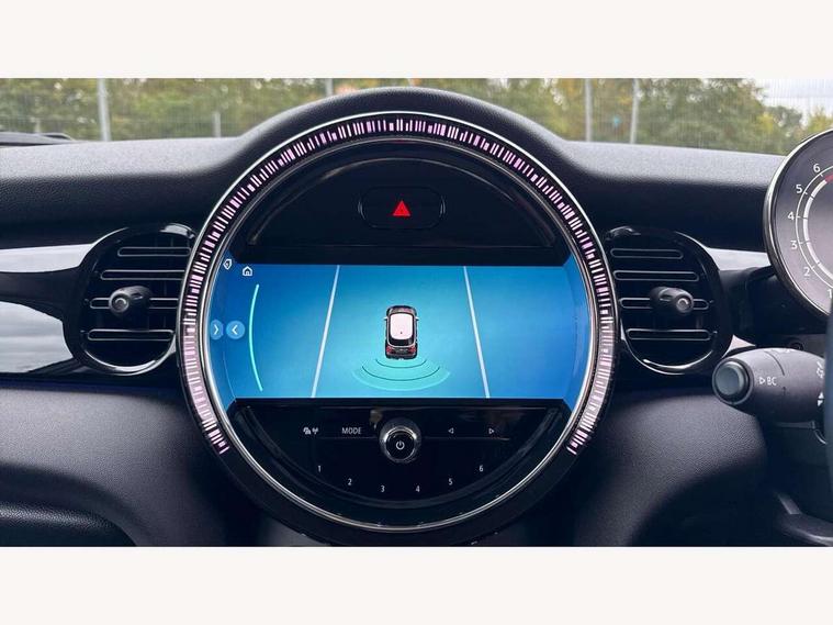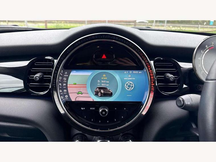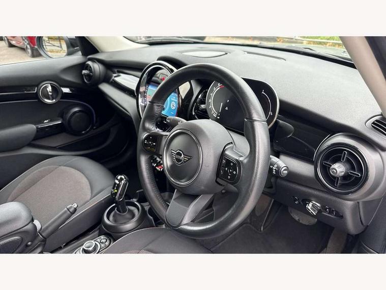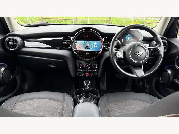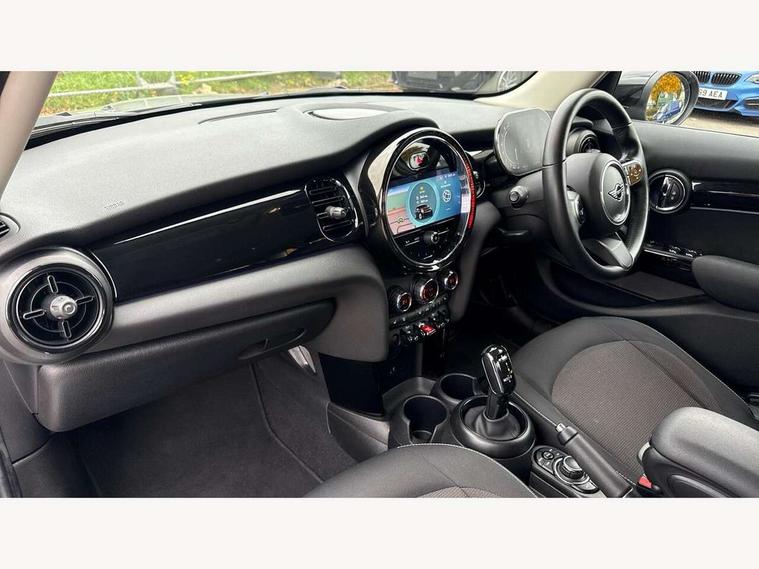 Automatic start/stop function with brake energy recuperation, Compatible mobile phone bluetooth with audio streaming, Cruise control with brake assist, Electro-mechanical speed dependant steering assistance, Flexible car sharing preparation, Instrument cluster, Mini E-call, MINI TeleServices, On board computer, Service interval indicator, Double Vanos system, Fully variable valve control, Gear change indicator display, High precision injection, Performance Control, Steptronic transmission with double clutch, 6 speakers in front door trims and underneath front seats, 8.8" touchscreen with LED ring, FM tuner and DAB digital radio, Automatic headlight activation switch, Body colour fuel filler cap, Chrome border high gloss black slats radiator grille, Dynamic brake lights, Electric front+rear windows, Exhaust tailpipe on left with chrome finisher, Heated rear window, Heated windscreen washer jets, LED headlight with closed ring and daytime driving lights, Metal door sill strips with MINI imprint, Model logo Cooper on right of tailgate, Rain sensor window wipers, Rear fog lights, Rear LED lights with union jack design, Rear window wiper, Side scuttle panel with integrated indicator, Sun/heat protection glass, White indicator lenses, 12V Accessory socket in centre console, 4 lashing eyes in luggage compartment, 60/40 split folding rear seat, Ambient lighting, Carbon black colour line - Knee roll and door armrest, Chrome interior highlights, Cupholders, Front and rear head restraints, Front and rear isofix with front passenger airbag deactivation, Glove compartment, Height and length steering column adjustment, Interior lighting with 12 different colours across the dashboard, underneath door bezel with illuminated laser-engraved design on central display, Leatherette gearshift lever and handbrake gaiters, LED reading lights, vanity mirror lights, front foot well light and spotlight on front seats, Manual air conditioning, Mechanical seat adjustment - forward/back & backrest for front seats and driver seat height adjust, Multifunction steering wheel, Satellite grey headlining including grab handles and clothes hooks, Sport leather steering wheel with speed limiter and audio/communication controls, Storage compartments in doors, Sunvisors with vanity mirrors, Velour floor mats, 3 point seatbelts on all five seats, 6 Airbags - front, side, head and seat belt tensioners, Anti-lock braking system (ABS), DSC - Dynamic Stability Control, Front and rear disc brakes, Hill start assist, Single tone fanfare horn, Tyre pressure monitoring system, Alarm system with tilt sensor, monitoring doors, bonnet interior and tailgate, Electronic vehicle immobiliser, Start/stop toggle with keyless go, Piano black interior trim, Tool kit, Tyre repair kit,