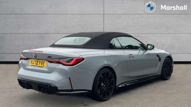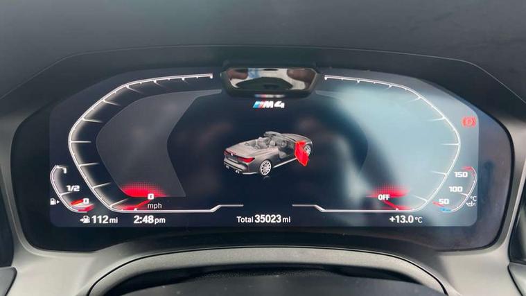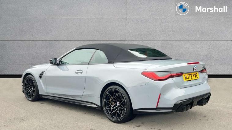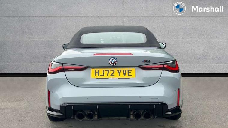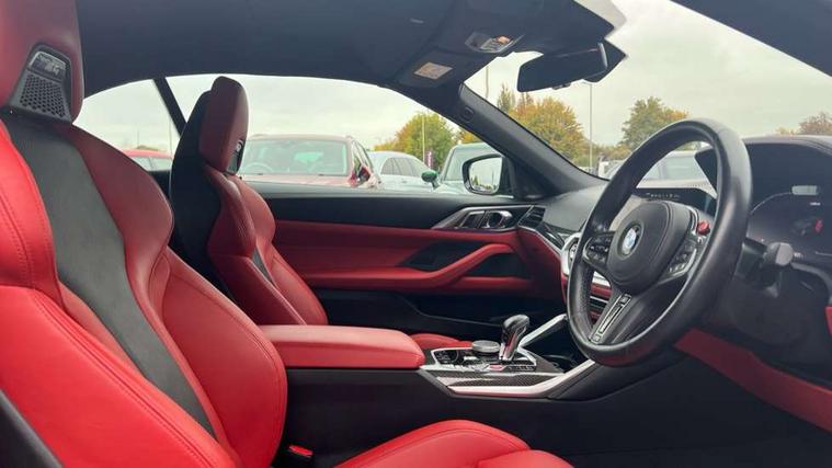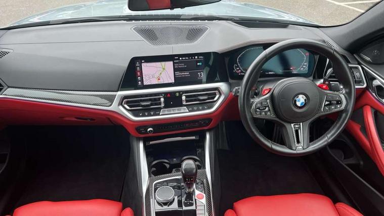 Active guard plus, Automatic start/stop system, BMW ConnectedDrive online services, BMW iDrive controller on centre console, BMW legal emergency call, BMW Live Cockpit Professional sat nav system with 12.3" instrument display and high resolution control display, BMW Teleservices, Brake pad wear indicator warning light, Condition based service, Connected drive services, Door/boot open warning light, Driving experience switch, Electric Power Steering (EPS) with Servotronic, Enhanced bluetooth with wireless charging, Head up Display, Instrument cluster with extended contents, Lights on warning, M drive buttons, Oil sensor for level and grade, warning by check control system, Oil temperature gauge, On board computer, On board diagnostics, Optimum shift indicator, Outside temperature display, Pull away assistant, Run flat indicator, Service interval indicator, Shifting point display, Speed limiter, Variable sport steering, Wi-Fi hotspot, Adaptive M Sport suspension, Double joint spring strut front axle, M Drive Professional including track mode, laptimer, traction control & Drift analyser, M Sport differential, M steptronic sport transmission with drivelogic, Safety battery terminal clamp, 8 programmable favourite buttons, Auxiliary point for auxiliary devices, BMW professional radio/CD/MP3, DAB Digital radio, Harman/Kardon loudspeaker system, Acoustic laminated side glass, Auto dimming driver's door mirror, Auto dimming rear view mirror, Automatic headlights + automatic windscreen wipers, Black chrome exhaust tailpipes, Black model designation badges, BMW high gloss shadow line with extended contents, BMW Individual shadowline lights, Body colour bumpers, Body colour door handles, Carbon fibre reinforced plastic (CFRP) roof, Day time running light, Door mirror integrated indicators, Door sill finishers with aluminium inserts, Dynamic brake lights, Electric adjustable heated door mirrors, Electric folding door mirrors, Follow me home headlights, Front and rear bumper system, Front electric windows with open and close fingertip control, anti trap facility and comfort closing, Headlight beam throw control, Heated washer jets, High beam assistant, High gloss black frameless kidney grille with M badge, LED number plate light, LED tail lights with 3D L-shaped LED light design, M designation, Mirror glass aspheric on driver's side, convex on passenger side, Rain sensor, Rear boot, Rear fog lights, Rear reflectors, Reversing light, Shark fin roof aerial, Third brake light, Visible VIN plate, Welcome lighting, 2 cupholders in front centre console, 2 rear head restraints, 2 x 12 V Power sockets (luggage compartment and front centre console), 2 x USB Type C ports for charging and data transmission in front centre console, 2 x USB Type C ports for charging in rear centre console, 40:20:40 split folding rear 2 seat bench with loading system, Ambient lighting, Anthracite headlining, Battery in luggage compartment, Carbon fibre centre console incl. cover for cupholders, Carbon fibre decorative steering wheel finishers, Carbon fibre shift paddles, Carbon fibre strip in instrument panel on front passenger side, Centre console armrest with storage compartment, Compartment in front of cupholder, Driver/passenger sunvisors with illuminated vanity mirrors + covers, Electric front seats + driver memory, English handbook, Floor mats in velour, Footwell lighting, Front and rear door exit lights, Front door storage bins with bottle holder, Front interior light, Front isofix attachment + airbag deactivation, Front seat backrest width adjustment, Front seats lumbar support, Front/rear door armrests, Gearshift lever with embossed M badge, Heated front seats, Height adjustable front headrests, Interior mirror lighting, Isofix on 2nd row seats, Lockable/illuminated glovebox, Luggage compartment lighting, Multifunction steering wheel, Rake/reach adjustable steering wheel, Single front passenger seat, Storage compartment in rear doors, Storage tray and compartment with cover in centre console, Three zone automatic air conditioning, Toolkit located in luggage compartment, Warm air collar, Additional storage compartment pack - M4, Connected package professional - M4, High gloss shadowline exterior trim pack - M4, 4 x 3 point seatbelts, ABS/EBD, Automatic Stability Control (ASC), Brake energy regeneration, Brake fade compensation, Compound structure brake discs, Cornering brake control (CBC), Crash sensor, Curtain airbags, Driver/Front Passenger airbags, Dry braking, Dynamic brake control, Dynamic Stability Control with M Dynamic mode, Dynamic Traction Control - DTC, Electromechanical parking brake, Electronic differential lock control (EDLC), Front and rear head airbags, Front seat side impact airbags, Front seatbelt pretensioners + load limiters, Hill start assist, M Sport seat belts, Seatbelt warning, Side impact protection, Two tone horn, Tyre pressure sensor, Warning triangle and first aid kit, Centre lock switch, Closing system with central locking, Digital key, Electronic immobiliser, Remote central locking, Thatcham cat 1 remote alarm, Vehicle Key with 4 buttons including the integrated key, Galvanic finish to control surrounds, High gloss black interior trim, Tyre repair kit,