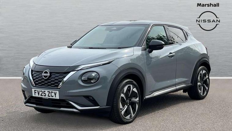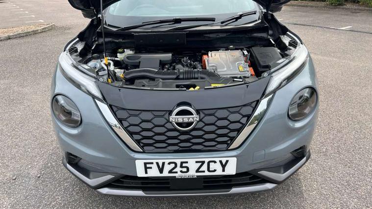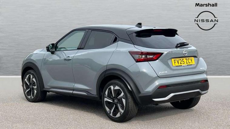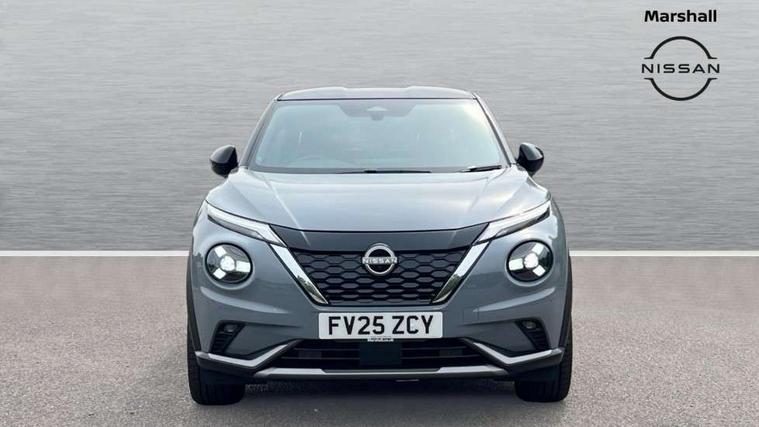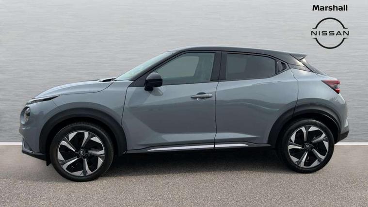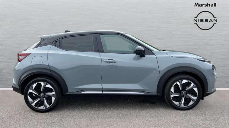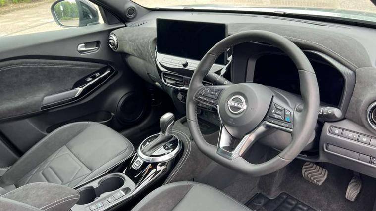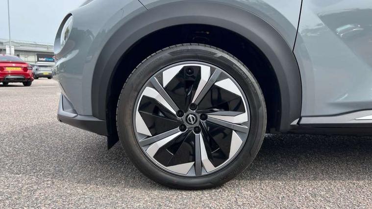 12.3" full colour TFT screen combimeter, Drive modes select (Eco, normal and sport), e-Pedal step, Emergency and breakdown call, EV mode switch, Front parking sensor, Intelligent driver alert system, Intelligent lane intervention, Lane departure warning system, Nissan connect 12.3" touch screen entertainment system, Nissan connect nav with TomTom traffic, Nissan connect services, Outside temperature sensor, Power Steering, Rear parking sensor, Stop/start button, Traffic sign recognition, Trip computer, Voice recognition, WiFi connectivity, Wireless Apple CarPlay and Google Android auto, Wireless Smartphone charger, 10 Bose speakers 8 speakers and 2 headrest speakers for driver/passenger seats, 2 X Rear console USB port, Bluetooth system, USB, Aux-in and 12V socket, Bose personal plus audio system, DAB Digital radio, Auto dimming frameless rear view mirror, Automatic hazard signal with emergency stop signal, Body colour door handles, Electrically adjustable door mirrors with integrated indicators, Follow me home headlights, Front and rear electric window with one touch driver window, High beam assist, LED 3rd brake light, LED daytime running lights, LED front fog lights, LED headlamps, LED rear fog lamp, LED rear lamps, One touch passenger window, Rear privacy glass, Rear side wing doors, Rear wiper, Roof spoiler, Shark fin roof antenna in solid Black, Solid black door mirrors, Solid black front bumper/rear bumper and side skirts inserts, Three blink turn signal, 3 height adjustable rear headrests, 3 seat bench in 2nd row, 60/40 split folding rear seat, Card holder on driver sunvisor, Door ambient lighting, Driver seat back pocket, Driver side rear coat hanger, Driver/passenger sunvisors and vanity mirrors, Front and rear cabin lights, Front armrest, Front door pockets with bottle holders, Front head restraints, Front/rear passenger grab handles, Gear console ambient circle lighting, Height adjustable driver's seat, Internal chrome door handles, Luggage board, Luggage space lighting, Monoform sporty seats, Multifunction steering wheel, Passenger seat back pocket, Rear door bottle holders, Single front passenger seat, Smooth synthetic leather steering wheel, Synthetic leather kneepad, Synthetic leather shift knob, Telescopic steering wheel adjustment, Two cupholders in front centre console, Two rear isofix child seat anchorage points with top tether, Welcome light and console tray ambient lighting, Comfort pack - Juke, Heat pack with height adjustable passenger seats - Juke, Interior personalisation pack - Juke, ProPilot pack - Juke Auto, Satin grey exterior personalisation pack - Juke, ABS with EBD and brake assist, Active ride control, Active Trace Control, Driver and passenger airbags, Driver and passenger side airbags, Electric handbrake with auto hold function, Electronic Stability Programme (ESP), Front and rear curtain airbags, Height adjustable seatbelts, Hill start assist, Intelligent emergency braking with pedestrian and cyclist recognition, Rear door child safety locks, Seatbelt reminder for driver/front passenger and rear seats, Three 3 point rear seatbelts, Traction control, Tyre pressure monitoring system, VDC Dynamic Vehicle Control, Alarm, Immobiliser, Intelligent key and start push button with walk away lock and approach unlock functions, Remote central locking, 19" Aero alloy wheels, Tyre puncture repair kit,