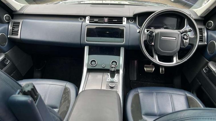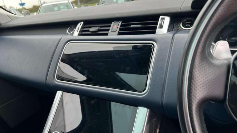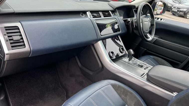 Bluetooth telephone connection, Dynamic response, Front parking aid with visual display, Gesture tailgate, InControl secure, Mist sensor, Navigation pro system with 10" touch screen, app interface and media storage, Push button starter, Rear park distance control, Speed sensitive power steering, TFT Virtual Instrument Panel, Trip computer, Adaptive dynamics, All terrain progress control, Electronic air suspension, Terrain Response 2 with dynamic program, Twin speed transfer box, Bluetooth audio streaming, DAB Digital radio, InControl protect, USB/aux input socket, Adaptive brake lights, Auto dimming rear view mirror, Body coloured side sills and bumpers, Daytime running lights, Door/quarter lights in toughened plate glass, Electric front/rear windows/one touch operation, Electric heated, adjustable, folding door mirrors with memory + approach lamp, Follow me home headlights, Front fog lights, Heated rear window, Heated washer jets, Heated windscreen, Laminated front side windows, Laminated windscreen, LED rear lamps, Rear wash/wipe, Remote window closing, Trailer stability assist, Twin bright tailpipes, 2 way active front head restraints, 2 way rear head restraints, Auto air recirculation, Bright metal foot pedals, Climate control memory, Driver's footrest, Front and rear cupholders, Front door storage bin, Front map lights, Front seat back map pockets, Front stowage pocket, Front/rear passenger grab handles, Glovebox, Isofix child seat preparation, Leather steering wheel with chrome inserts, Luggage compartment lighting, Multifunction steering wheel, Pollen filter, Reach/rake electric adjustable steering column + entry/exit tilt away, Rear centre armrest, Roller blind loadspace cover, Satin chrome gearshift paddles, Sports pedals, Three 12V accessory power outlets, Extended leather pack - Range Rover Sport, InControl connect Pack - Range Rover Sport, 3 point seatbelts on all seats, ABS + EBD + EBA, Auto lock system when vehicle in motion, Auto locking differential, Cornering brake control (CBC), Curtain airbags, DSC - Dynamic Stability Control, Dual stage driver/passenger airbags, Electric child locks, Electronic parking brake, Electronic traction control, Front seatbelt pretensioners, Front side airbags, Height adjustable front seatbelts, Hill descent control, Low traction launch, Roll stability control, Seatbelt warning, Torque vectoring brake, Tyre pressure monitoring system, Immobiliser, Keyless entry, Locking wheel nuts, Perimetric and volumetric anti theft alarm, Remote locking,