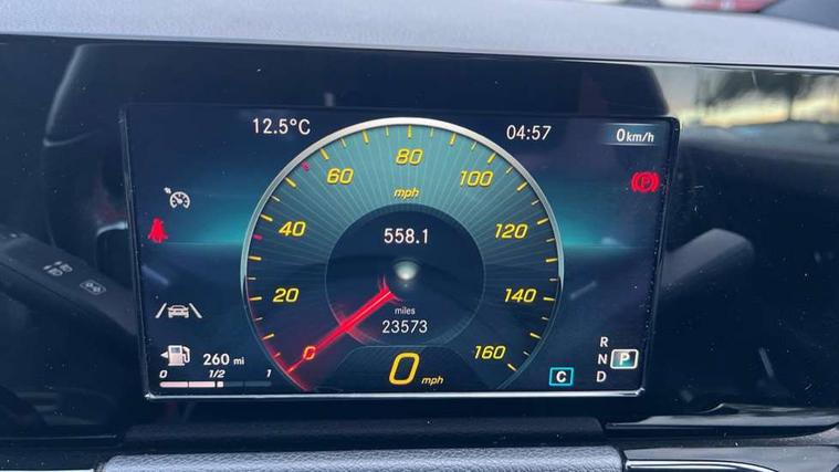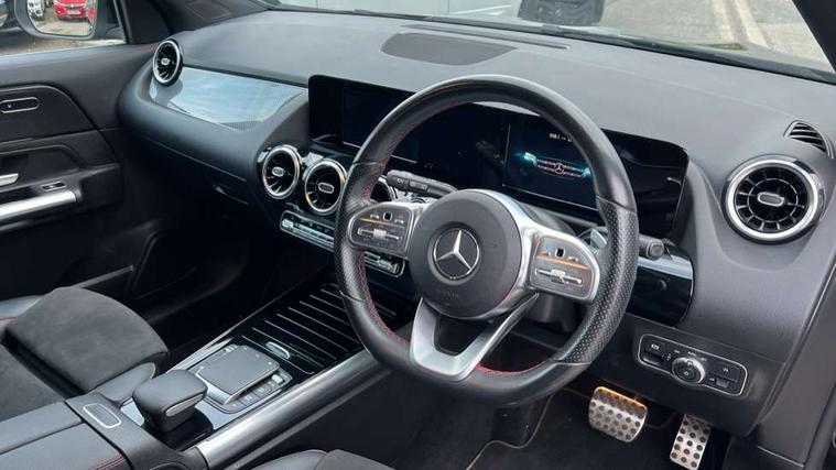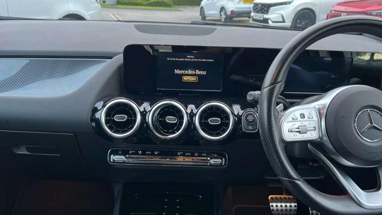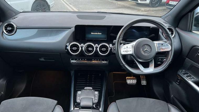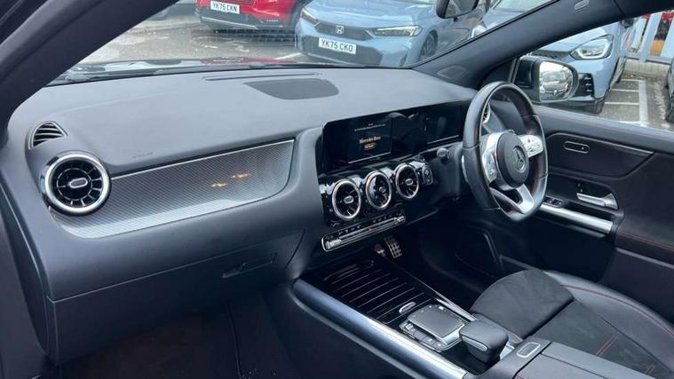 180 degree reversing camera with parking guidelines, 7 inch digital instrument cluster display, 7" touchscreen media display, Active lane keeping assist, Attention assist, Cruise control + speed limiter, Direct steering, DYNAMIC SELECT with a choice of driving modes (ECO, Comfort, Sport, Sport+ and Individual), Easy-pack tailgate, ECO start/stop function, Fluid level warning indicator for fuel, oil, coolant and washer fluid, Hard-disk navigation, Hey Mercedes Voice activation, Lamp failure indicator, Mercedes me connect including emergency call system, accident recovery, breakdown and maintenance management, Mercedes me remote services, Multi function trip computer, Outside temperature gauge, Owners manual and service booklet in English, Pre-installation of private car share, Radio aerial integrated into front and rear windshields, Service indicator (ASSYST), Speed limit assist, Status display for rear seat belts in instrument cluster, Lowered comfort suspension, Rear axle multi-link, 2 USB ports (type C) in rear stowage compartment and one in front of center console, Bluetooth connectivity including audio streaming, DAB Digital radio, MBUX multimedia system with DAB digital radio and touchpad including satellite navigation, Media interface, Mercedes-Benz sound system - 100W, Adaptive brake lights, Aerial for GPS, Aluminium roof rails, AMG front and rear apron, AMG specific/dual flow exhaust pipes in chrome (non-functional), Automatic headlamp activation, Beltline strips and weather strip in chrome, Black grained claddings with chrome parts, Body colour bumpers, Body colour door handles, Body colour door mirrors, Car wash function, Dark privacy glass from B-pillar backwards, Electric front windows, Electric rear windows, Electrically adjustable and heated door mirrors with integrated LED indicators, Front door sills with Mercedes-Benz lettering, Heated glass rear windscreen + timer control, Heated windscreen wash system, Interior mirror with black reading lamps and frameless, LED high performance headlamps with integrated LED daytime running lights, LED tail lights in two piece design, LED third brake light, Matt titanium grey front and rear apron trim, Rain sensor windscreen wipers, Rear fog lights, Roof spoiler, Single lamella raditor grille with chrome dotted diamond grille and inlay, 12V power socket in centre console, 3 spoke multifunction sports steering wheel in nappa leather with flattened bottom and perforated grip area, 40:20:40 split folding rear seat backrests, Adjustable head restraints, Air conditioning - Two zone thermotronic luxury automatic climate control with display, Ambient lighting in front headrests, AMG floor mats with AMG lettering and stiched edging, Artico man-made leather/Microfibre Dinamica upholstery with red contrast stitching, Auto Mercedes-Benz child seat recognition sensor, Black roof lining, Brushed door pulls in silver chrome, Courtesy light in boot, Front centre armrest with stowage, Galvanished gear shift paddles on steering wheel, Heated front seats, Illuminated glovebox, Leather trimmed gearknob, Luggage net on driver/front passenger seat backrest, Manually height and reach adjustable steering column, Multi-gesture touchpad control on center console, Net in front passenger footwell, Sports pedals in brushed stainless steel with black rubber studs, Sports seats, Stowage compartment in centre console, Stowage compartment with retractable cover, Sunvisors with illuminated vanity mirrors, Twin front cup holders, Two outer rear seat isofix and top tether child seat fixing points, AMG body styling pack - GLA, Comfort seat pack - GLA Class, Interior lighting with light and sight pack - GLA, Load compartment pack - GLA, 3 rear 3 point seatbelts, ABS with Brake Assist, Active bonnet pedestrain safety measure which detects an impact and raises bonnet by 65mm, Active brake assist includes forward collision warning system with autonomous braking, Adaptive brake assist with hold function and hill start assist, Bonnet with power domes, Brake pad wear warning indicator, Childproof locks manually operated for rear doors and electrically operated for rear power windows, Crash responsive emergency lighting, Driver and passenger head and side airbags, Drivers knee airbag, Dual stage driver/passenger airbags, Electronic parking brake, ESP curve dynamic assist, ESP with ASR, Front and rear seatbelt reminder, Front brake callipers with Mercedes Benz logo lettering on front, Front brake discs internally ventilated and perforated, Front passenger seat occupancy sensor, Tyre pressure monitoring system, Warning triangle and first aid kit, Window airbags, Alarm system with immobiliser and interior protection -Thatcham category 1, Keyless Go starting function, Remote central locking and crash sensor with emergency opening function, Vehicle key with decorative surround in chrome, Carbon structure trim, Chrome air vent surrounds, 19" AMG 5 twin spoke light alloy wheels aerodynamically optimised painted in tantalite grey with a high sheen finish, Summer tyres, Tirefit tyre sealant kit,