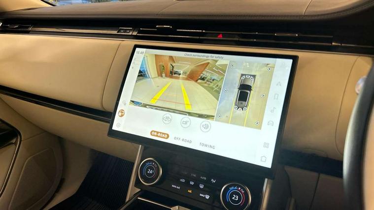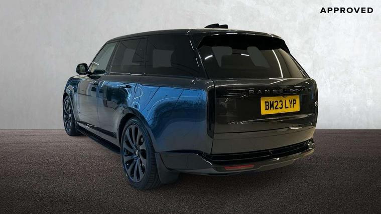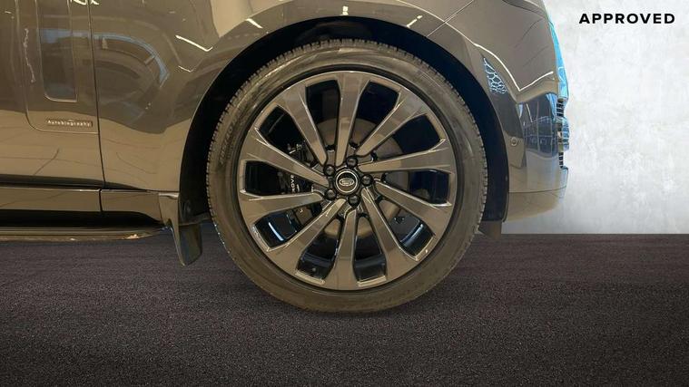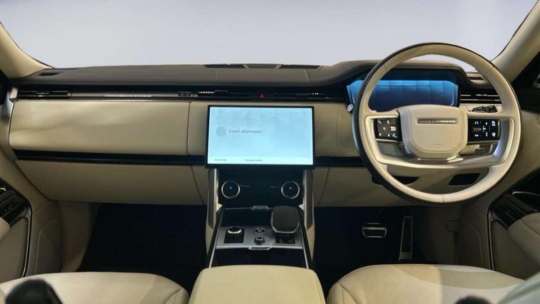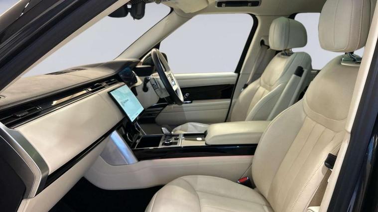 13.1" Touchscreen, 3D surround camera inc frwd traffic detection, vehicle clearance guidance, 3D view, clearsight ground view, manoevure light, 360 parking aid, wade sensing, Adaptive cruise control with steering assist, All Terrain Info Centre, All wheel steering, Android Auto, Apple car play, Blind spot assist, Bluetooth connectivity streaming, Configurable programs, Driver condition response, Eco mode, Electric power assisted steering (EPAS), Emergency call service, Front and rear parking aid, Head up Display, Interactive driver display, Lane keep assist, Powered gesture tailgate/boot lid, Rear collision monitor, Rear traffic monitor, Remote, Traffic sign recognition with adaptive speed limiter, Wi-Fi Enabled with data plan, Wireless device charging with phone signal booster, 8 speed automatic transmission, Active damper technology system, Adaptive dynamics, All terrain progress control, All Wheel Drive (AWD), Automatic access height, Electronic active differential with torque vectoring by braking, Electronic air suspension with dynamic response, Terrain Response 2 Auto, Twin speed transfer box, Digital Audio Broadcast radio-DAB, Meridian 1600W signature sound system, Pivi pro including smart settings, Connected navigation pro, nuance speech, USB socket, Acoustic laminated windscreen, Animated directional indicators, Automatic headlights, Automatic levelling headlights, Centre high mounted stop light, ClearSight interior rear view mirror, Electric windows with one touch open/close and anti trap, Flush deployable exterior door handles, Front and rear recovery eyes, Front fog lights, Headlamp power wash, Heated rear window, Heated washer jets, Illuminated metal treadplates with Autobiography script, Laminated front and rear side glass, LED tail lights, Power fold, auto-dimming, heated door mirrors with approach lights, Rain sensing windscreen wipers, Rear boot, Rear fog lights, Rear side wing doors, Rear wash/wipe, Side repeater indicators in mirror, Solar attenuating windscreen, Trailer stability assist, Winter wiper park position, 12V power sockets, 3 seat bench in 2nd row, Air quality sensor, Auto folding loadspace cover, Bright metal pedals, Cabin air purification pro, Cabin lighting, Customer configurable single point entry, Driver and passenger front seat armrests, Easy boot loading, Ebony Carpet, Electric rear side window sunblinds, Four zone climate control, Front and rear cupholders, Front and rear grab handles, Front head restraints, Gearshift paddles, Heated steering wheel, Hook in load space, Loadspace light, Luggage tie down in loadspace, Multifunction steering wheel, Rear centre armrest, Rear head restraints, Rear ISOFIX, Single front passenger seat, Soft close doors, SV bespoke carpet mats, Twin blade sunvisors with Illuminated vanity mirrors, Upper and lower glovebox, Versatile loadspace floor in tailgate, Online pack with data plan - Range Rover, 3x3 point rear seat belts, Anti-lock braking system (ABS), Black brake calipers, Brake hold function, Cornering brake control (CBC), Customer configurable autolock, DSC - Dynamic Stability Control, Electronic brake force distribution, Electronic parking brake, Electronic traction control, Emergency brake assist, Emergency braking, Front airbags with passenger seat occupant detector, Front side airbags, Hill descent control, Hill launch assist, Illuminated seat belt buckles, Low traction launch, Occupant protection assist, Power operated child locks, Roll stability control, Tyre pressure monitoring system (TPMS), Immobiliser, Intrusion sensor and alarm, Keyless entry, Locking wheel nuts, Remote central locking, Noble chrome controls,