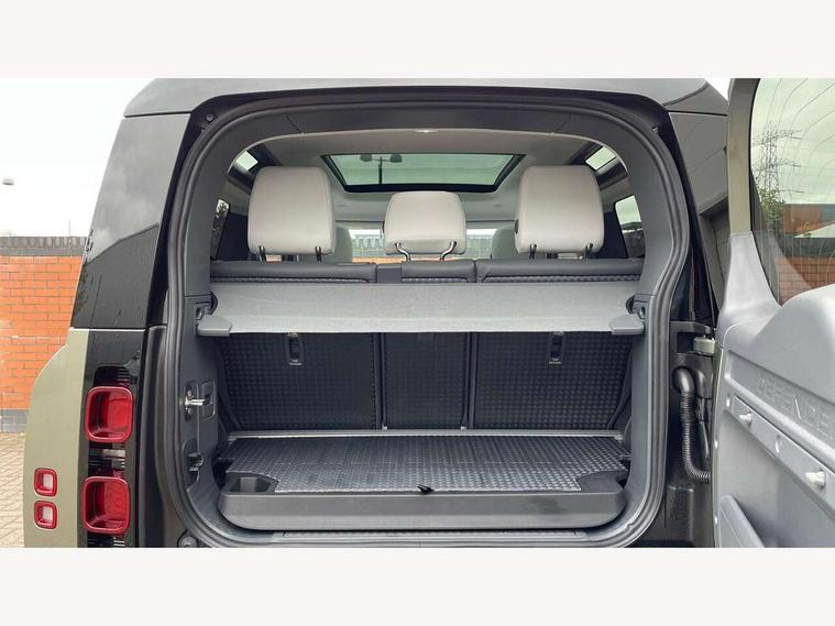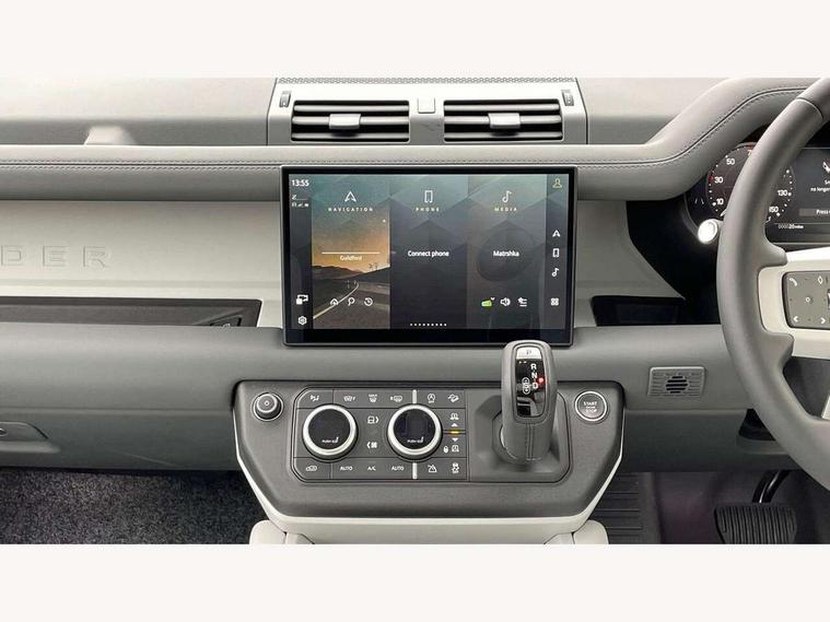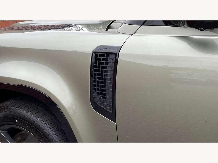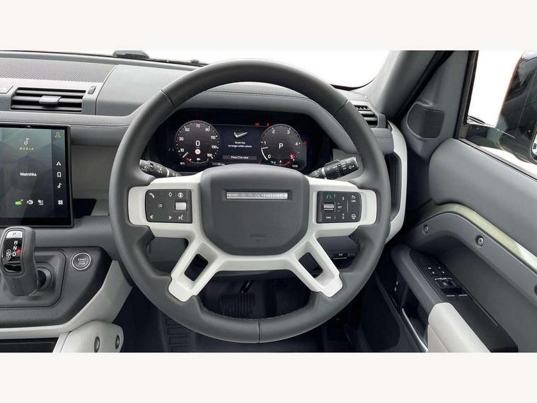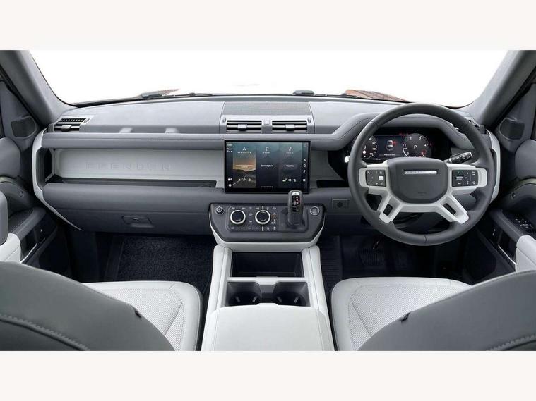 1 x USB-C (power only) & 1 x USB-C (power & data) in Row 1, 2 x USB-C in Row 2, 11.4" touchscreen, 360 degree parking aid, 3D Surround Camera with 360 View, 180 Rear View, Front Traffic Detection, Forward Vehicle Guidance, Tow Hitch Assist and clear sight Ground View, Adaptive cruise control, Android Auto, Apple CarPlay, Blind spot assist, Bluetooth system, Brake pad wear indicator, Clear exit monitor, Connected navigation pro, Driver condition monitor, Electric power assisted steering (EPAS), Interactive driver display, Lane keep assist, Push button start, Rear collision monitor, Rear traffic monitor, Traffic sign recognition with adaptive speed limiter, Trip computer, Wireless device charging, 8 speed automatic transmission, All wheel drive system, Twin speed transfer box, DAB Radio (Digital Audio Broadcasting), Meridian 400w sound audio system with 11 speakers and subwoofer, Pivi pro connected, Automatic headlight levelling, Automatic headlights, Black exposed rear recovery eyes, Body coloured bonnet, Centre high mounted stop light, Electric heated/power fold door mirrors with approach lights and auto dimming driver side, Electric windows with one touch open/close and anti-trap, Follow me home lighting, Heated rear window with timer, Heated windscreen, Illuminated metal treadplates with brand name script, LED tail lights, Panoramic rear side glass, Privacy glass, Puddle lights, Rain sensing windscreen wipers, Rear fog lights, Rear wiper, Side hinged tailgate, Standard tail door, Trailer stability assist, X-Dynamic badge, 12V power socket in loadspace, 3 seat bench in 2nd row, Alpine lights, Configurable cabin lighting, Durable rubber cabin flooring, Durable rubber loadspace flooring, Flat load space floor tray, Footwell lights, Front head restraints, Loadspace cover, Loadspace Hook, Multifunction steering wheel, Overhead stowage for sunglasses, Rear headrests, Rear ISOFIX, Rear reading lights, Single front passenger seat, Standard seat configuration, Storage glovebox, Sunvisors with illuminated vanity mirrors, Twin front cupholders, Non-smoker package, Online pack with data plan - Defender, 5 x 3 point seatbelts, ABS, Brake hold function, Cornering brake control (CBC), Customer configurable autolock, Driver and passenger airbags, DSC - Dynamic Stability Control, EBD - Electronic brakeforce distribution, Electric parking brake (EPB), Emergency brake assist, Emergency braking, ESP + traction control, Front airbags with passenger seat occupant detector, HDC - Hill descent control, Hill launch assist, Low traction launch, Remote for (e-Call, Optimised assistance call, InControl app, Climate, beep and flash and door), RSC - Roll stability control, Seat belt reminder, TPMS (Tyre pressure monitoring system), Alarm, Immobiliser, Intrusion sensor, Keyless entry, Locking wheel nuts, Secure tracker pro,