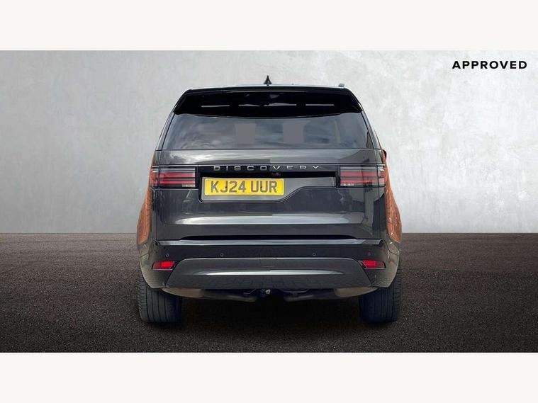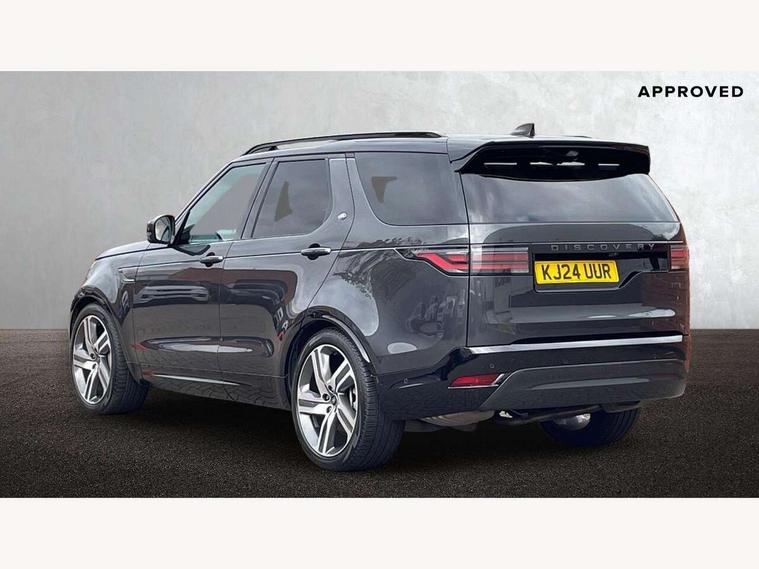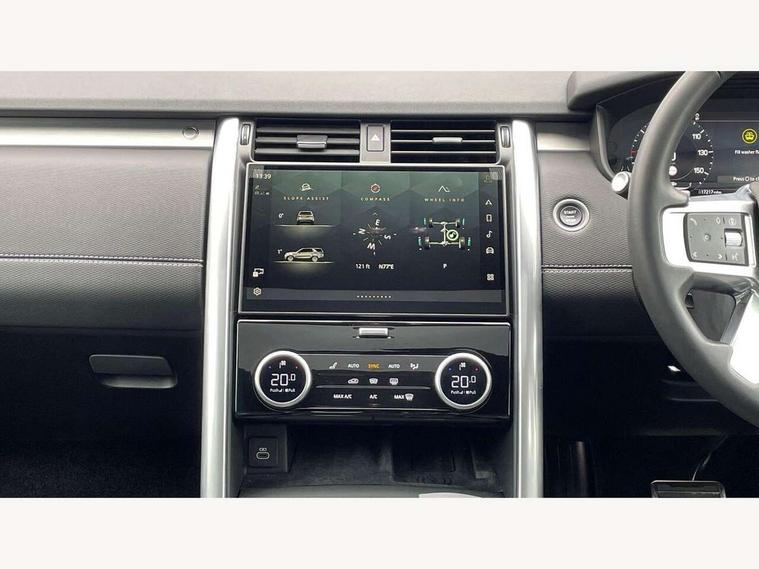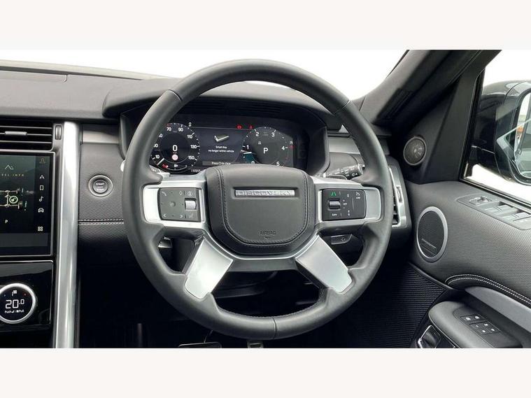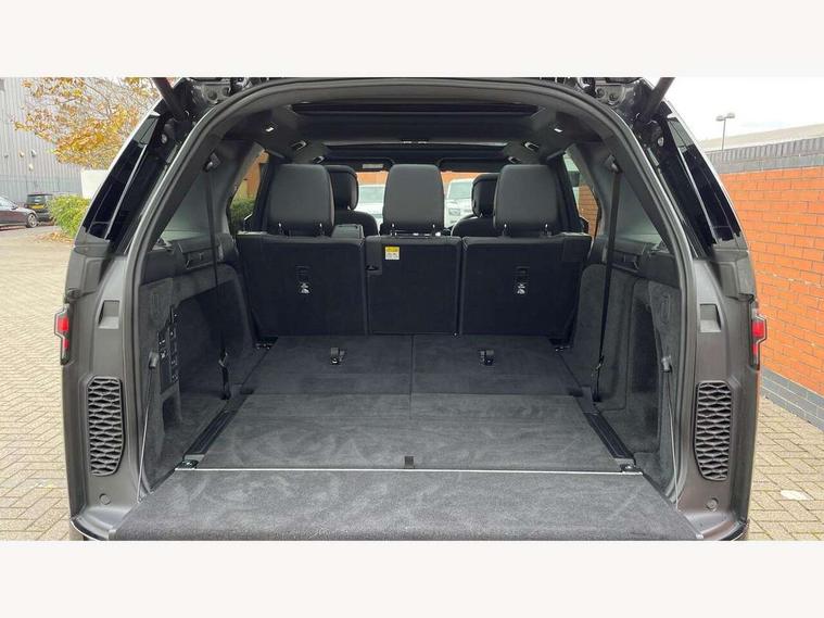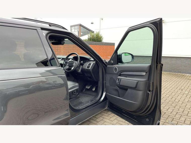 11.4" touchscreen, 3D surround camera, Adaptive cruise control, Android Auto, Apple car play, Blind spot assist, Driver condition monitor, Electric power assisted steering (EPAS), Emergency services call system, Front and rear parking aid, Interactive driver display, Lane keep assist, Power inner tailgate, Power tailgate/boot lid, Push button start, Rear collision monitor, Rear traffic monitor, Remote, Remote boot release, Service interval indicator, Speed proportional steering, Sportshift selector, Stop/start system, Traffic sign recognition with adaptive speed limiter, Trip computer, Wade Sensing, Adaptive dynamics, Dynamic stability control, Electronic air suspension, Front axle open differential, Digital Audio Broadcast radio-DAB, Dynamic volume control, Pivi pro connected, USB/aux input socket, Acoustic laminated windscreen, Animated directional indicators, Auto dimming interior rear view mirror, Automatic headlight levelling, Automatic headlights, Body colour bumpers, Body colour door handles, Centre high mounted stop light, D300 badge, Electric heated/power fold memory door mirrors with approach lights and auto dimming driver side, Electric windows with one touch open/close and anti-trap, Heated rear window, Heated windscreen, LED darkend tail lights, Matrix LED headlights with signature DRL, Narvik black Discovery script, Privacy glass, Puddle lights, Rain sensing windscreen wipers, Rear fog lights, Rear side wing doors, Rear wash/wipe, Trailer stability assist, Variable intermittent wiper, 12V power sockets, 12V USB charging socket in loadspace, 2 seat bench in 3rd row, 3 seat bench in 2nd row, 60/40 electric heated folding rear seats with manual slide and powered recline, centre headrest and armrest, Central hinged twin lidded storage, Configurable cabin lighting, Ebony morzine headlining, Electric adjustable steering column, First and second row door bins, Footwell lights, Front and rear 12V with front USB, Front passenger seat isofix location point, In-facia storage, Isofix child seat preparation for front passenger seat, Leather steering wheel, Loadspace cover, Loadspace Hook, Loadspace light, Lockable glovebox, Lower centre console storage, Luggage tie downs in loadspace, Multi function steering wheel, Overhead lighting console, Premium carpet mats, Rear ISOFIX, Shopping bag hook, Single front passenger seat, Storage glovebox, Sunvisors with illuminated vanity mirrors, Third row storage, Treadplates with metal inserts, Twin front cupholders with cover, USB with 12V socket in centre console, Black exterior pack - Discovery Dynamic SE/HSE, Online pack with data plan - Discovery, 3x3 point rear seatbelts, Anti-lock braking system (ABS), Brake pre-fill technology, Cornering brake control, Curtain airbags, Customer configurable autolock, Driver and passenger airbags, EBD - Electronic brakeforce distribution, Electronic traction control, Emergency brake assist, Emergency braking, ESP, Front side airbags, Gradient acceleration control, Hill descent control, Hill launch assist, Power operated child locks, Rear airbags, Roll stability control, Seat belt reminder, Torque vectoring brake, Tyre pressure monitoring system, Immobiliser, Intrusion sensor, Keyless entry, Locking wheel nuts, Remote central locking, All terrain tyres,