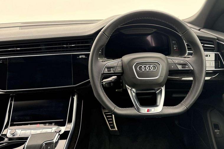 10.1" and 8.6" Dual colour touchscreens, Audi connect safety and service (e-call), Audi connect with Amazon Alexa Integration, Audi drive select, Audi parking system plus includes 360 degree display with front and rear sensors, Audi phone box light with wireless charging, Audi smartphone interface includes wireless Apple carplay/Android Auto, Audi virtual cockpit - 12.3" high resolution LCD display with fully customisable instrument cluster, Automatic start/stop system, Electro-mechanical PAS, Low washer fluid indicator, MMI - Multi Media Interface control system, MMI navigation plus with MMI touch, Natural voice recognition, On board computer, Operating buttons in black, glass look with haptic feedback, Power operated tailgate, Rear view camera, Service interval indicator, 48V Mild hybrid technology, 85 litre fuel tank, Adaptive sport air suspension, Quattro all wheel drive with self locking centre differential, Audi music interface with 2 USB ports with charge and data functions, Audi sound system with 6 channel amplifier, 180 watt amplifying capacity and 10 loudspeakers including subwoofer, Aux-in socket, DAB Digital radio, 3rd brake light, Acoustic windscreen, Aluminium window trim, Audi beam, Audi HD Matrix LED headlights with dynamic front and rear indicators, Auto dimming frameless rear view mirror, Black Audi rings and black badging, Coming/leaving home lighting function, Electric front+rear windows, Electrically folding auto dimming/adjustable/heated door mirrors with memory function, LED side indicators and kerb view function for passenger side, Headlight washers, Heat insulating glass in windshield, LED signature daytime running lights, Platinum grey front spoiler lip and diffuser insert with honeycomb grille in black, Privacy glass - dark tinted rear and rear side windows from B-pillar backwards, Rain and light sensors, Rear side wing doors, Rear wiper, 2 zone automatic climate control, 3 bench rear seats in 2nd row, 4-way lumbar support for front seats, 40:20:40 split folding rear bench seat, Audi phone box light, Black cloth headlining, Comfort front centre armrest, Driver seat memory function, Electrically adjustable front seats, Front head restraints, Front/rear floor mats, Heated front seats, ISOFIX child seat mounting for front passenger seat and 2 outer rear seats with top tether child seat mounting for all 3 rear seats, LED interior ambient lighting, Luggage compartment sill protection in stainless steel, Rear centre armrest with 2 cupholders, Rear headrests, Seat cushion displaceable by 100mm in the ratio 60:40, Single front passenger seat, Stainless steel pedals, Sunvisors with illuminated vanity mirrors, Tool kit, 3 point seatbelts on all seats, Audi pre sense front, Child locks on rear doors, Driver and front passenger, front side and curtain airbags, Electromechanical parking brake, Electronic Stability Control (ESC) including ABS, ASR and EDL, Front passenger airbag deactivation, Hill descent control, Hill hold assist, Predictive pedestrian protection, Seatbelt monitoring, Traction control, Tyre pressure loss indicator, Warning triangle and first aid kit, Anti theft alarm with tow away protection, Anti-theft wheel bolts and wheel loosening detection, Immobiliser, Keyless go with remote central locking, Polished oak trim with grey finished, Tyre repair kit,