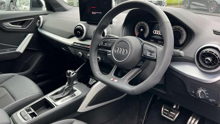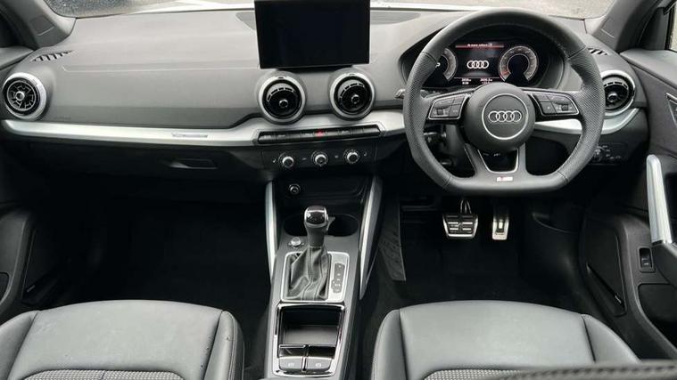 3D map display, Audi connect navigation and infotainment includes innovative services, Audi connect remote and control connects your vehicle to your smartphone, Audi drive select: S tronic - power steering assistance + engine + gearshift (modes: comfort, auto, dynamic, efficiency, individual), Audi smartphone interface - Apple carplay/Android Auto, USB connect, 2xSDXC card readers, voice control for navi, telephone, music and 3rd party apps, Audi virtual cockpit, Automatic start/stop system with recuperation, Bluetooth interface includes bluetooth audio streaming, Camera based traffic sign recognition, Cruise control, Distraction and Fatigue warning, E-call, Jukebox hard drive memory for music (10GB), Lane departure warning, MMI navigation plus with 8.8" touchscreen, Natural voice recognition, Power operated tailgate, Progressive steering, Rear parking sensors, Sport suspension, 6 passive loudspeakers, DAB Digital radio, USB type C port, Audi beam, Auto dimming rear view mirror, Black window trims, Bumper in full body colour paint finish, Electrically adjustable, folding, auto dimming and heated door mirrors with integrated LED side indicators, Front windscreen with grey tinted sunband, LED daytime running lights, LED headlights with dipped beam, high beam, position lights, indicators, LED rear lights, LED third brake light, Privacy glass - dark tinted rear and rear side windows from B-pillar backwards, Rear side wing doors, Rear wiper, Variable front intermittent wipers, Wheel arch trims in manhattan grey, 12v socket in front, 3 seat bench in 2nd row, 3 spoke flat bottomed multi-function leather sport steering wheel with gear shift paddles, 4-way electric lumbar support for front seats including manual seat height adjustment for both front seats, 60/40 split folding rear seat bench, Black carpets, Black cloth headlining, Front and rear head restraints, Front centre armrest, Front sport seats, Front/rear floor mats, Height/reach adjust steering wheel, Illuminated door sill trims with S logo, ISOFIX child seat mounting in front passenger and rear outer seats, Manual air conditioning, Single front passenger seat, Stainless steel pedals, Black styling pack - Q2, 3x3 point rear seatbelts, 6 airbags - Front, curtain and front side airbags, Electromechanical parking brake, Electronic stabilisation control including ABS, ASR and EDL, Front passenger airbag deactivation, Hill hold assist, Pre-sense front with pedestrian recognition, Seatbelt monitoring, Tyre pressure warning light with visual and acoustic warning, Warning triangle and first aid kit, Anti theft alarm, Anti theft wheel bolts, Electronically operated child locks, Remote central door locking, Aluminium interior element, Black dashboard, Gloss black centre console, Matt brushed aluminium trim inlays, Tool kit,