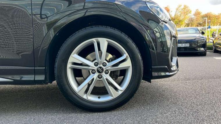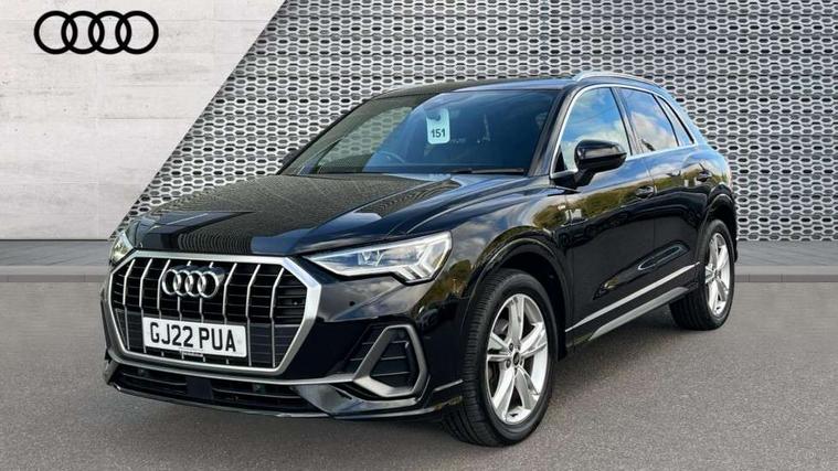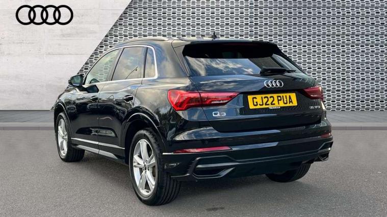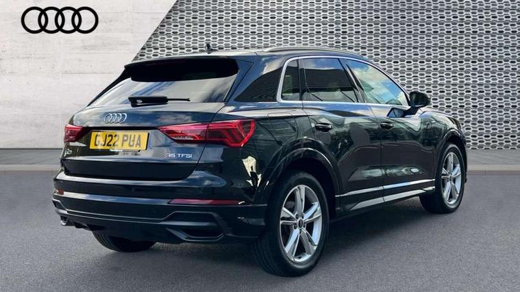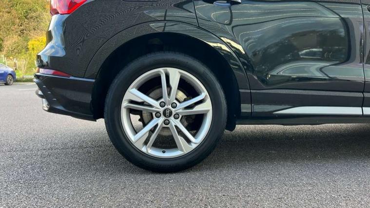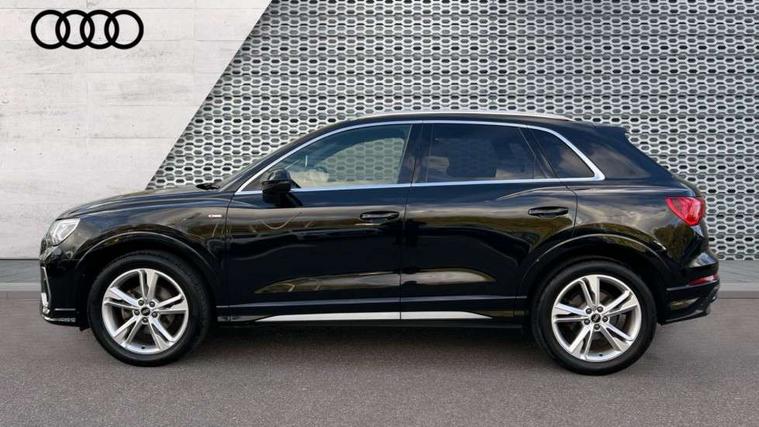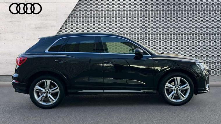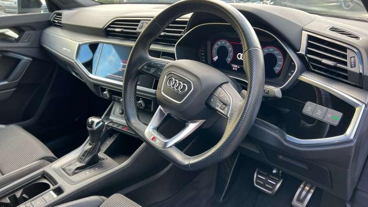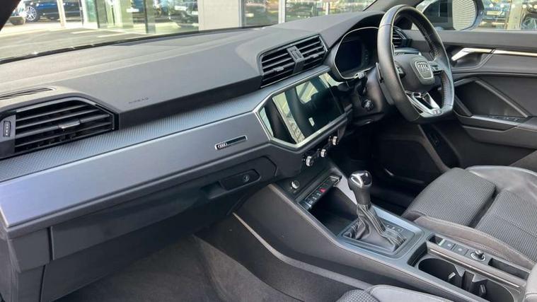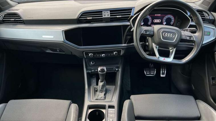 Amazon alexa Integration, Audi connect safety and service (e-call), Audi drive select, Audi lane departure warning, Audi Virtual Cockpit - 10.25" display, Bluetooth interface, Camera based traffic sign recognition, MMI Navigation Plus with high resolution 10.1 inch touchscreen colour display, Power operated tailgate, Progressive steering, Service interval indicator, Smartphone interface includes wireless Apple carplay/Android Auto, Start stop system with recuperation, Voice control system with natural language interaction, 48V Mild hybrid technology, Sports suspension, 2 USB-C ports with charge and data functions, 6 passive loudspeakers, DAB digital radio module, Acoustic windscreen, Aluminium roof rails, Aluminium window trim, Auto dimming frameless rear view mirror, Body coloured bumpers, Electrically folding, adjustable and heated door mirrors with integrated LED side indicators and kerb view function for passenger side, Front and rear electric windows, Front fog lights, Front side air inlets in matt platinum grey, Front spoiler blade in matt platinum grey, Grille vertical bars in aluminium silver/Matt, High gloss black finish B and C pillars, LED headlights with LED daytime running lights, LED rear lights, LED third brake light, Privacy glass dark tinted rear and rear-side windows (from B-pillar backwards), Rain and light sensors, Rear diffuser strip in matt titanium black, Rear side wing doors, Rear wiper, S line badges on front wings, S Line front and rear bumpers, Side skirt insert in matt Platinium grey, Silver chrome grille surround, Titanium black radiator grille, Variable front intermittent wipers, 12V socket in rear centre console, 3 seat bench in 2nd row, 40:20:40 folding with manual adjustment for 60:40 forwards/backwards position and backrest angle, Adjustable rear seat bench/backrest with centre armrest and cupholder, Black cloth headlining, Dual zone electronic climate control, Front and rear black floor mats with contrast stitching in rock grey, Front and rear headrests, Front and rear roof module including reading lights, Front centre armrest, Glove compartment lighting, Height and reach adjustable steering wheel, Illuminated door sill trims with S logo, ISOFIX child seat mounting for front passenger with airbag deactivation and outer rear seat including top tether attachment point for outer rear seats, Luggage compartment light, Manual front seats with height adjustment, Perforated leather gearknob, Single front passenger seat, Stainless steel luggage compartment sill finisher, Stainless steel pedals, Non smoking pack - Q3, 3x3 point rear seatbelts, 6 airbags - Driver, front passenger, curtain and side windows, Audi pre-sense front with pedestrain and cyclist recognition, Electromechanical parking brake, Electronic stabilisation control including ABS, ASR and EDL, Front seatbelt reminder, Hill descent control, Hill hold assist, Manual child lock in rear doors, Pre sense basic, Seatbelt monitoring, Tyre pressure warning, Warning triangle and first aid kit, Anti theft alarm, Anti theft wheel bolts, Immobiliser, Remote central locking, Dark matt brushed aluminium inlay, Detail dashboard around MMI touch colour display in glass look, black with surround in aluminium look, Leatherette door armrest, Tool kit, Tyre repair kit,