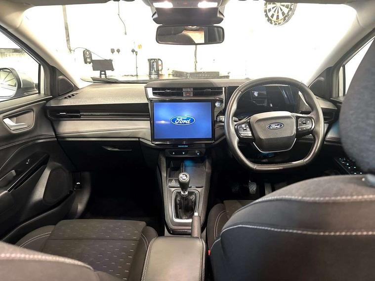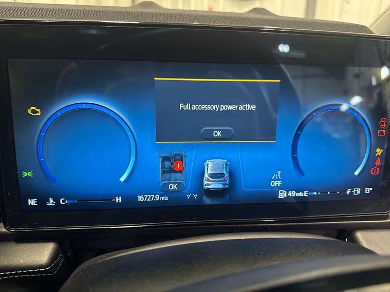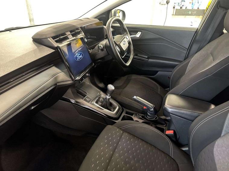 Driver impairment monitor, Emergency call service, Ford easy fuel, Full digital 12.8" instrument cluster, Lane keeping aid with lane departure warning, Power assist steering, Selectable drive modes(Normal, sport, Eco, trail, slippery), Speed sign recognition, Standard suspension, 12" landscape touchscreen display with wireless apple car play and android auto 6 speaker audio system, Ford pass connect and emergency assistance, Ford SYNC4 with connected navigation, Automatic headlights with rain sensing wipers and auto high beam, Front fog lamps, LED daytime running lights, LED rear lamps, LED third brake light, Quickclear heated windscreen, Rear privacy glass, Rear side wing doors, Rear wiper, 3 seat bench in 2nd row, Centre console with armrest and stowage, Electronic automatic temperature control (EATC), Ford megabox extended bootspace, Front and rear head restraints, Front floor mats, Manual 4 way driver seat adjust with lumbar adjustment, Single front passenger seat, Titanium cloth upholstery, 3 rear seatbelts, Child safety lock, Electronic stability control (ESC) and hill start assist, Pre-collision assist with autonomous emergency braking, pedestrian/cyclist detection & post-collision braking, Tyre pressure monitoring system (TPMS), Thatcham alarm, 17" Absolute black machined finish alloy wheel,