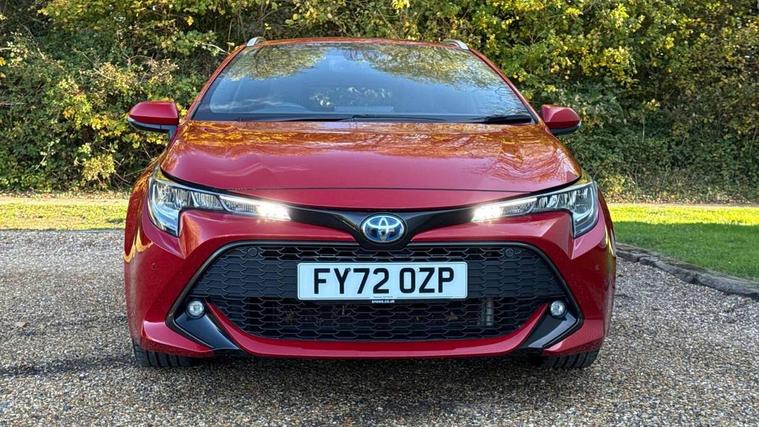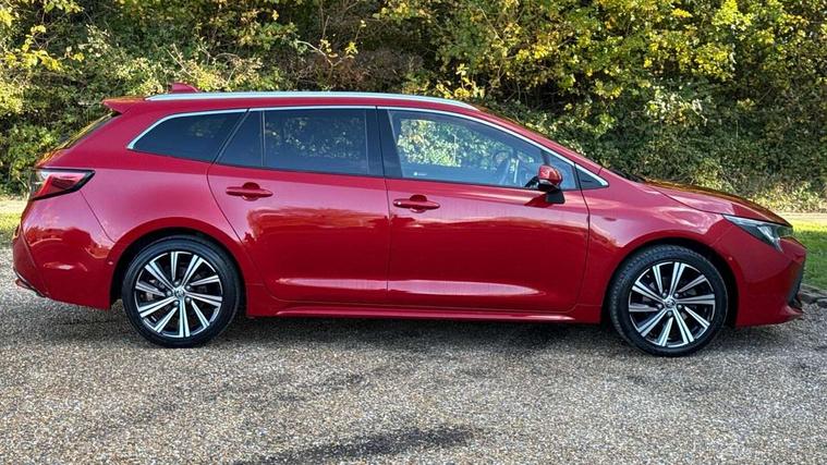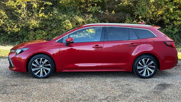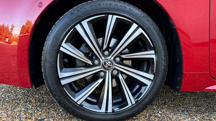 7" Multi information display screen, Bluetooth telephone connectivity, Connected car functionality upgrade, tracker, remote status and e-care, Door trim and centre console material, Dynamic radar cruise control (with RSA) including switch on steering wheel, E-call, Electrically assisted power steering, EV drive indicator, Intelligent park assist, Lane Departure Alert (LDA) switch on steering wheel, Memory on adjustable speed limiter, Push button start, Reversing camera, Smartphone integration with Apple CarPlay and Android auto, Gasoline particulate filter, Vehicle Stability Control (VSC), 6 speakers, 8" Touchscreen with MM19 Multimedia system and voice recognition, AM/FM radio, DAB Digital radio, Toyota touch 2 with go navigation system, USB and Aux in connectors + 12V front outlet, USB charging port in centre storage box, Aluminium roof rails, Anti-jam protection on power windows, Auto dimming inside rear view mirror, Auto up and down function on all power windows, Automatic folding mirrors, Automatic headlights with high beam assist, Black metallic surround on lower front grille, Black toyota logo in front, Body colour rear spoiler, Body coloured bumpers, Body coloured door mirrors, Body coloured outside door handles, Follow me home headlights, LED daytime running lights, LED front fog lights, LED Headlights, LED High mounted stop light, LED rear combi lights with LED lightguide, Noise reduction layer on front windows, Power adjustable heated door mirrors, Power front windows, Power rear windows, Privacy glass, Rain sensing wipers, Rear side wing doors, Rear window defogger, Rear window wiper, Reverse tilting door mirrors, Shark fin antenna, Time adjustment on intermittent wiper, Turning signal integrated indicators in door mirrors, Unique lower skirt, Unique side rocker with black insert, UV-filter on driver and passenger windows, 12v power outlet - luggage side, 3 rear headrests, 3 seat bench in 2nd row, 3 spoke leather steering wheel + gear knob, 60/40 split folding rear seat, Adjustable speed limiter switch on steering wheel, Audio, multimedia and telephone switches on steering wheel, Blue ambient interior illumination to centre tray, front cup holders and front door trim, Boot light, Boot underfloor storage, Clean air filter, Driver and front passenger personal light, Driver and passenger assist grip, Driver and passenger sun visor with mirror and light, Dual sided deck board in boot, Dual zone automatic air conditioning with ECO mode switch, Fabric/synthetic leather upholstery, Front and rear cup and bottle holders, Front and rear door pockets, Front head restraints, Front passenger seat, Heated driver and front passenger seats, Illuminated entry system in room lamp, ISOFIX seat fixing (2 fixings on rear outer seats), Leather gear shift with satin chrome on gear shift console, Leather style armrests, Manual height adjustable for driver and front passenger seat, Passenger seat back pocket, Pollen filter, Power adjustable lumbar support on driver seat, Power window switches with satin chrome inserts, Rear armrest with 2 cupholders, Rear passenger air vents, Rear passenger coat hooks (2), Rear passenger personal lights, Retractable tonneau cover with luggage partition net, Satin chrome inside door handles, Shopping bag hooks in luggage compartment, Side storage in boot, Sliding armrest on centre console box, Slow opening glovebox with lights, Tilt/telescopic steering column, Tonneau cover with under floor storage, Voice recognition switch on steering wheel, Whiplash Injury Lessening (WIL) feature (active headrest) for seats, Parking pack - Corolla, Toyota safety sense 2 pack - Corolla, 3x3 point rear seatbelts, Adjustable driver and front passenger seat belt extender to top anchor point, Anti lock braking system + Electronic brake force distribution, Brake assist function, Child locks on rear doors, Downhill Assist Control (DAC), Electronic parking brake, Emergency brake light signal (EBS), Front passenger airbag on/off switch, Front seatbelt reminder, HAC - Hill start assist control, Rear seat belt reminder, Seatbelt pretensioners and force limiters, Supplemental restraint system (SRS) 7 airbags - dual driver, dual side curtain, side impact and driver knee airbags, Traction control, Tyre pressure warning system, Acoustic vehicle alert system (AVAS), Alarm with motion sensor and immobilizer, Remote central locking + deadlocks, Smart entry, Satin chrome dash trim, Soft touch texture on upper dashboard, Stitching on lower dashboard, Tyre repair kit, Unique wheel finish with red wheel cap,