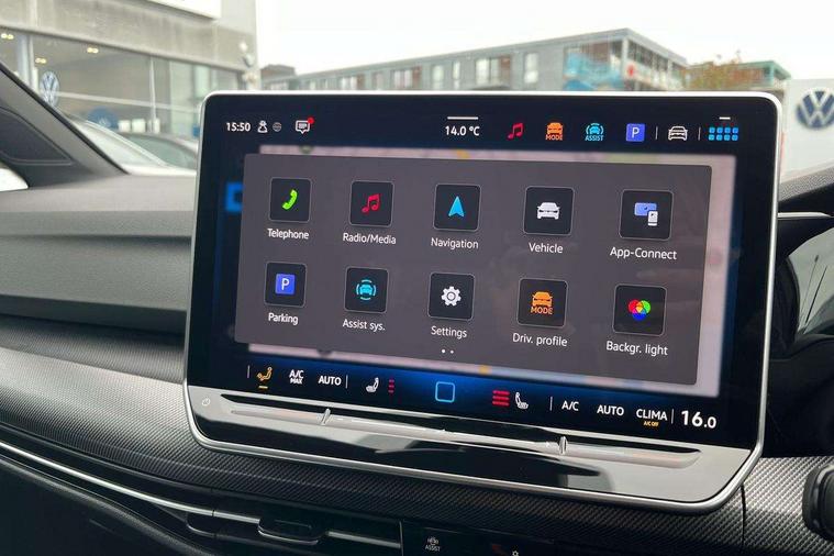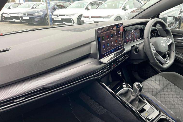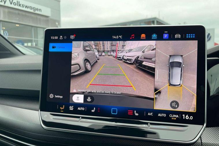 Activated carbon canister, Adaptive cruise control (ACC), Advanced driver attention and drowsiness monitor, Dynamic road sign display, Dynamic steering, E-Sim card for online connectivity, eCall emergency call system, Multi-color Digital cockpit pro, selection of different info profile possible, Multifunction front facing camera for distance control, Navigation system, Oncoming vehicle braking when turning including swerve support, Preparation for light assist system, Speed limiter, Speedo, rev counter, electronic odometer, trip, service interval display, exterior temperature and fuel gauge, Traffic jam assist, Voice enhancer and voice control, Warning signal and warning light for front and rear seatbelts not fastened, We connect plus preparation, We connect preparation, Wireless app connect, Petrol Particulate Filter, Start-stop system with battery regeneration (recuperation - energy recovery during braking), XDS electronic differential lock for improved traction and handling, 2 USB C ports in front, 2 USB charging sockets on the centre console in the rear charging capacity upto 45W, Comfort telephony + wireless charging, without wireless aerial connection, Digital radio reception (DAB), Diversity antenna for FM reception, Gaming platform via car app, Infotainment system with 12.9" display, Mobile phone interface with inductive charging feature, 3rd brake light, Auto headlights, Automatic headlamp activation with Coming home and Leaving home feature, Body colored bumpers in R-Line style, Body colour door handles, Exterior ambient lighting with illuminated door handles, Exterior mirrors convex on the left and aspherical on the right, Front and rear electric windows, Heat insulating windshield made of laminated glass, LED daytime running lights, Rear exhaust tailpipe, Rear fog light on one side and reversing lights on both sides, Rear side wing doors, Rear windscreen washer and wiper with interval delay, Remote electrically foldable door mirrors, puddle lights and reverse activated passenger's door mirror, Welcome light with surround lighting, 12V socket in front centre console, 12V socket in luggage compartment, 3 rear head restraints, 3 seat bench in 2nd row, Ambient lighting with 30 colour including LED light unit in front footwell with selectable light colour, Brushed stainless steel pedals, Carpet mats, front and rear, Chrome plated radiator grille inserts, air vent surrounds and light switch surrounds, Front centre armrest, Integrated front head restraints, ISOFIX anchors for child seats on outer rear bench seats and on front passanger seat compatible for i-Size, Leather gearshift handle, Luggage compartment lighting, Premium sports seats in front, Rear cupholder and loadthough, Single front passenger seat, Soul black instrument panel, Split folding backrest with centre armrest and unsplit rear seat bench, Storm grey roof lining, Sun visors with illuminated vanity mirrors, 3 point height adj front seatbelts + pretensioners, 3 rear three point seatbelts, ABS, Autonomous emergency braking front assist with pedestrian and cyclist monitoring, Child locks on rear doors, Driver and front passenger airbag with front passenger airbag deactivation, Electronic parking brake with auto hold, ESC (Electronic Stability Control), Extended pedestrian protection measures, Rear disc brakes, Two tone horn, Tyre pressure loss indicator, Volkswagen roadside assistance, Anti theft wheel bolts, Preparation for alcohol interlock, Decorative inserts carbon grey for dashboard and front door trim panels,