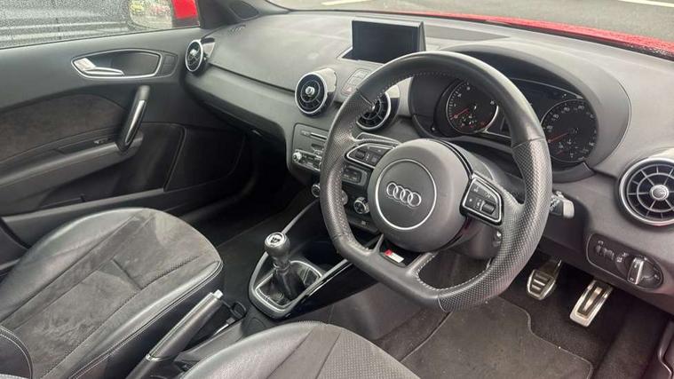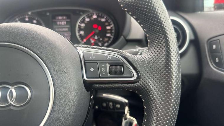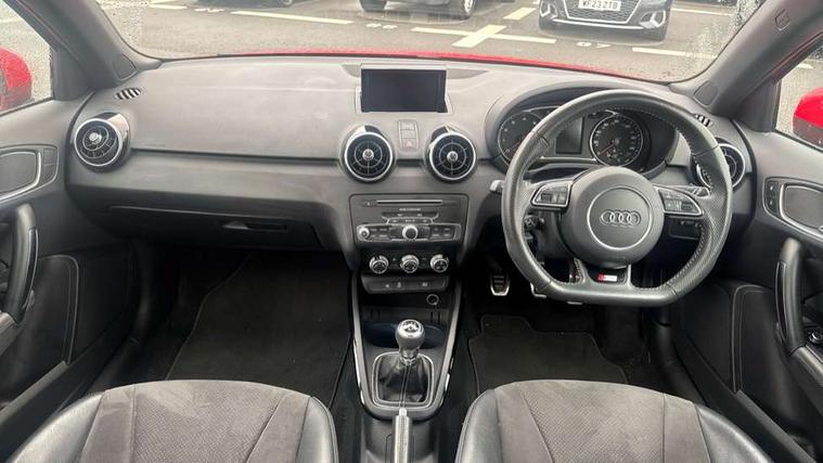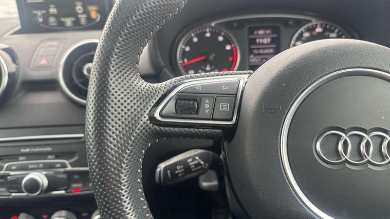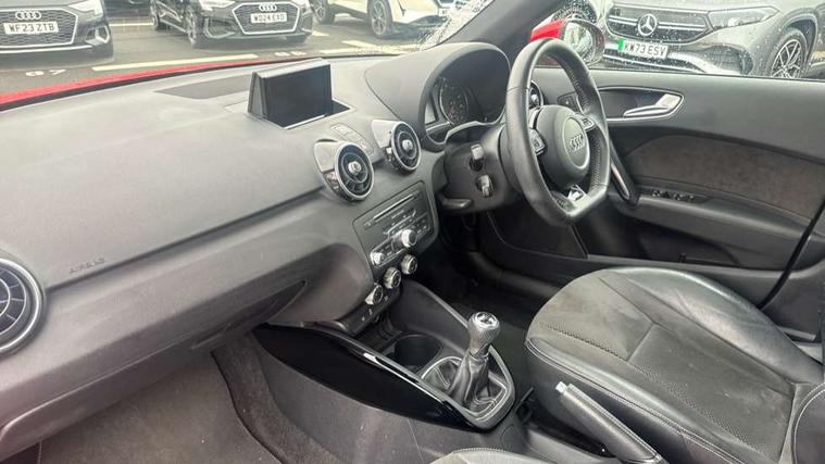 Audi drive select, Cruise control, Driver's information system, Electro-mechanical PAS, Low washer fluid indicator, Service interval indicator, Voice control system, Additional SD card reader, Audi music interface, Bluetooth audio streaming, DAB Digital radio, Adaptive brake lights, Body coloured bumpers, Body coloured door mirrors, Electric adjustable door mirrors, Electric front windows, Electric rear windows, Front fog lights, Heat insulating glass, Heated door mirrors, Heated rear windscreen, Privacy glass, Rain and light sensors, Rear diffuser, Rear wiper, Roof spoiler, S Line body styling, Xenon plus headlights including automatic headlights, LED daytime running lights, LED rear lights, dynamic range control and headlight washers, 12V Accessory socket in centre console, 3 spoke flat bottomed multi-function leather steering wheel, Adjustable rear head restraints, Black cloth headlining, Cupholders in centre console, Door sills trims with aluminium inlays, Electronic climate control (ECC), Front floor mats, Front head restraints, Height adjustable front seats, Illuminated glovebox, Isofix attachments on outer rear seats, Jack and tool kit, Leather handbrake, Lumbar adjustment for front seats, Rake/reach adjustable steering wheel, Split folding rear seats, Stainless steel pedals, High-gloss black styling pack - A1, Non smoking pack - A1, ABS/EBD, Brake assist function, Driver and passenger side airbags, Driver/Front Passenger airbags, EDL, ESP with ASR, First aid kit, Front and rear seatbelt reminder, Front passenger airbag deactivation, Head airbags, Height adjustable front seatbelts, Tyre pressure monitor, Warning triangle, Locking wheel bolts, Remote control central locking, Thatcham category 1 alarm + immobiliser, Aluminium trim, High gloss black air vent sleeves, Tyre repair kit,