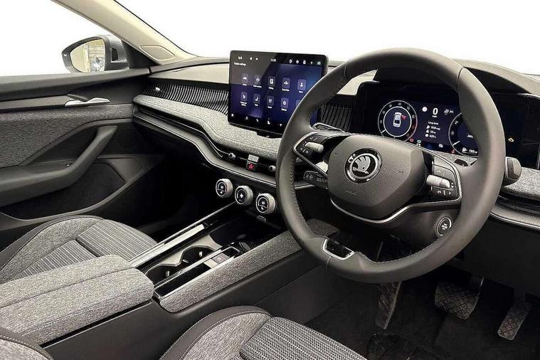 13" touchscreen display with satellite navigation, 4x USB-C ports (2x in front centre console and 2x in rear) (45W), Adaptive cruise control with speed assist, lane assist plus and traffic tram assist, Blind spot detection with door exit warning, Bluetooth system, CareConnect and Emergency Call, ChatGPT functionality, Driver fatigue sensor, Front assist with extended predictive pedestrian protection, Front cross traffic assist, PAS, Quick start all heating software functionality, Rear view camera with washer, Stop/start engine system, Traffic sign recognition, Turn assist with evasive assistance, Virtual Cockpit - 10.25" digital display, Voice control system, Wireless charging for one smartphone (15W) with cooling function, Wireless smartlink apple carplay, SmartLink+ android auto, 8 Speakers, DAB Digital radio, Display cleaner, FM radio connection, Web radio connection, Acoustic side windows and interior noise suppression, Backdrop lighting, Body colour door handles, Body coloured door mirrors, Chrome window surround, Electrically adjustable, heated, folding and driver side auto-dimming door mirrors with integrated indicators and logo projection, Frameless auto-dimming rear view mirror with USB-C, Front windscreen with heat-insulating glass, Ice scraper in fuel tank cap, LED 3rd brake light, Light assist with High beam control, Light assistant (coming/leaving home/tunnel light), Privacy glass, Rear fog light (x1), Rear side wing doors, Tow bar preparation, Unique dark chrome design logo on alloy wheels, Unique dark chrome grille surround with dark chrome rib elements, Windscreen wipers with rain sensor, 12V socket 1x centre console 1x boot, 12V socket and 2x cargo elements in boot, 2 spoke multifunction steering wheel with DSG paddles, 3 seat bench in 2nd row, 60:40 Split folding rear seats, Bottle holders in the front doors 1.5 litre bottle and rear 1.5 litre bottle, Cup holder in front with easy open mat, Front and rear footwell illumination, Front armrest with storage box, Front comfort seats, Heated front seats, Height adjustable driver and front passenger seats with 2-way electric tilt, 4-way pneumatic lumbar support, and extendable thigh support, Height adjustable front and rear head restraints, Height adjustable front passenger seat, Illuminated glovebox, Interior lights with control switches, Isofix child seat fittings in outer rear and front passenger seats, LED front and rear reading lights, Massage function for front seats, Single front passenger seat, Skoda lettering on steering wheel, Storage pockets on back of front seats, Sun visors with illuminated vanity mirrors, Ticket holder on A Pillar, Tri zone climate control, Umbrella in driver's door, 3 rear seatbelts, 8 Airbags - Front driver and passenger, front side driver and passenger, centre, curtain front and rear, drivers knee, Crew protect assist, Driver and passenger seatbelts with warning light, Electronic parking brake, ESC including ABS, EBV, MSR, ASR, EDS, HBA, DSR, RBS, CBC, multi-collision brake (MKB) and Auto hold, Hill hold assist, Power operated child lock in rear doors, Alarm with interior monitoring tilt sensor and back up horn, Backrest remote release from trunk, Electronic engine immobiliser, Keyless start/stop, Remote central locking with SAFE system, Third key, Decorative front door sills,