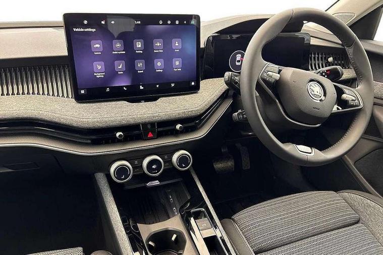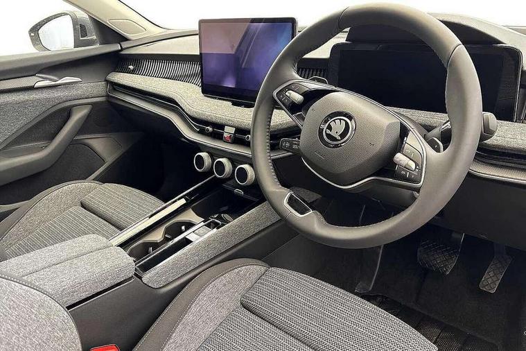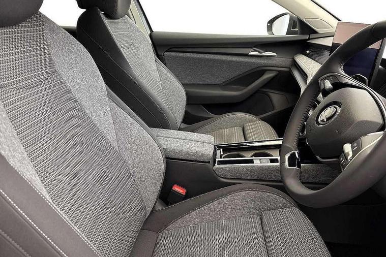 13" touchscreen display with satellite navigation, 4x USB-C ports (2x in front centre console and 2x in rear) (45W), Adaptive cruise control with speed assist, lane assist plus and traffic tram assist, Blind spot detection with door exit warning, Bluetooth system, CareConnect and Emergency Call, ChatGPT functionality, Driver fatigue sensor, Front assist with extended predictive pedestrian protection, Front cross traffic assist, PAS, Quick start all heating software functionality, Rear view camera with washer, Stop/start engine system, Traffic sign recognition, Turn assist with evasive assistance, Virtual Cockpit - 10.25" digital display, Voice control system, Wireless charging for one smartphone (15W) with cooling function, Wireless smartlink apple carplay, SmartLink+ android auto, 8 Speakers, DAB Digital radio, Display cleaner, FM radio connection, Web radio connection, Acoustic side windows and interior noise suppression, Backdrop lighting, Body colour door handles, Body coloured door mirrors, Chrome window surround, Electrically adjustable, heated, folding and driver side auto-dimming door mirrors with integrated indicators and logo projection, Frameless auto-dimming rear view mirror with USB-C, Front windscreen with heat-insulating glass, Ice scraper in fuel tank cap, LED 3rd brake light, Light assist with High beam control, Light assistant (coming/leaving home/tunnel light), Privacy glass, Rear fog light (x1), Rear side wing doors, Tow bar preparation, Unique dark chrome design logo on alloy wheels, Unique dark chrome grille surround with dark chrome rib elements, Windscreen wipers with rain sensor, 12V socket 1x centre console 1x boot, 12V socket and 2x cargo elements in boot, 2 spoke multifunction steering wheel with DSG paddles, 3 seat bench in 2nd row, 60:40 Split folding rear seats, Bottle holders in the front doors 1.5 litre bottle and rear 1.5 litre bottle, Cup holder in front with easy open mat, Front and rear footwell illumination, Front armrest with storage box, Front comfort seats, Heated front seats, Height adjustable driver and front passenger seats with 2-way electric tilt, 4-way pneumatic lumbar support, and extendable thigh support, Height adjustable front and rear head restraints, Height adjustable front passenger seat, Illuminated glovebox, Interior lights with control switches, Isofix child seat fittings in outer rear and front passenger seats, LED front and rear reading lights, Massage function for front seats, Single front passenger seat, Skoda lettering on steering wheel, Storage pockets on back of front seats, Sun visors with illuminated vanity mirrors, Ticket holder on A Pillar, Tri zone climate control, Umbrella in driver's door, 3 rear seatbelts, 8 Airbags - Front driver and passenger, front side driver and passenger, centre, curtain front and rear, drivers knee, Crew protect assist, Driver and passenger seatbelts with warning light, Electronic parking brake, ESC including ABS, EBV, MSR, ASR, EDS, HBA, DSR, RBS, CBC, multi-collision brake (MKB) and Auto hold, Hill hold assist, Power operated child lock in rear doors, Alarm with interior monitoring tilt sensor and back up horn, Backrest remote release from trunk, Electronic engine immobiliser, Keyless start/stop, Remote central locking with SAFE system, Third key, Decorative front door sills,