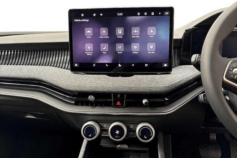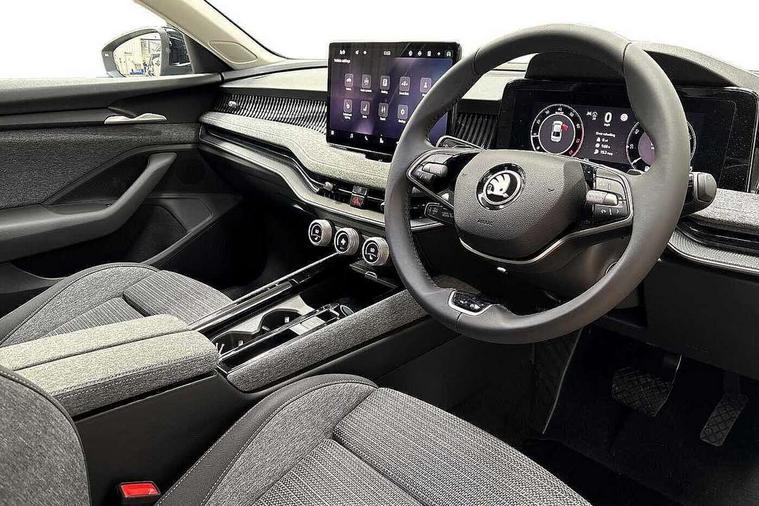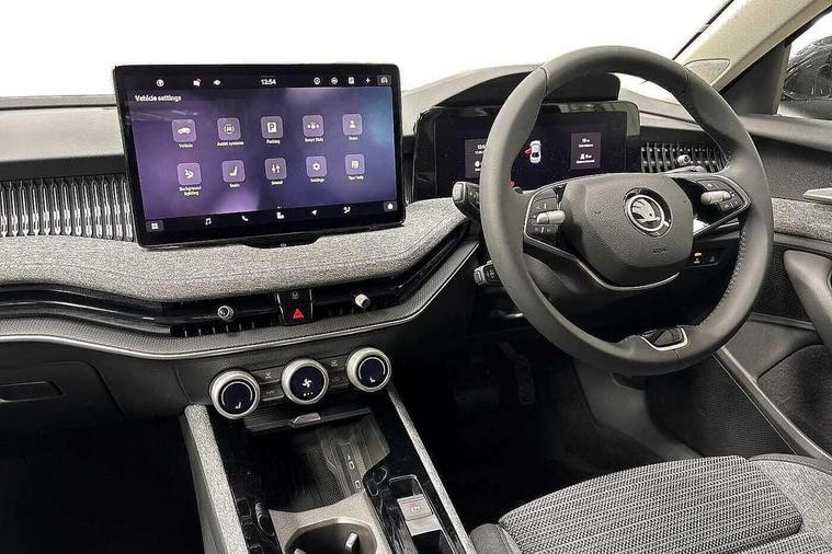 13" touchscreen display with satellite navigation, 4x USB-C ports (2x in front centre console and 2x in rear) (45W), Adaptive cruise control with speed assist, lane assist plus and traffic tram assist, Blind spot detection with door exit warning, Bluetooth system, CareConnect and Emergency Call, ChatGPT functionality, Driver fatigue sensor, Front assist with extended predictive pedestrian protection, Front cross traffic assist, PAS, Quick start all heating software functionality, Rear view camera with washer, Stop/start engine system, Traffic sign recognition, Turn assist with evasive assistance, Virtual Cockpit - 10.25" digital display, Voice control system, Wireless charging for one smartphone (15W) with cooling function, Wireless smartlink apple carplay, SmartLink+ android auto, 8 Speakers, DAB Digital radio, Display cleaner, FM radio connection, Web radio connection, Acoustic side windows and interior noise suppression, Backdrop lighting, Body colour door handles, Body coloured door mirrors, Chrome window surround, Electrically adjustable, heated, folding and driver side auto-dimming door mirrors with integrated indicators and logo projection, Frameless auto-dimming rear view mirror with USB-C, Front windscreen with heat-insulating glass, Ice scraper in fuel tank cap, LED 3rd brake light, Light assist with High beam control, Light assistant (coming/leaving home/tunnel light), Privacy glass, Rear fog light (x1), Rear side wing doors, Tow bar preparation, Unique dark chrome design logo on alloy wheels, Unique dark chrome grille surround with dark chrome rib elements, Windscreen wipers with rain sensor, 12V socket 1x centre console 1x boot, 12V socket and 2x cargo elements in boot, 2 spoke multifunction steering wheel with DSG paddles, 3 seat bench in 2nd row, 60:40 Split folding rear seats, Bottle holders in the front doors 1.5 litre bottle and rear 1.5 litre bottle, Cup holder in front with easy open mat, Front and rear footwell illumination, Front armrest with storage box, Front comfort seats, Heated front seats, Height adjustable driver and front passenger seats with 2-way electric tilt, 4-way pneumatic lumbar support, and extendable thigh support, Height adjustable front and rear head restraints, Height adjustable front passenger seat, Illuminated glovebox, Interior lights with control switches, Isofix child seat fittings in outer rear and front passenger seats, LED front and rear reading lights, Massage function for front seats, Single front passenger seat, Skoda lettering on steering wheel, Storage pockets on back of front seats, Sun visors with illuminated vanity mirrors, Ticket holder on A Pillar, Tri zone climate control, Umbrella in driver's door, 3 rear seatbelts, 8 Airbags - Front driver and passenger, front side driver and passenger, centre, curtain front and rear, drivers knee, Crew protect assist, Driver and passenger seatbelts with warning light, Electronic parking brake, ESC including ABS, EBV, MSR, ASR, EDS, HBA, DSR, RBS, CBC, multi-collision brake (MKB) and Auto hold, Hill hold assist, Power operated child lock in rear doors, Alarm with interior monitoring tilt sensor and back up horn, Backrest remote release from trunk, Electronic engine immobiliser, Keyless start/stop, Remote central locking with SAFE system, Third key, Decorative front door sills,