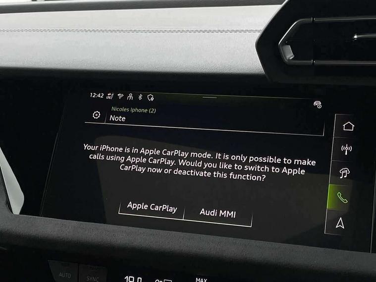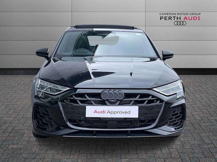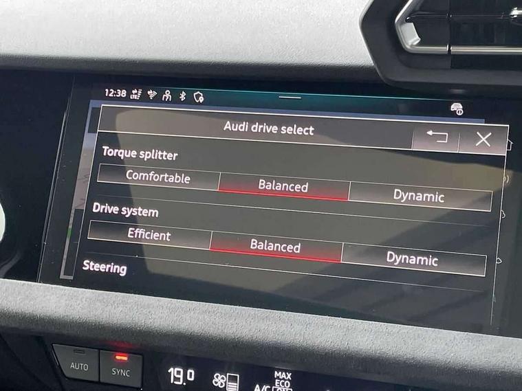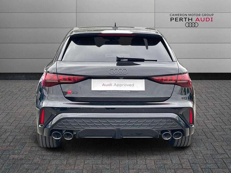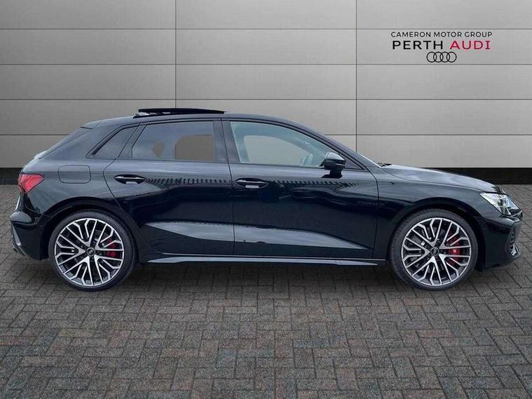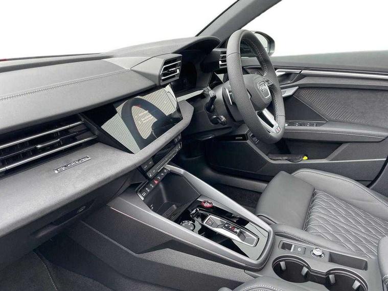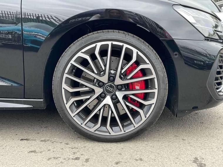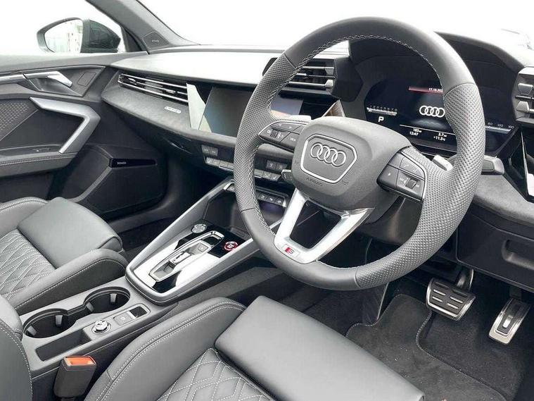 Adaptive cruise control (ACC), Adjustable speed limiter, Audi drive select (Auto, Comfort, Dynamic, Efficiency and Individual), Audi virtual cockpit plus - 12.3" full HD resolution dynamic digital instrument cluster, Automatic start/stop system with recuperation, Bluetooth interface, Camera based traffic sign recognition, Collision avoidance assistant, Driver attention and fatigue detection, e-Call (emergency call), Emergency assist, Intersection assist, Lane departure warning system, MMI Navigation Plus with high resolution 10.1" colour touch screen display, Park Assist with parking system Plus, Progressive steering, Reversing camera, Service indicator, Smartphone interface with app store includes wireless Apple carplay, Android auto and Amazon alexa integration, Trip computer, Voice control system with natural language interaction, quattro permanent all-wheel drive with torque splitter, S sport suspension with spring damper adjustment and lowering by 15mm, Audi Phonebox light with wireless charging, DAB Digital radio, USB ports with charging function in the rear, Anthracite grey Audi rings (front and rear), Audi Beam uses LEDs to project the rhombus S logo onto the ground as you exit your S3, Auto dimming frameless rear view mirror, Black accents front and rear bumpers including air inlets, Black accents in front grille and frame, Black accents in window trims, Electrically adjustable/heated/folding/auto dimming door mirrors with integrated LED indications + kerb view function for passenger side, Exterior model badging, Front and rear side air inlets in grained matt black with dark liquid chrome frame, Front electric windows, Front radiator grill in high gloss dark chrome, Heat insulating glass windscreen, Illuminated door sills with aluminium inserts at the front with S logo, LED 3rd brake light, Light and rain sensors, Privacy glass - dark tinted rear window, rear door and side windows, Rear diffuser and grill in grained matt black with inlay in dark liquid chrome, Rear electric windows, Rear side wing doors, Rear wiper, S grille, S3 front bumper with S specific air intake grilles, S3 roof spoiler, Side sill trim in dark liquid chrome, 12V socket and storage compartment in front centre console, 3 seat bench in 2nd row, 3 spoke flat bottomed leather multifunction sport steering wheel with gear shift paddles, 3-zone deluxe automatic air conditioning, 4 way electrically adjustable lumbar support for driver and front passenger, 40/20/40 split folding rear seat bench, Black cloth headlining, Black front and rear floor mats, Fine Nappa leather upholstery with front sports seats S embossed logo, Front and rear centre armrest in artificial leather with contrasting stitching on armrests and instrument panel, Front and rear headrests, Heated front seats, Height and reach adjustable steering wheel, i-Size child seat mounting on the front passenger side and outer rear seats, i-Size and top tether on the outer rear seats, Manual boot compartment lid, Manually adjustable front seats, Rear centre armrest with cupholder, S badging on the steering wheel, Seat side bolsters, Single front passenger seat, Stainless steel pedals and front footrest in black, Aluminium interior elements pack - A3, Storage package - A3, Technology pack with Matrix LED headlights - A3, 3x3 point rear seat belts, Driver and front passenger airbag with passenger airbag deactivation, Electronic Stabilisation Control (ESC) including ABS, ASR and EDL, First aid kit with warning triangle and 2 safety vests, Front side airbags with head airbags and interaction airbag, Hill hold assist, Pre-sense front with pedestrian and cyclist detection, Seatbelt monitoring, Tyre pressure loss indicator, Anti theft alarm, Anti-theft wheel bolts, Electronically operated child locks, Immobiliser, Black dashboard, Tyre repair kit,