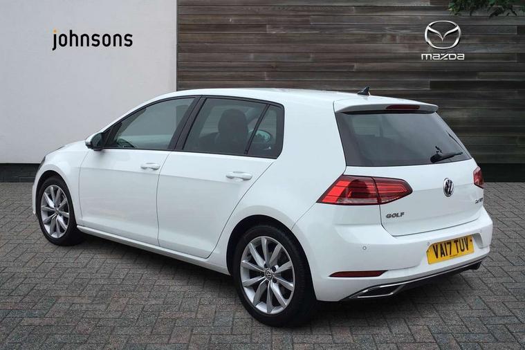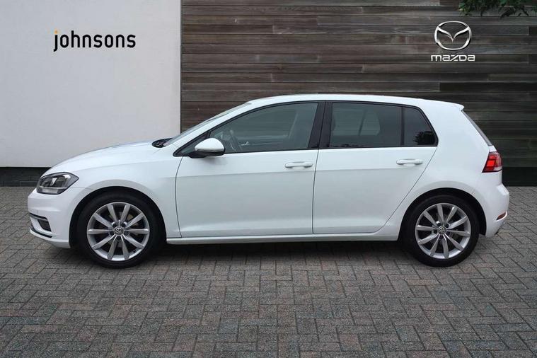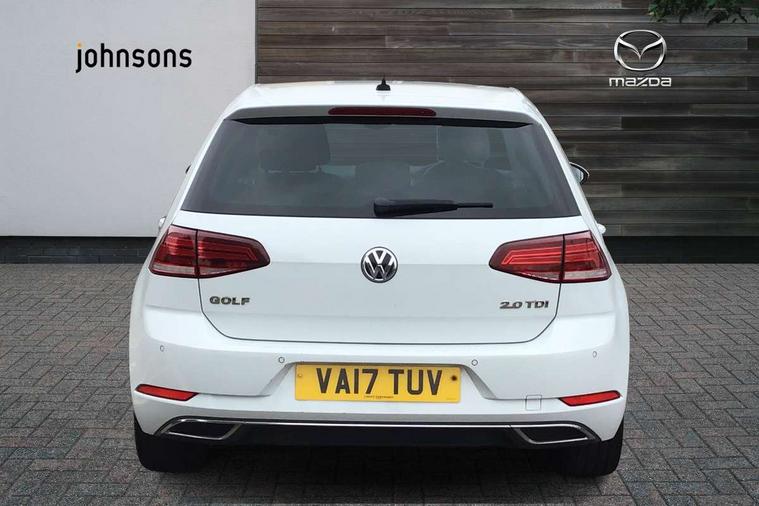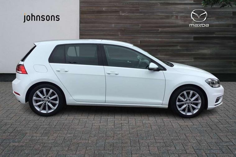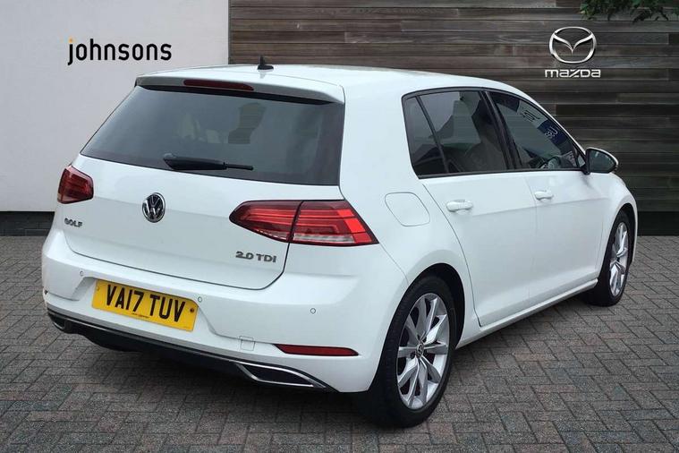 'Lights On' Reminder warning buzzer, 8" touch screen, Adaptive Cruise Control with pedestrian detection and speed limiter, App-Connect, Bluetooth hands free telephone connection, Brake pad wear indicator warning light, Driver alert system, Driver profile selection, Exterior temperature gauge, Front assistant collision mitigation, Instrument cluster in white, Multifunction computer, PAS - speed related, Rev counter, Trip and service interval display, Ultrasonic front and rear optical and audible parking sensors, Warning buzzer and light for front seatbelts unfastened, Diesel particulate filter, Lowered sports suspension, XDS electronic differential lock, CD/MP3/WMA, USB and SD card reader, aux-in, Composition media system, DAB Digital radio, Auto dimming rear view mirror, Automatic coming/leaving home lighting function, Automatic headlights, Black front air intake and radiator grille with chrome insert, Black rear diffuser, Body colour bumpers, Body colour door handles, Body colour door mirrors, Chrome grille surround, Electric front windows, Electric rear windows, Electrically adjustable and heated door mirrors, Heat insulated tinted glass 65% light absorbing from B pillar back, Heated rear windscreen, LED daytime running lights, LED front fog lights with static cornering light function, LED rear lights, Rain sensor, Rear roof spoiler, Rear windscreen washer and wiper with interval delay, 12V socket in luggage compartment, 3 rear headrests, 3 spoke steering wheel, 60/40 split folding rear seat, Bag hook in luggage compartment, Boot lashing points, Cooled glovebox, Courtesy light delay, Cover for storage compartment in centre, Dust/pollen filter, Front + rear carpet mats, Front centre armrest with storage box and rear air vents, Front passenger drawer stowage, Front passenger seat height adjust, Front seat back storage pockets, Gearshift paddles, Grab handles, Height adjustable driver's seat, Height/reach adjust steering wheel, Illuminated vanity mirrors, Isofix preparation for 2 rear child seats, Load through provision with rear centre armrest and cupholders x2, Luggage compartment cover, Luggage compartment lighting, Multifunction leather steering wheel with leather gear knob/handbrake grip, Overhead storage box, Pearl grey headlining, Storage box in luggage compartment, Storage compartments in doors, Sun visors, Variable boot floor, height adjustable and removable, Ambient lighting pack - Golf, Mirror pack - Golf, 3 point height adj front seatbelts + pretensioners, 3 rear 3 point seatbelts, ABS, Automatic post collision braking, Child locks on rear doors, Driver/Front Passenger airbags, Driver/Passenger whiplash optimised head restraints, Drivers knee airbag, Electronic parking brake with auto hold, ESP with EDL + ASR, Front and rear curtain airbags, Front passenger airbag deactivation, Front side airbags, Pre crash system, Tyre pressure monitor, Alarm with interior protection, Electronic engine immobiliser, Remote central locking with 2 remote folding keys, Chrome-plated light switch surround, Piano black centre console, Tumbler decorative inserts, Steel space saver spare wheel,