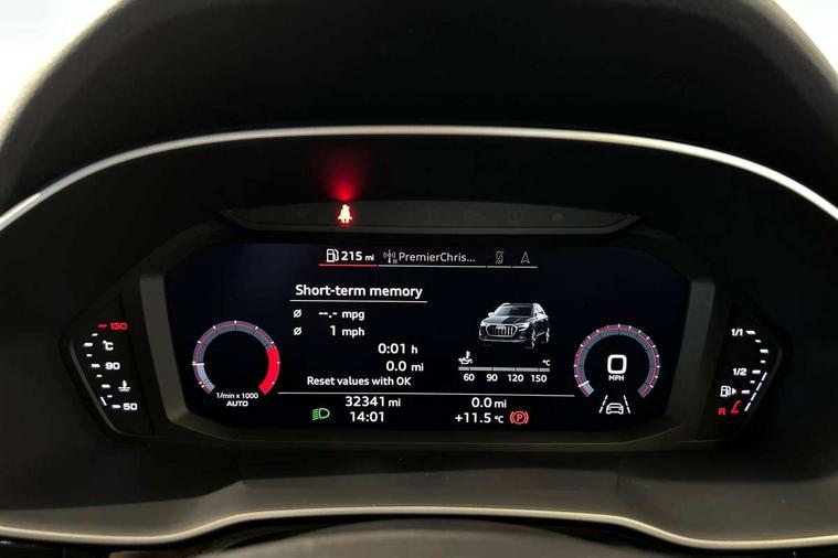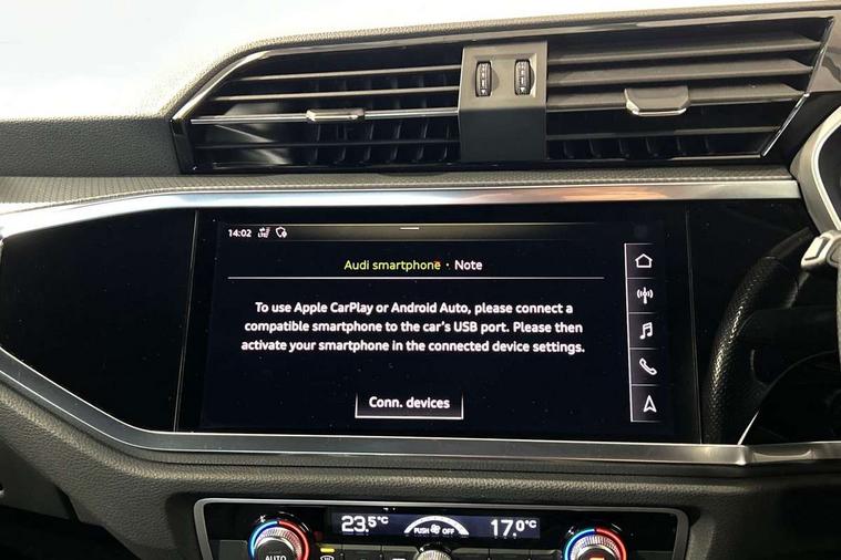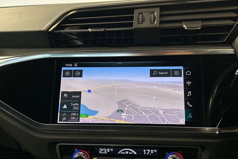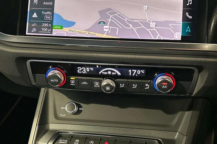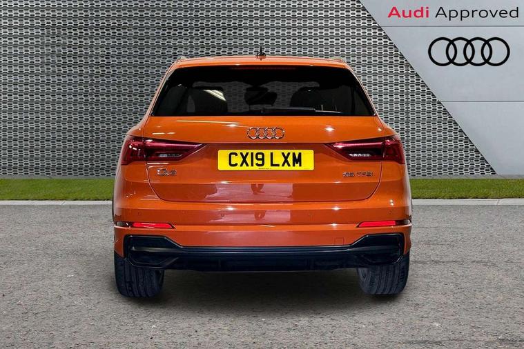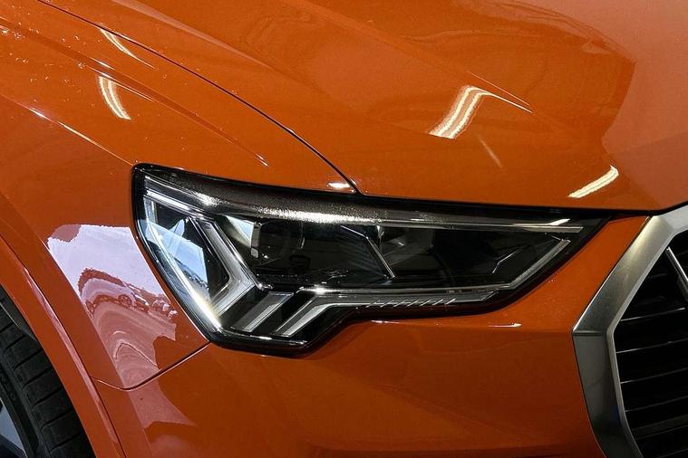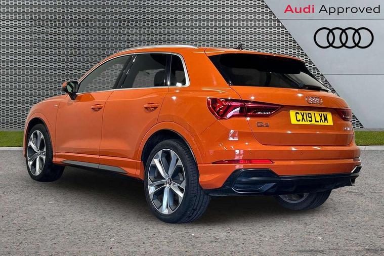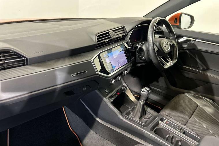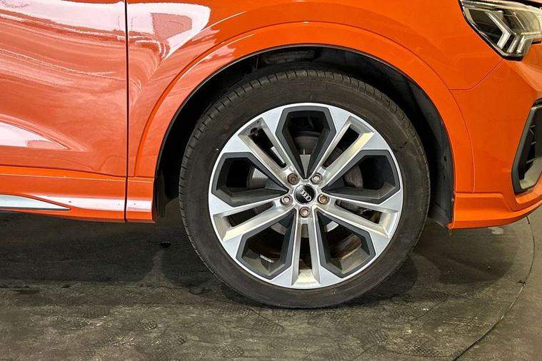 Audi connect safety and service (e-call), Audi drive select, Audi lane departure warning, Audi side assist, Audi smartphone interface, Audi Virtual Cockpit - 10.25" display, Bluetooth interface, MMI navigation plus with MMI touch, Power opening/closing tailgate, Progressive steering, Service interval indicator, Stop/start system, Voice control system, DAB digital radio module, Acoustic windscreen, Aluminium roof rails, Aluminium window trim, Auto dimming rear view mirror, Body colour door mirrors, Body coloured bumpers, Diffuser in matt Platinum grey, Electrically adjustable and heated door mirrors with integrated LED side indicators, Front and rear electric windows, Front fog lights, Front side air inlets in matt platinum grey, Front spoiler blade in matt platinum grey, Grille vertical bars in aluminium silver/Matt, High gloss black finish B and C pillars, Privacy glass, Rain and light sensors, Rear diffuser strip in selenite silver, S Line badge on wings, S Line front and rear bumpers, Side skirt insert in matt Platinium grey, Titanium black radiator grille, 12V socket in rear centre console, 40:20:40 split folding rear bench seat, Adjustable rear seat bench/backrest with centre armrest and cupholder, Aluminium door sill trims, Black cloth headlining, Dual zone climate control, Front and rear black floor mats with contrast stitching in rock grey, Front and rear headrests, Front centre armrest with storage compartment and angle adjustment, Illuminated door sill trims with S logo, ISOFIX child seat mounting and Top Tether with front passenger airbag deactivation, Perforated leather gearknob, Stainless steel luggage compartment sill finisher, Stainless steel pedals, Non smoking pack - Q3, 3x3 point rear seatbelts, 6 airbags - Driver, front passenger, curtain and side windows, Audi pre-sense front with pedestrain and cyclist recognition, Electronic stabilisation control including ABS, ASR and EDL, Hill hold assist, Pre sense basic, Seatbelt monitoring, Tyre pressure warning, Warning triangle and first aid kit, Anti theft alarm, Anti theft wheel bolts, Remote central locking, Dark matt brushed aluminium inlay, MMI touch colour display in gloss black with aluminium surround,