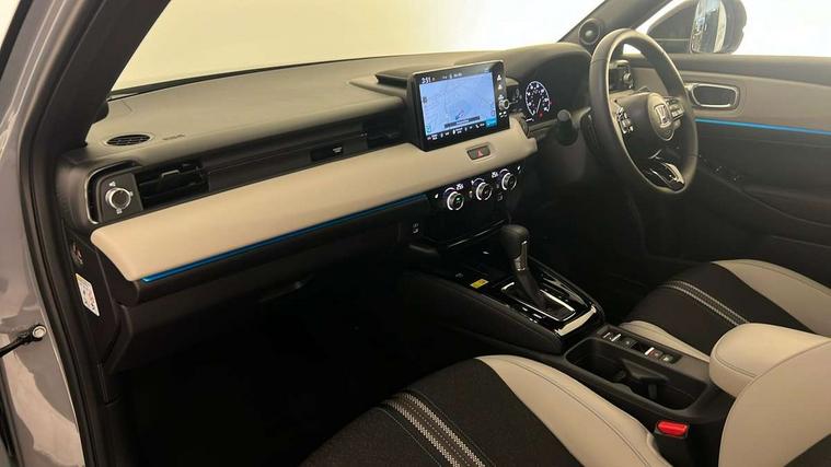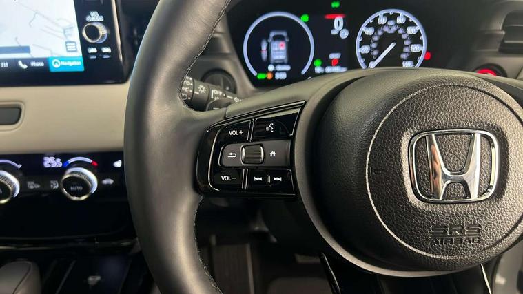 7" TFT instrument cluster, Adaptive cruise control, Adjustable speed limiter, Agile handling assist, BLIS (Blind Spot Information System) with Cross Traffic Monitor, Bluetooth hands free telephone connection, Drive modes select (Eco, normal and sport), Driver attention monitoring system, eCall emergency system, Econ mode, Emergency stop signalling system, Forward collision warning, Front parking sensors, Handsfree power tailgate with walkaway close, Honda CONNECT with Navigation 9" touchscreen, AM/FM/DAB, Apple Carplay and Android Auto, live traffic info, Idle stop, Intelligent speed limiter, Lane departure warning, Lane keep assist, Low speed following, Multi info display, Multi view camera, Power meter, Rear parking sensors, Road departure mitigation, Tachometer, Traffic jam assist, Traffic sign recognition, Variable gear ratio electric power steering, WiFi connectivity, Wireless apple carplay, Wireless charger, Vehicle stability assist, 10 speakers includes premium audio, centre speaker, front tweeter and subwoofer, 2 USB sockets in rear, 2x USB Front socket (1 data & 1 charge), Steering wheel mounted remote controls, Adaptive driving beam, Auto dimming rear view mirror, Auto headlight adjuster, Automatic headlights, Automatic headlights with on/off timer, Coming/leaving home function, Automatic rain sensing wipers, Body colour bumpers, Body colour tailgate spoiler, Body coloured door handles, Dark colour roof lining, eHEV emblem, Electric front and rear windows, Electrically adjustable, heated and folding door mirrors, Exclusive styling in black lower bumper, fog garnish and bumper skid garnish, black lower door garnish with blue accent/trio colour oranment on grille, Exclusive styling in Piano black front console garnish, blue stripe garnish on door and instrument panel, blue stiches on seats, Exterior mirror tilt for reverse, Fixed panoramic glass roof, Headlight washers, Heated front windscreen, Heated rear window, High gloss window garnish, LED 3rd brake light, LED cornering lights, LED daytime running lights, LED front fog lights, LED front sequential turn, LED headlamps, Privacy glass, Rear side wing doors, Rear wiper, Red and clean lens LED rear lights, Shark fin antenna, Two tone roof, Variable front intermittent wipers, Windscreen shadeband, 3 rear headrests, 3 seat bench in 2nd row, 60/40 split folding rear seat, Accessory sockets in front, Ambient lighting on roof, Blue interior panels, Cargo net hooks, Courtesy lights, Driver seat back pocket, Driver's seat manual height adjust, Driver/passenger sunvisors with illuminated vanity mirrors, Dual automatic air conditioning, Front head restraints, Front map lights, Front seat armrests, Genuine leather shift knob, Genuine leather steering wheel, Heated front seats, Heated steering wheel, Isofix points, Luggage floor box, Magic seats, Meter illumination light, Normal pedals, Paddle shift controls, Passenger seat back pocket, Rear centre armrest, Rear reading lights, Rear ventilation, Silver interior door handles, Single front passenger seat, Synthetic leather and fabric upholstery, Tilt/telescopic adjustable steering wheel, Tonneau cover, Trunk light, 3x3 point rear seatbelts, ABS+EBD+Brake assist, Automatic brake hold, Collision mitigation braking system, Collision mitigation throttle control, Deflation detection system, Driver and front passenger airbags, Driver SRS airbag (single stage inflation), Electric child locks, Electronic parking brake, Front and rear curtain airbags, Front and rear safety belts with Emergency Locking Retractor, Front side airbags, Hill descent control, Hill start assist, Low speed brake system, Paddle deceleration control, Passenger SRS airbag cut-off device, Regenerative braking system, Whiplash lessening front headrests, Immobiliser, Mirrors and windows key fob operation, Remote central locking with 2 remote folding keys, Security alarm, Smart entry and start system, Superlocking, Tyre repair kit,