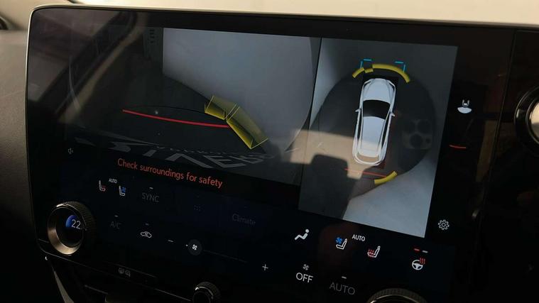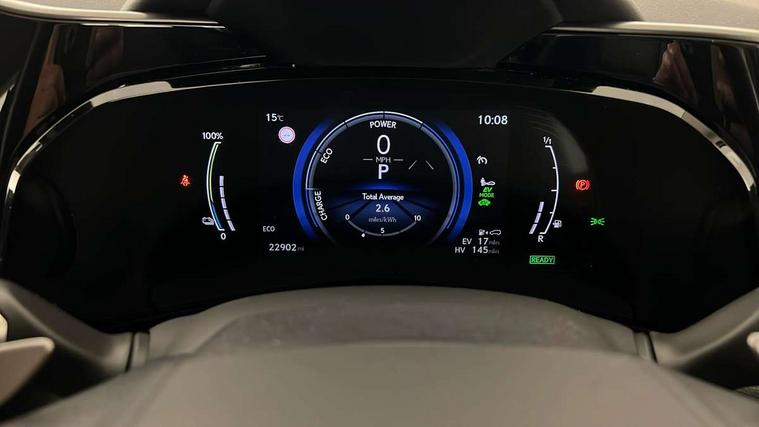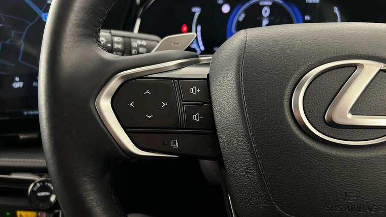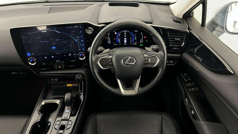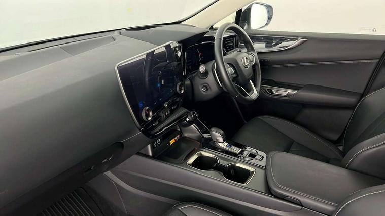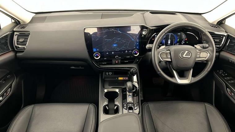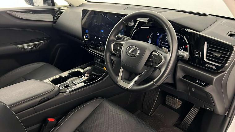 4 driving modes EV/Eco/Normal/Sport, 7" display in instrument binnacle, Blind spot monitoring with rear cross traffic alert, Bluetooth telephone connectivity, eCall emergency system, Electric speed sensitive power steering, Intelligent parking sensors - 4 front and 4 rear, Lane change flasher function, Lexus link connect - Cloud based navigation, cloud based voice assistant, always online and 9.8" VGA touchscreen, Push button starter, Reversing camera with back guidelines, Service interval indicator, Tailgate, Wireless Apple CarPlay and wired Android Auto, Wireless Smartphone charger, 6.6 kW onboard charger, All Wheel Drive (AWD), Hybrid automatic transmission, Vehicle Dynamics Integrated Management (VDIM), Vehicle Stability Control (VSC), 10 speakers, 4 USB ports - 2 front, one USB C, 2 rear USB C, DAB Digital radio, Auto dimming interior rear view mirror, Automatic headlights, Bi LED headlights, Double hidden exhaust pipes, Front and rear one touch power windows, with anti-jam protection, Heated, auto-folding, auto-dimming outside mirrors with reverse tilt function and turn indicators, Illuminated door handles with puddle light, LED brake lights and rear lights with emergency brake signal, LED cornering lights, LED daytime running lights, LED front fog lights, LED Indicators, Power back door with kick sensor, Privacy glass, rear doors and tailgate, Rain sensor windscreen wipers, Rear side wing doors, Rear wiper, Roof rails, 12V accessory port centre console and luggage compartment, 2 cupholders in front centre console, 2 way electrical lumbar adjustment for driver, 2 x fixed shopping bag hooks in boot, 2 x sun visors with vanity mirror and lamp, 3 seat bench in 2nd row, 4 x tie down hooks in the boot, 60/40 split folding rear seat, 8 way driver/passenger electrically adjustable front seats, Adjustable rear seat backrest, Card holder installed in driver and passengers sun visors, Centre armrest with storage box, Dual climate control air conditioning system, Front and rear head restraints, Front and rear textile carpet mats, Front passenger seat, Heated front seats, Heated steering wheel, Leather gear lever, LED interior illumination, Power adjustable leather steering wheel with paddle shifts, Premium Tahara leather upholstery, Rear centre armrest with 2 cupholders, Whiplash Injury Lessening (WIL) feature (active headrest) for seats, 2 x Isofix child rear seat restraints, 3 point ELR front seatbelts with pretensioners, 3x3 point rear seat belts, ABS, Adjustable seat belt anchor points, Driver and front passenger 2 stage airbag, Driver/front passenger side airbags, Drivers knee airbag, E-Latch with safe exit assist, EBD + Brake Assist, ECB (Electronically Controlled Brake System), Electronic parking brake, Front and rear curtain shield airbags, Front center airbag, Front passenger seat cushion airbag, Hill assist control, Lexus safety system - dynamic radar cruise control, pre collision system day and night, lane tracing assist, road sign, automatic high beam, OTA, Manual rear child locks, Passenger airbag cut-off device, Traction control, Tyre pressure warning, Anti-theft system with alarm, intrusion sensor, glass breakage sensor, tilt sensor and engine immobiliser, Locking wheel nuts, Smart keyless entry, Speed sensitive auto door locking, Two motion door lock with double lock, Ultra Wide Band (UWB) Anti-theft system, VIN Window etching, 3D prism black Inlay, Organic inlay, Tyre repair kit,