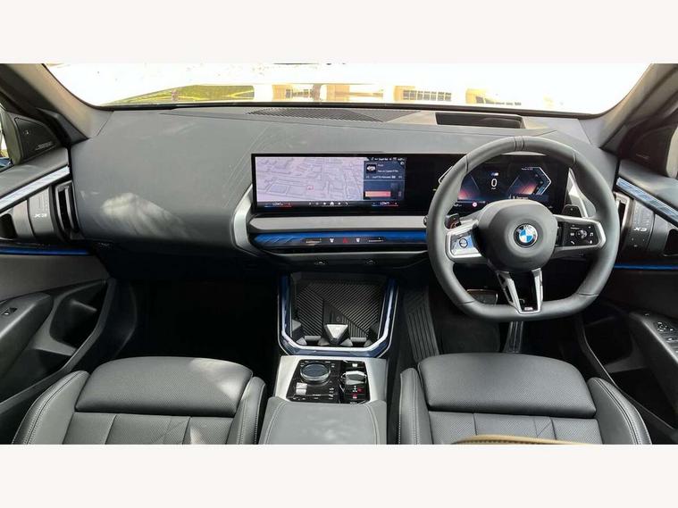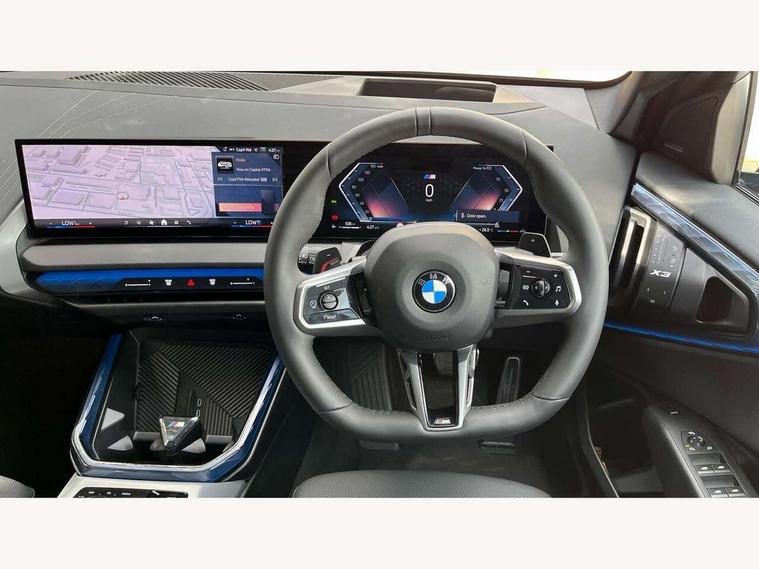Active guard professional, Attentiveness assist, Automatic operation of tailgate, BMW ConnectedDrive online services, BMW iDrive, BMW Online services, BMW Teleservices, Brake pad wear indicator, Condition based service, Cruise control with brake function + speed limiter, Drive off assistant, Driving Assistant Plus Preparation, Flat tyre monitor, Language version English, My Mode - Personal, Efficient, Sport, Relax, Expressive, Parking assistant, Reversing assist camera, Servotronic system, Variable sport steering, Dynamic stability control, Multiple control arm rear axle, Steptronic transmission with gearshift paddles, Two-joint strut-type front axle with tension strut, DAB tuner, Personal eSim, 4 tailpipe tips, B-pillar trim panel in black high-gloss, BMW badge on front and rear, BMW M-specific front/rear bumpers and side sills, BMW M-specific radiator grille with horizontal bars in Dark Silver and M logo, Daytime running lights, Door handles flush to the surface with lock barrel on driver's side, Dynamic brake lights, Electric adjustable and heated door mirrors, Electric window trap release and convenient opening/closing feature, Headlight beam throw control, Heated rear window, Heated windscreen washer jets, High beam assistant, LED 3rd brake light, LED rear lights, LED tail lights, Locking of the doors, M high-gloss shadowline, M-specific Exterior mirrors, Mirror base and mirror blade in black high-gloss, Mirror triangle in black high-gloss, Rain sensor with automatic headlight activation, Rear side wing doors, Rear wiper, Reversing light, Side window frame in black high-gloss, Windscreen wipers, 12v power socket in front centre console and luggage compartment, 2 x USB Type C ports for charging and data transmission (front centre console) and 2 x USB Type C ports for charging (rear centre console), 3 rear headrests, 3 seat bench in 2nd row, 3 zone automatic air conditioning, 40:20:40 split folding rear seat with loading system, Ambient lighting, Anthracite headlining, Electric adjustable seats with memory function, Floor mats in velour, Footrest and pedals in black plastic, Four grab handles integrated in roof lining, Front armrest with integrated control panel, Front centre console trim in black high-gloss, Front head restraints, Front passenger seat, Front sports seats, Glove compartment, i-Size / ISOFIX attachment points on both outer rear seats, with covers in black, Luggage compartment separating net, M sport leather steering wheel, Multifunction steering wheel, Rear side armrests integrated into door trim, Selector lever with toggle operation, Steering column adjustment, Sun visors with illuminated vanity mirrors, Three upper retaining strap clips integrated into the rear panels of the seat backrests, Through loading system, Two front cupholders and two in the rear center armrest, Wireless charging tray, Connected pro package - X3, Driving assistant package - X3, Interior and exterior mirror package - X3, 3 point seatbelts, Airbag deployment is controlled with respect to the intensity and scope, Anti-lock braking system (ABS), Automatic hold function, BMW emergency call, Brake assist, Brake drying, Brake energy regeneration, Braking readiness, Central airbag, Child locks on rear doors, Cornering brake control (CBC), Crash Sensor - activation of central locking release, hazard warning light and interior lighting, Driver and front passenger front and side airbags, Dynamic brake control, Electromechanical parking brake, Front and rear disc brakes, Head airbags, Integrated braking system, Post Crash Collision Warning with braking function, Trailer stability control, Tyre pressure sensor, Warning triangle, Alarm system, Closing system with central locking, Comfort access system, Locking wheel bolts, Start/stop button with keyless motor start with acoustic drive, Tyre repair kit,
