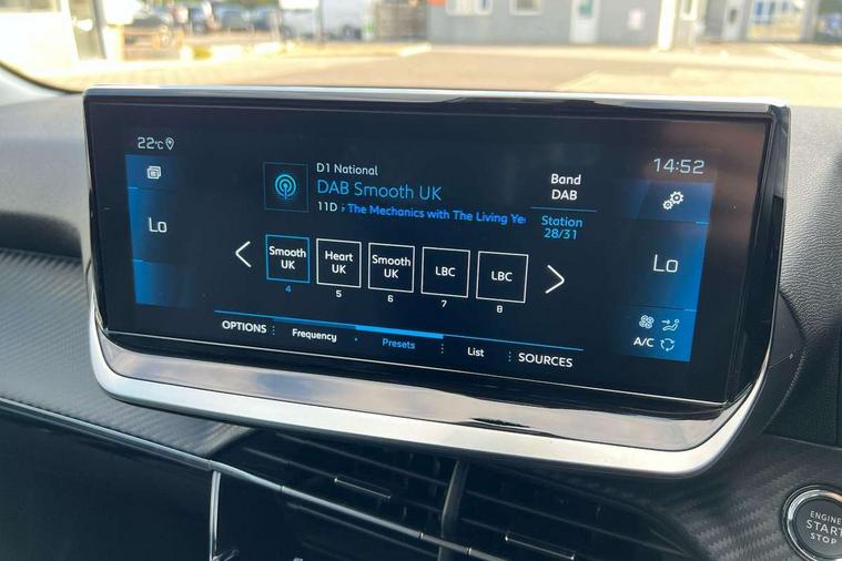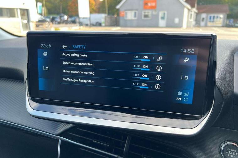 Bluetooth telephone facility, Driver attention warning, Emergency call service, Exterior temperature indicator with ice warning, Lane keep assist, Mirror screen with mirror link, apple carplay and android auto, Multi function trip computer, PEUGEOT i-Cockpit with compact steering wheel, PEUGEOT i-Cockpit with configurable 3D headup instrument panel, Push button start, Smart phone docking station, Speed limit recognition and recommendation, Start/stop system, Visio Park 1 with 180 degree Colour reversing camera, 2 front USB socket with USB-C, 2x USB sockets in rear, 6 speakers radio with mp3 compatible, DAB Digital radio, Voice recognition for radio, navigation and telephony features, 2 X Rear number plate lights, Automatic hazard light activation upon heavy brake application, Automatic lights, Automatic windscreen wipers, Body coloured exterior door handles, Dark tinted rear side and tailgate windows, Diamond black rear spoiler (roof), Eco LED headlights, Electric front windows + one touch + anti-pinch, Electric rear windows with one touch/anti-pinch, Electrically adjustable, heated and power folding door mirrors, Electrochrome rear view mirror, Follow me home headlights, Gloss black finish on B pillar, Gloss black rear cluster connecting strip, Gloss black window surround, Headlights left on audible warning, LED daytime running lights with 3 claw headlight with distinctive tooth design, LED side indicator lights integrated into door mirrors, LED third brake light, Model designation badges front and rear, Nera black door mirror shells, Radiator grille chrome chequered, Rear bumper with gloss black finish, Rear full LED 3D peugeot signature claw effect lights with daylight function, Rear reversing lights, Rear side wing doors, Rear windscreen wiper triggered automatically in reverse gear, Roof mounted aerial, Roof spoiler, Single exhaust tailpipe, Tailgate with heated rear windscreen and wiper blade, Variable front intermittent wipers, 1/3 to 2/3 split folding rear seats, 12V socket, 3 seat bench in 2nd row, Aluminium pedals and front door sills, Automatic air conditioning, Black rods on rear headrests, Black wheel nut covers, Driver and front passenger comfort seats, Driver and front passenger seat manual adjustment in longitudinal and back rest angle, Driver seat mechanical height adjustment, Electric power steering with reach and rake adjustable steering column, Front centre armrest with storage compartment, Front interior light with 2 reading spotlights, Gear shift indicator, High centre console with 2 cup holders, Leather steering wheel, Map pockets on the backs of the front seats, Piano keys gloss black plated toggle switches to access main functions of the vehicle, Rear centre headrest, Roof lining - light grey, Satin chrome gear lever, Seatbelt unfastened on the move audible and visual alert for front and rear seats, Single front passenger seat, Tri material cloth/leather upholstery, 2x Isofix child seat fitting on outer rear seats, 3 rear 3 point seatbelts, ABS (Anti-lock Braking System) with EBD (Electronic Brakeforce Distribution) and EBA (Emergency Braking Assistance), Adaptive driver and front passenger airbags with passenger airbag deactivation function, Child locking functionality on rear doors, Driver/front passenger side airbags, Electric parking brake, ESP with Hill Assist, Front and rear curtain airbags, Front and rear disc brakes, Front optimised safety headrests and 3 x rear retractable headrests with height adjustable, Front three point retractable seatbelts with force limiters, Pedestrians active safety brake, Tyre pressure sensor, Acoustic vehicle alert system (AVAS), Automatic door locking when moving off, Deadlock, Electronic code immobiliser, Remote central locking, Thatcham cat. 1 alarm with anti lift sensor, Carbon effect Dashboard, front and rear door panel finish, 16" Soho diamond cut alloy wheels, Tyre puncture repair kit,