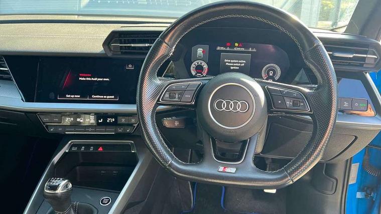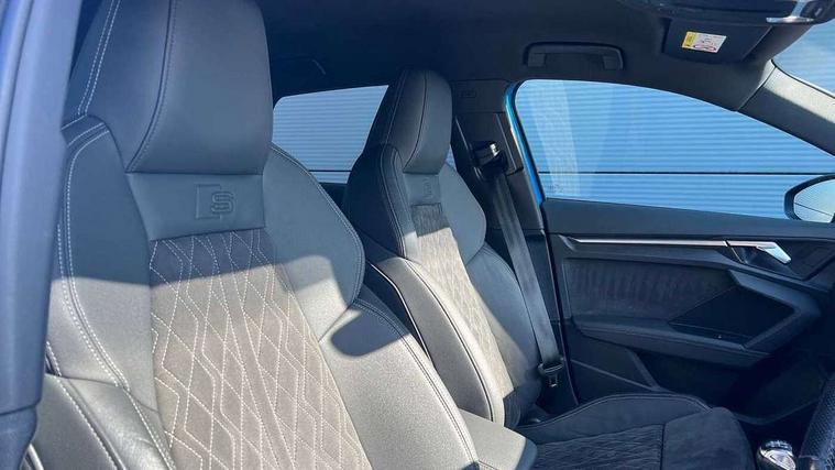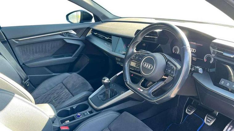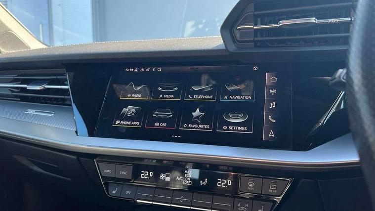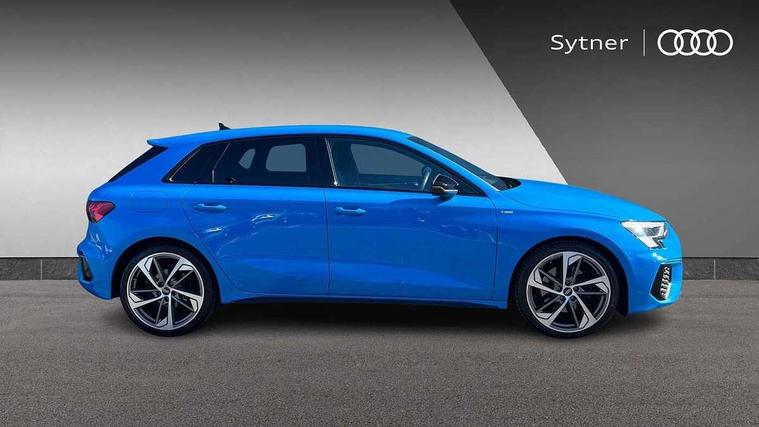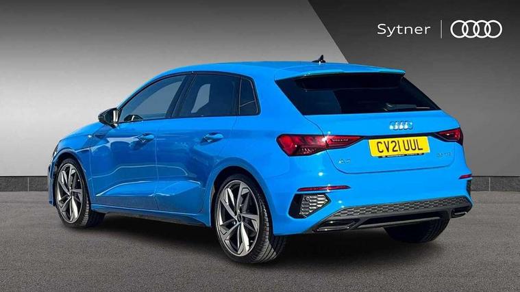 Audi connect emergency call and service, Audi drive select (Auto, Comfort, Dynamic, Efficiency and Individual), Audi smartphone interface, Audi virtual cockpit plus - 12.3" full HD resolution dynamic digital instrument cluster, Automatic start/stop system with recuperation, Bluetooth interface, Collision avoidance assistant, Cruise control, Electromechanical power speed sensitive steering, Lane departure warning system, MMI Navigation Plus with high resolution 10.1" colour touch screen display, Rear parking sensors, Service indicator, Trip computer, Voice control system with natural language interaction, Sports suspension, 2xUSB-C connection with data and charging functions, 6 passive loudspeakers, DAB Digital radio, Acoustic glass windscreen, Audi matrix LED headlights with LED rear lights + dynamic front and rear indicators, Auto dimming frameless rear view mirror, Body colour front spoiler blade, Front electric windows, Headlight washers, Illuminated aluminium inserts front door sills with S logo, LED daytime running lights, Light and rain sensors, Privacy glass - dark tinted rear window, rear door and side windows, Rear diffuser in grained matt black, Rear electric windows, Rear side air outlets in grained matt black, Rear wiper, S roof spoiler, 12V socket and storage compartment in front centre console, 3 spoke flat bottomed multifunction plus sports contour leather wrapped steering wheel, 4 way electrically adjustable lumbar support for driver and front passenger, 40/20/40 split folding rear seat bench with cupholder, Alcantara/twin leather upholstery with front sports seats S embossed logo, Black cloth headlining, Dual zone electronic climate control, Front and rear centre armrest in leather, Front and rear headrests, Front/rear floor mats, Heated front seats, Height and reach adjustable steering wheel, Interior lighting - glove compartment light and right hand side, Luggage compartment floor covering, Seat side bolsters, Stainless steel pedals and front footrest, Aluminium interior elements pack - A3 Sportback, Black styling pack - A3 Sportback, Extended ambient lighting pack - A3 Sportback, LED interior lighting pack - A3 Sportback Edition 1/Vorsprung, 3x3 point rear seat belts, Driver and front passenger airbag with passenger airbag deactivation, Electronic Stabilisation Control (ESC) including ABS, ASR and EDL, First aid kit with warning triangle and 2 safety vests, Front side airbags with head airbags and interaction airbag, Hill hold assist, Pre-sense front with pedestrian and cyclist detection, Seatbelt monitoring, Tyre pressure loss indicator, Anti theft alarm, Anti-theft wheel bolts, Electronically operated child lock, Immobiliser, Remote control central locking, Accent surfaces in the dashboard and centre console in platinum grey silk effect paint finish, Dark spectrum aluminium inlays, 19" 5 arm trapezoid design alloy wheels in titanium matt grey with diamond cut finish,