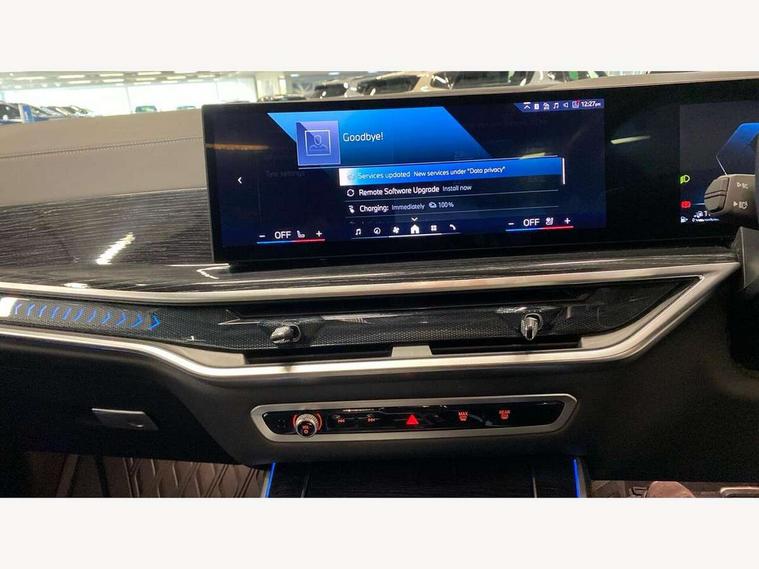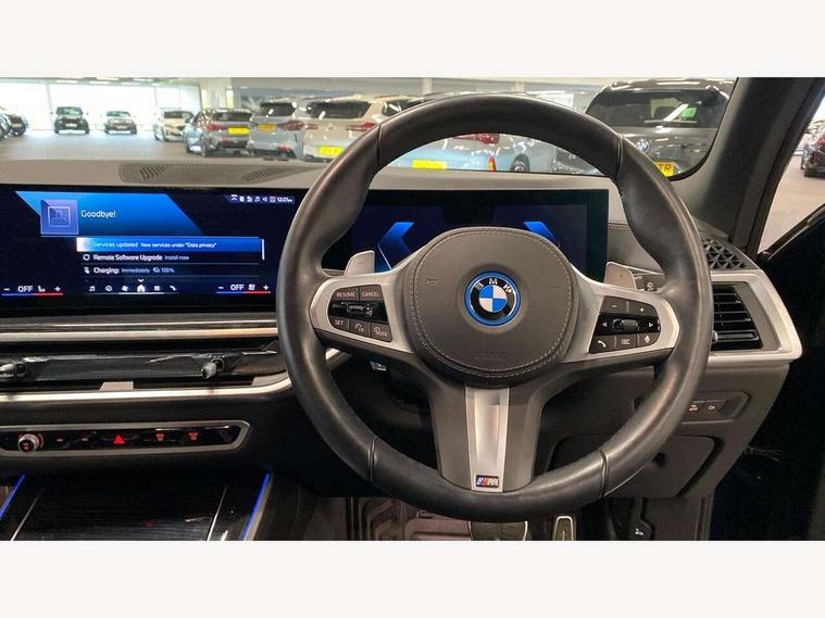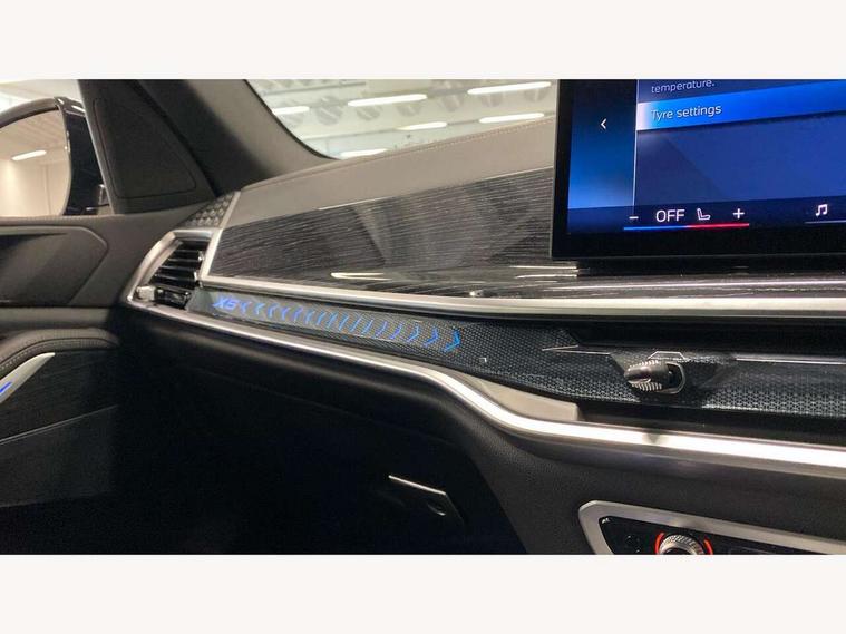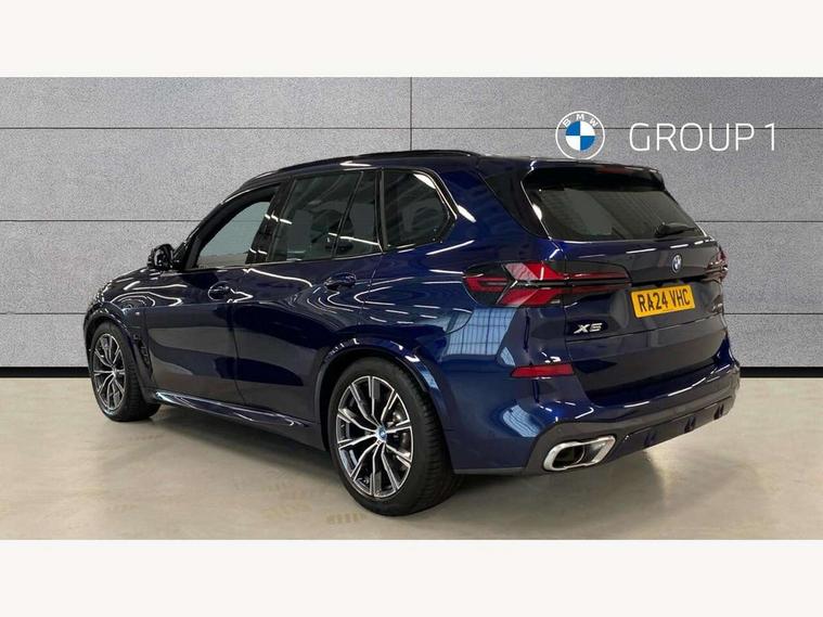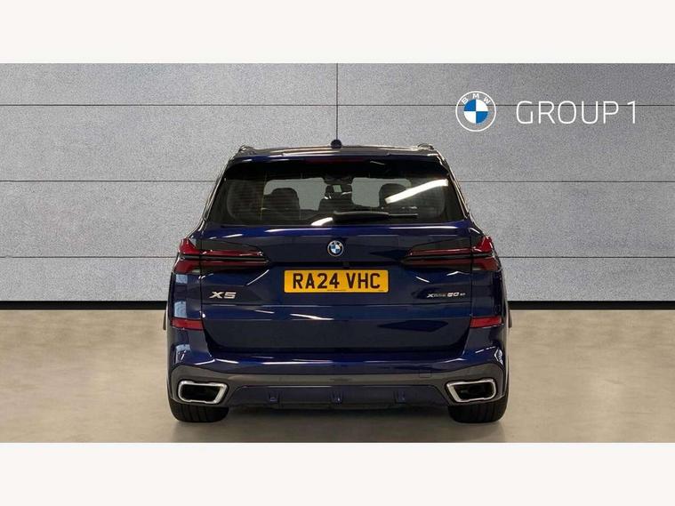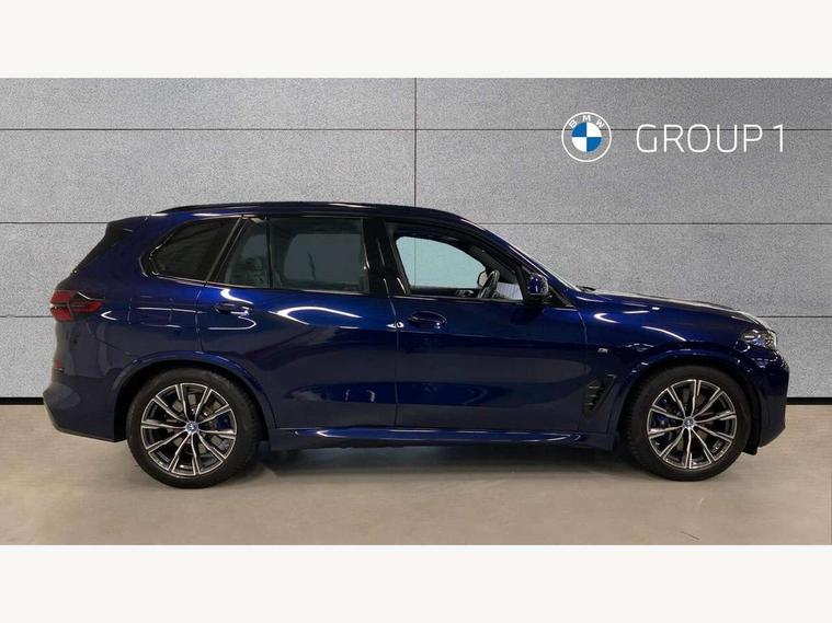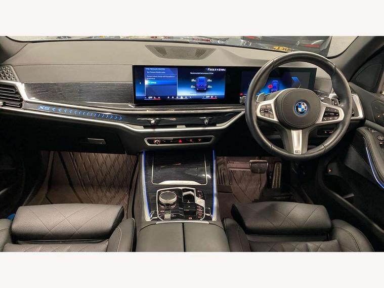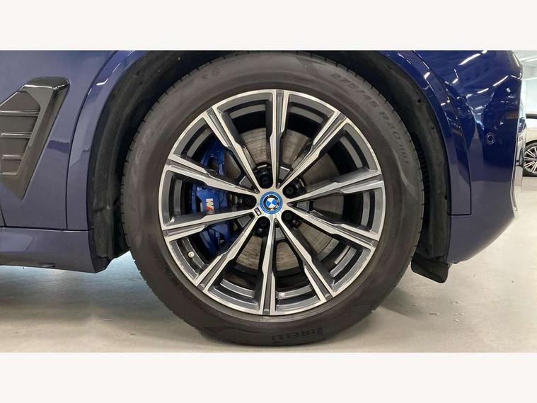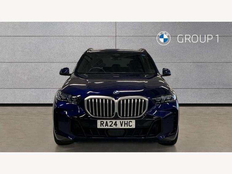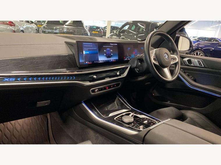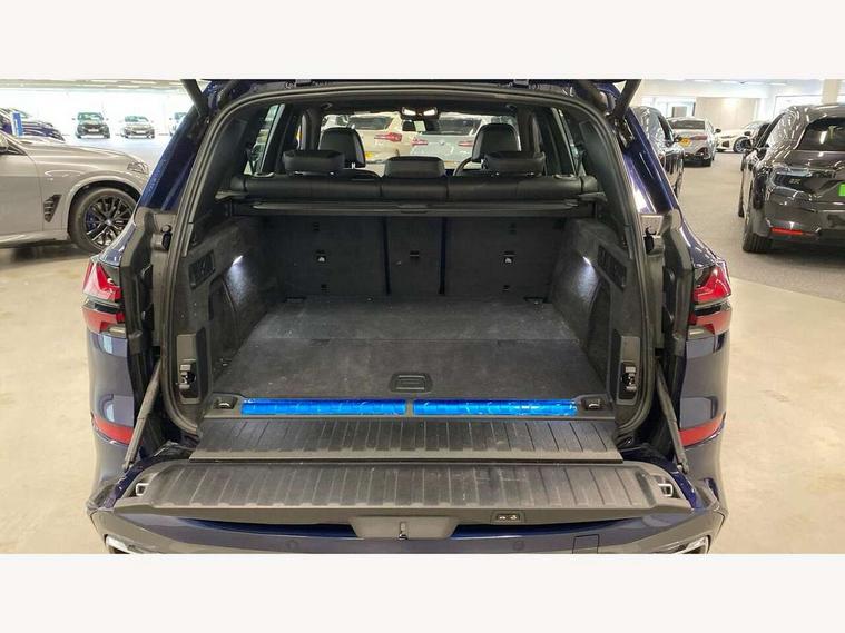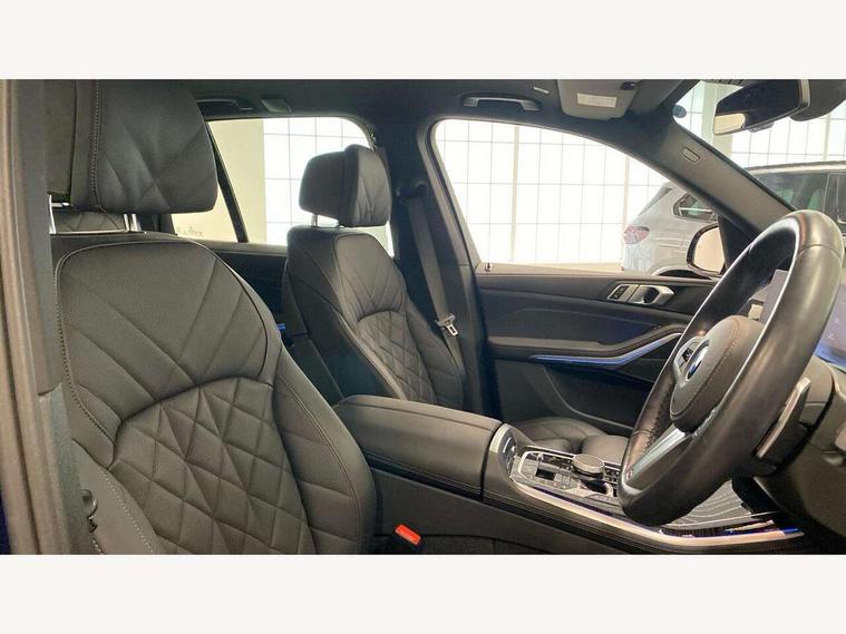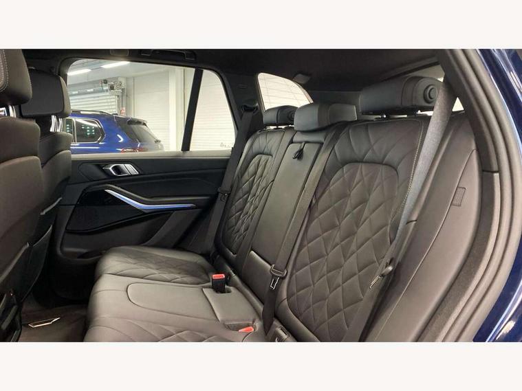 Attentiveness assist, Automatic tailgate operation, BMW ConnectedDrive online services, BMW live cockpit + with curved 12.3 instrument cluster/14.9 central display, nav/Tuner with diversity reception, RDS/4GLTE/remote software upgrade, BMW Teleservices, Condition based service, Cruise control with brake assist, eCall emergency call system, Enhanced bluetooth with wireless charging, Integrated owner's handbook, PAS, Speed limiter, Wi-Fi hotspot, Drive performance control with ECO PRO comfort + sport mode, Eight speed steptronic sport automatic transmission and gearshift paddles on the steering wheel, Hi-Fi loudspeaker system, Personal eSim, Adaptive LED Headlights, Front and rear electric windows, High beam assistant, High gloss black shadow line roof rails, LED daytime running lights, Rain sensor, Rear side wing doors, Third brake light in rear spoiler, Variable intermittent rear wash/wipe, 12V - Power sockets with 2x centre console and 1x luggage compartment, 3 seat bench in 2nd row, Foldable rear centre armrest with 2 cupholders and storage compartment, Front and rear side armrest integrated into door trim, Headrests for all seats, Luggage compartment separating net, Single front passenger seat, Three spoke sport M leather steering wheel, Velour floormats, Ambient light interior pack - X5, Driving assistant pack with radar based driver assistance system - X5, Expanded exterior mirror pack - X5/X5 M, M aerodynamics pack - X5, 3 rear seatbelts, Acoustic protection for pedestrians, Active protection, Airbags - driver/front passenger, rear and side, first and second row seats head airbags, front passenger seat airbag deactivation + knee airbag, Anti-lock braking system (ABS), Automatic Stability Control (ASC), Brake energy regeneration, Cornering brake control (CBC), Crash sensor activating central locking release, hazard warning lights, fuel cut off, interior lighting + activation of safety battery terminal clamp, DSC - Dynamic Stability Control, Dynamic Traction Control - DTC, Electromechanical parking brake with automatic drive away release and auto hold function, Electronic brake force distribution, Hill start assistant, M Sport blue painted brake calipers with 'M' designation, Mechanical child proof lock on rear doors, Tyre pressure monitoring system, Tyre pressure sensors, Ventilated front and rear disc brakes, Warning triangle and first aid kit, Alarm system, Closing system with central locking, Comfort access system, Locking wheel bolts,