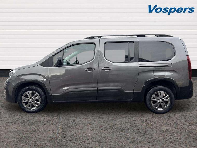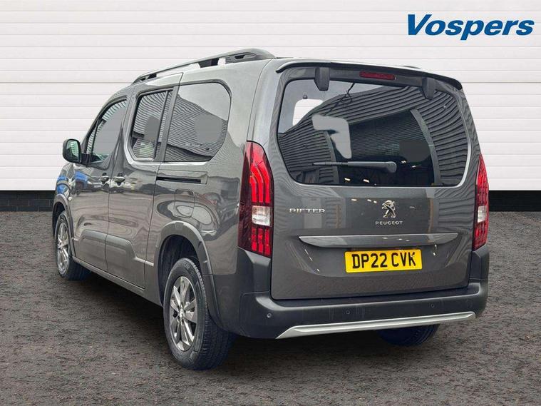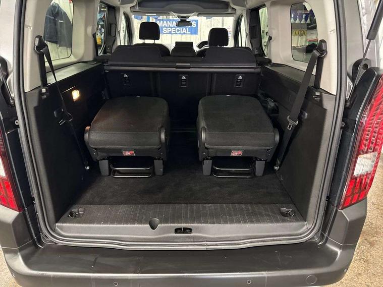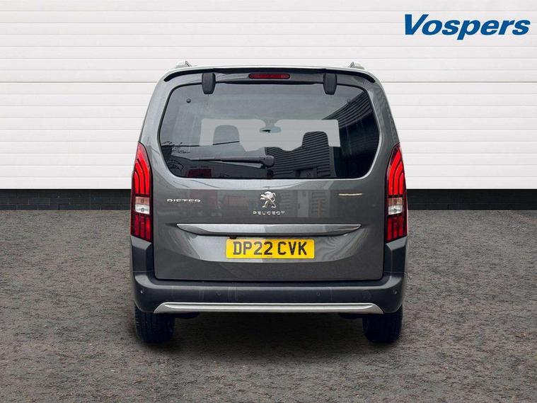 8" capacitive colour touch screen with mirror screen (Apple CarPlay and Android Auto), Analogic cluster, Bluetooth telephone facility, e-Call (emergency call), Multi function trip computer, PEUGEOT i-Cockpit with compact steering wheel, PEUGEOT i-Cockpit with head-up instrument panel, Rotary switch driving selector, Stop/start system, Voice control system, Voice recognition for radio and telephone, 6 speakers, DAB radio with buttons, MP3 connection, Steering wheel mounted controls, USB socket, USB socket at the back, Aluminium roof bars, Automatic hazard light activation upon heavy brake application, Black bumpers, Body colour door handles, Contrasting wheel arch trim, Dark tinted rear side windows + tailgate window, Electric front windows, Electric heated door mirrors, Electric rear windows, Front and rear scuff plates, Front fog lights, Front windscreen wiper with multispeed setting, Gloss black door mirrors, Halogen headlights, Headlights left on audible warning, LED daytime running lights, LED rear signature claw effect lights, Opening rear tailgate window, Power folding door mirrors, Radiator grille in 3D stamped effect and chrome surround, Rear windscreen wiper triggered automatically in reverse gear, Tailgate with heated rear windscreen and wiper blade, Two glazed sliding side doors, 12V socket, 2 independent and removable sliding 3 row seat, Air vents in 2nd row with fan strength command and USB socket, Door sill protectors, Driver and passenger dashboard mounted cup holders, Electric power steering with reach and rake adjustable steering column, Fixing rings x 4 in load area, Foldable passenger seat with under-seat storage and elbow rest, Front interior light with 2 reading spotlights and rear interior light with timer, Full width overhead storage shelf, Gear shift indicator, Height adjustable drivers seat with lumbar support, High console between front seats with storage compartment, Isofix child seat fittings x 3 in the second row, Leather steering wheel with integrated controls, Parcel shelf - retractable, Puma cloth upholstery, Tray tables at the back of the front seats, Under-seat storage and elbow rest for driver seat, Upper glove compartment, Visibility pack - Rifter, 3 X 2nd row and 2 x 3rd row 3 point seatbelts, ABS (Anti-lock Braking System) with EBD (Electronic Brakeforce Distribution) and EBA (Emergency Braking Assistance), Adaptive driver and front passenger airbags with passenger airbag deactivation function, Child locking functionality on rear doors, Driver/front passenger side airbags, Electronic parking brake, ESP (Electronic Stability Program) + Hill Start Assist, Front and rear curtain airbags, Front and rear disc brakes, Front and rear seats seatbelt unfastened on the move audible and visual alert, Front optimised safety headrests and 3 x rear retractable headrests with height adjustable, Front three point retractable seatbelts with force limiters, Tyre pressure sensor, Auto door lock when driving, Deadlocks, Electronic immobiliser, Remote central locking, Picasso blue interior ambiance, 16" Taranaki anthra grey alloy wheels, Tyre puncture repair kit,