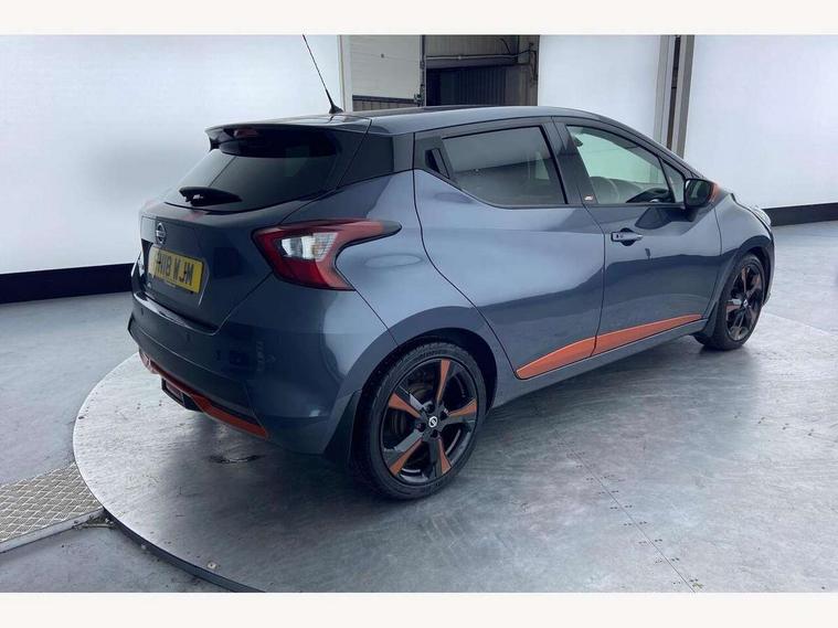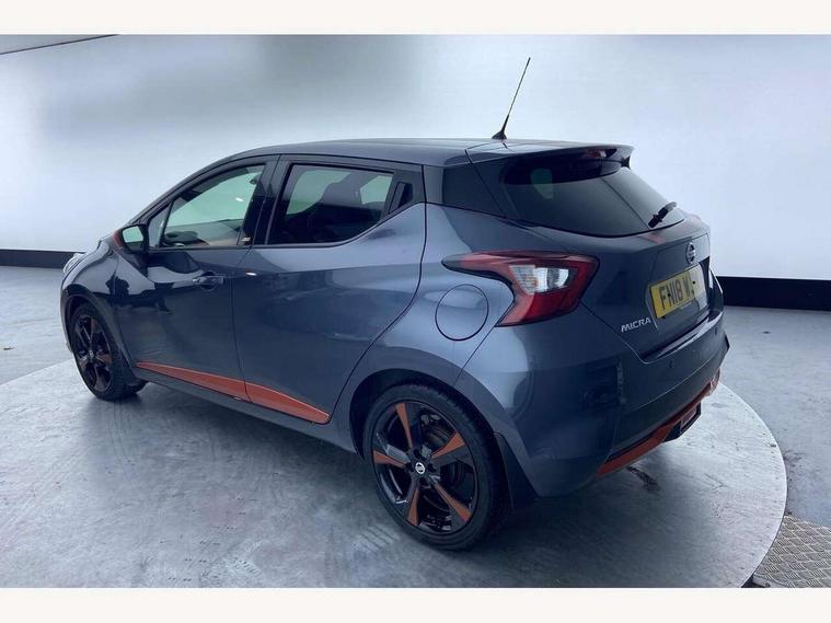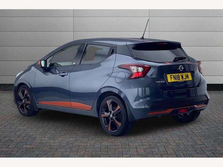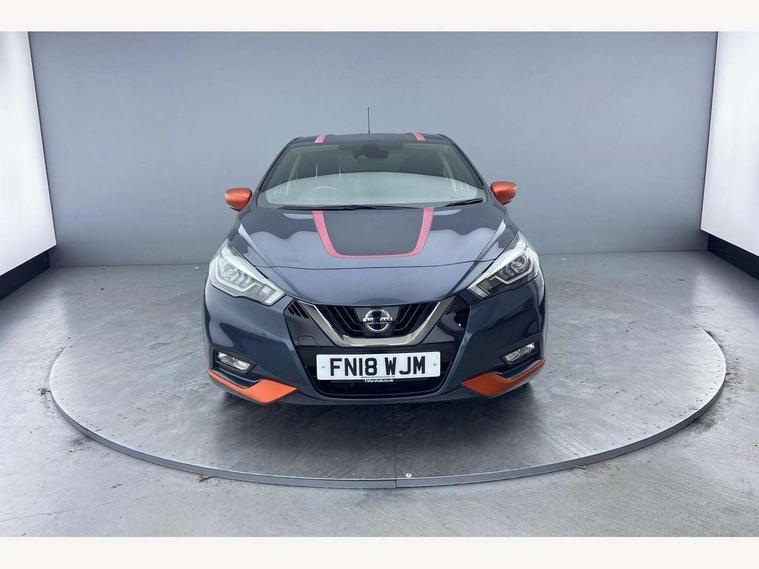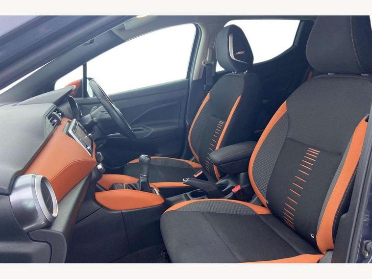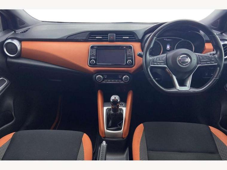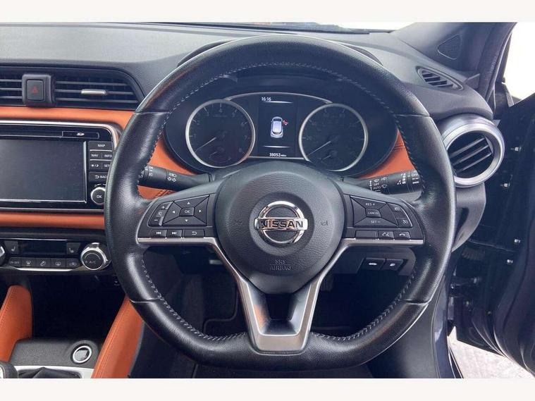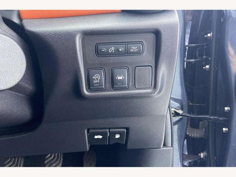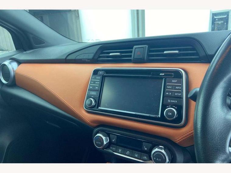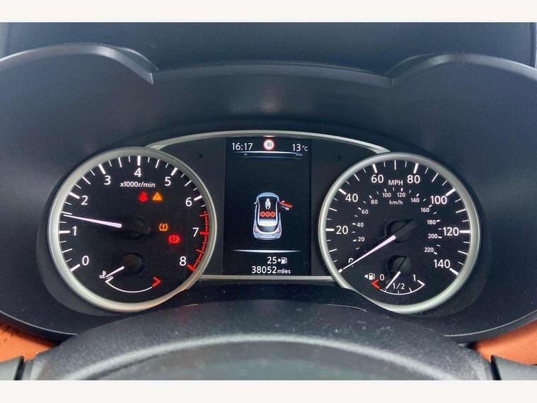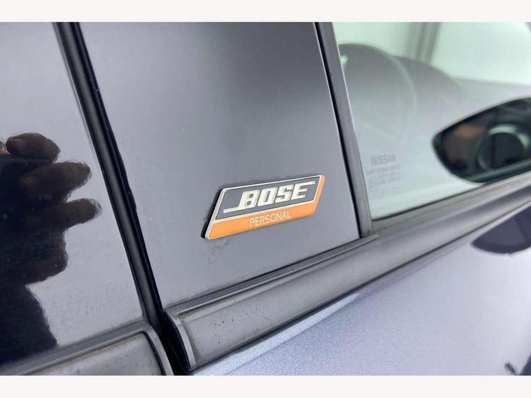 5" TFT driver information centre, Adjustable speed limiter, Bluetooth system, Cruise control, Lane departure warning system, Nissan connect sat nav system, Outside temperature gauge, PAS, Rear parking sensors and rear view camera, Service indicator, Traffic sign recognition, Trip computer, Aux-in socket, BOSE sound system with 6 speakers, DAB Digital radio, MP3 player, Radio/single CD player, Smartphone apps, Steering wheel mounted audio controls, USB/iPod connection, Automatic activation of hazard warning lights, Automatic headlights with dusk sensor, Body colour door handles, Body coloured bumpers, Body coloured door mirrors, Electric folding door mirrors, Electrically adjustable door mirrors, Front fog lights, Heated door mirrors, High beam assist, High mounted stop lamp, LED daytime running lights, LED Headlights, LED indicators in door mirrors, Metallic paint, Power front windows, Privacy glass, Rain sensor windscreen wipers, Rear roof spoiler, Rear wiper, 12V power point front, 3 height adjustable rear headrests, 60/40 split folding rear seat, Automatic air conditioning, Boot compartment cover, Boot light, Chrome interior door handles, Driver's seat manual height adjust, Driver/passenger sunvisors and vanity mirrors, Entry kickplates, Floor mats, Front and rear door pockets with bottle holders, Front armrest, Front console storage box, Front cupholders x 2, Front headrests, Gear shift indicator, Height adjustable front headrests, Height adjustable steering wheel, Interior personalisation cloth upholstery, Isofix front passenger and rear seat preparation, Leather wrapped gear shift knob, Leather wrapped steering wheel, LED ambient lighting, Lumbar support, Map reading lamp, Passenger seat back pocket, Reach adjustable steering wheel, Rear cupholder, Reclining front seats, Satin silver air vents, Synthetic leather door trims, Synthetic leather instrumental panel inserts, ABS+EBD+Brake assist, Crash sensor, Driver/Front Passenger airbags, ESP + ASR traction control + CSV understeer control, Front and rear curtain airbags, Front side airbags, Height adjustable front seatbelts with pre-tensioners and load limiters, Hill start assist, Intelligent emergency braking with pedestrian recognition, Passenger airbag deactivation system, Rear seatbelts with pre-tensioners and load limiters, Seatbelt warning, Tyre pressure monitoring system, Anti-theft immobiliser, Intelligent key with push button ignition, Remote central locking, 17" alloy wheels, Tyre repair kit,