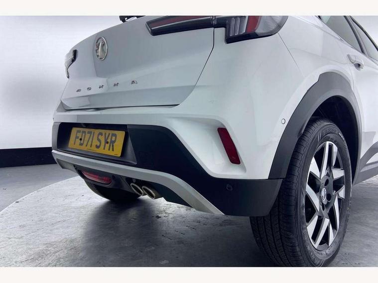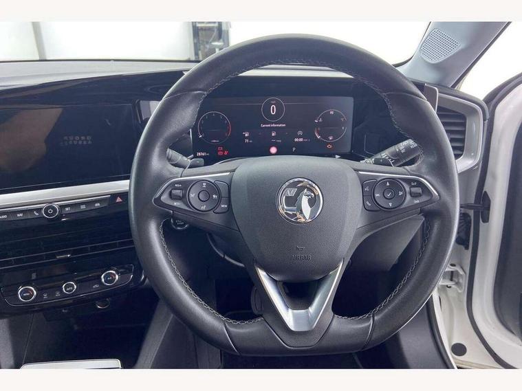 12" digital instrument cluster, Automatic adaptive cruise control, Central facia display with digital clock, outside air temperature and audio information, Driver drowsiness alert system, Engine start/stop button, Front and rear parking distance sensors, Front camera system, Lane keep assist system (LAS) with Lane departure warning system (LDWS), Lane positioning assist, Lights on audible warning, Multi function trip computer, Panoramic rear view camera, Power assisted speed sensitive steering, Side blind spot alert and flank guard, Smartphone integration compatible with Apple CarPlay and Android Auto, Speed sign recognition, Start/stop system, Vauxhall connect with e-Call, 8 speed automatic transmission, Bluetooth A2DP audio streaming, Flexible Roof Mounted Radio Aerial, Front USB connection, Mobile phone portal - bluetooth connect, vehicle microphone, handsfree calls, SMS read out and reply, phone book access, Multimedia Navi pro infotainment with satellite nav, 10" colour touchscreen, 6 speakers, DAB radio, 12" instrument panel, Apple carplay/Android auto, Steering wheel mounted controls, Two rear USB sockets, Adaptive brake lights, Automatic lighting control with tunnel detection, Automatically dimming anti dazzle rear view mirror, Black door mirror housings, Black rear spoiler, Body colour door handles, Body colour front and rear bumpers, Chrome effect skid plates, Chrome effect upper window moulding, Electrically adjustable, heated and folding door mirrors, Electrically operated front and rear windows with safety auto reverse and one touch up/down facility, Hazard warning lights, Heated rear window+rear wash/wipe, High beam assist, LED daytime running lights, LED front fog lamps, LED side repeat indicators, LED tail lights, Manual headlamp level control, Rear foglight, Rear side wing doors, Reversing light, Solar heat absorbing windows, Solar heat absorbing windscreen and windows, Two speed rain-sensitive windscreen wipers with variable intermittent wipe, Windscreen and side window demist vents, 12V Accessory socket, 3 seat bench in 2nd row, 3 spoke flat bottomed leather steering wheel with satin chrome bezel, 4 speed fan with illuminated controls, 6 way manual adjustable driver fore/aft, up/down with reclining seatback, 6 way manual adjustable front passenger fore/aft, up/down with reclining seatback, Air recirculation system, Cabin particulate filter - removes dust, airborne particles and pollen, Centre console with two cup holders at front and one in rear, Chrome effect interior door handles, Door pockets with two litre capacity, Driver and passenger sun visors with vanity mirror, Electronic climate control (ECC), Fabric/Leather effect upholstery, Four adjustable facia vents, Four load restraint lashing eyes, Front centre armrest with storage, Front map reading lights, Front seat back storage pockets, Fully carpeted load area, Heated front seats, Heated steering wheel, Height adjustable front/rear head restraints, Illuminated load area, Interior courtesy light, Interior tailgate handle, Luggage compartment cover, Luggage compartment lighting, Reach + rake adjustable steering column, Single front passenger seat, Twin gas assisted tailgate struts, 2x Isofix child seat fitting on outer rear seats, 3x3 point rear seat belts, Anti-lock braking system (ABS), Automatic emergency city braking, Child proof locks on rear doors, Cornering brake control, Deactivation switch for front passenger front and side impact airbags, Drag torque control, Driver and front passenger airbags, front seat side impact airbags, full size curtain airbags, Electronic brake force distribution, Electronic Stability Programme (ESP), Emergency brake assist, Forward collision alert at all speed, Hill start assist, Inertia reel lap and diagonal seatbelts for all seats, Seatbelt unfastened audible warning and warning light, Straight line stability control, Traction control, Tyre pressure monitoring system, Electronically protected audio equipment, Freewheeling door locks, Immobiliser, Key left in ignition audible warning, Keyless entry and start, Locking wheel nuts, Remote control central locking, Remote control ultrasonic security alarm system, Visible vehicle identification number, Atlantis black trim inserts of front doors, Black facia with silver trim insert, Instrument panel bar in Light Gravel, 17" bi colour alloy wheels,