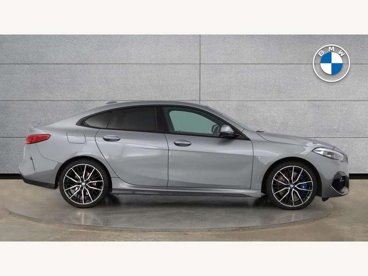 Active guard plus, Attentiveness assist, Auto start-stop, BMW ConnectedDrive online services, BMW Intelligent Personal Assistant, BMW Live Cockpit Professional with 10.25" high resolution instrument and control display, BMW Online services, BMW operating system with 7.0 mid interface, BMW Teleservices, Check Control warning system for monitoring of lights and door/luggage compartment open warning, Cruise control with braking function, iDrive controller with 7 short cut favourite buttons on centre console, Integrated navigation data with map data via USB +features such as 3D landmarks and micro city models, Integrated owners handbook, Intelligent voice assistant, Lane departure warning system, M Sports steering, On board computer - average speed+fuel consumption, service interval, clock/date, odometer/trip meter, outside temperature display and ice warning, Optimum shift indicator, Personal Profile, Pull away assistant, Speed limiting function, Aluminium lightweight construction, Balancer shaft, Double VANOS, Drive performance control with ECO PRO comfort + sport mode, Dual clutch automatic transmission, Electronic differential lock, High precision injection, M Sport suspension with stiffer spring/damper set-up and vehicle lowered by 10mm + twin tube gasfilled shock absorbers and Anti roll bars, Performance Control, Petrol Particulate Filter, VALVETRONIC engine management, 2x USB Type C ports (for charging and data transfer), 4G LTE Connectivity with hard wied 4G network sim card, DAB digital radio, MP3 players and RDS double tuner, Auto wipers, Automatically dimming rear view mirror, Body colour door handles, Body colour mirror caps, Chrome 'M' logo side designation, Chrome exhaust single tailpipe, round, Direction indicator side lights integrated exterior mirrors, Electric windows - front and rear, with open/close fingertip control and trap release, Exterior mirrors - electrically folding with anti-dazzle, Fading support, Follow me home headlights, Front and rear bumper system with replaceable deformation elements, Front door sill finishers in black plastic with M designation in metallic look, Heated, electrically adjustable exterior mirror aspheric on driver side, convex on passenger side, High gloss black B pillar finish, High gloss shadow line exterior trim, High level third brake light, LED daytime running lights, LED front fog lights, Lightweight engineering, Model designation on right side of tailgate, Preparation for high beam assistant, Rain sensor with automatic headlight activation, Rear boot, Rear fog lights, Rear side wing doors, Reversing light in rear light cluster, Welcome lighting, 12V power socket in centre console, 2 cupholders in front centre console, 3 rear seat head restraints, 3 rear seats, 3 spoke M sports design leather steering wheel finished in nappa leather with specific M badge, Anthracite finished floor mats with contrasting surround, Anthracite headlining, Automatic two zone climate control air conditioning, Child seat ISOFIX attachment for two outer rear seats and front passenger seat with anchorage points, Conditioned based service, Driver and front passenger seat heating, Front and rear door pockets including bottle trays, Front and rear side armrests integrated into door trim, Front armrest foldable with integrated storage compartment, Front centre interior light over interior mirror and rear centre automatic interior light when door is opened/ignition switched off or via remote key, Front head restraints, Front passenger seat, Front sports seats with electric side bolster adjustment, Glove compartment, Luggage compartment lighting, Manually adjustment steering wheel column, Multi-function controls for steering wheel, Sun visors with vanity mirrors and insert tab, Through loading system with 40/20/40 split folding rear seat, Two lashing eyes, Additional interior lighting pack - 2 Series Gran Coupe, Connected pack professional - 2 Series Gran Coupe, Extended storage pack - 2 Series Gran Coupe, M Sport exterior styling aerodynamics pack - 2 Series Gran Coupe, 2 tone horn, Airbag - Front driver and passenger, front and rear head, front side, curtain head protection, manual deactivation of front passenger airbag possible, Anti lock braking system (ABS) with cornering brake control, BMW emergency call, Brake drying, Braking readiness, City braking function, Crash sensor activating of airbags, Unlocking doors, hazard warning lights, interior light, safety battery terminal, Dynamic stability control + (DSC+), Dynamic Traction Control - DTC, Electrically operated hand brake, Rear brake discs, Rear child proof door locks, Seat belt security check for driver and front passenger, Seatbelt warning, Side impact protection, Three point seat belts on all seats including front belt stopper, pyrotechnic belt tensioners and belt force limiters, Trailer stability control, Tyre pressure monitoring system, Ventilated front disc brakes, Warning triangle and first aid kit, Central locking switch for all doors, fuel filler cap and luggage compartment, Deadlocking function system to all doors, Drive away locking system on all doors and luggage compartment, Locking wheel bolts, Start/Stop button (illuminated) in centre console with keyless engine start and Auto Start-Stop deactivation button, Thatcham Cat.1 alarm and immobiliser, Two remote control key with integrated key - open/close doors/fuel flap/tailgate +1 button for unlock compartment with M design high gloss black inlay, Contrast stitching on instrument panel, 18" Burnished M double spoke bi-colour alloy wheels finished in orbit grey - style 819M, Reduced rolling resistance tyres,