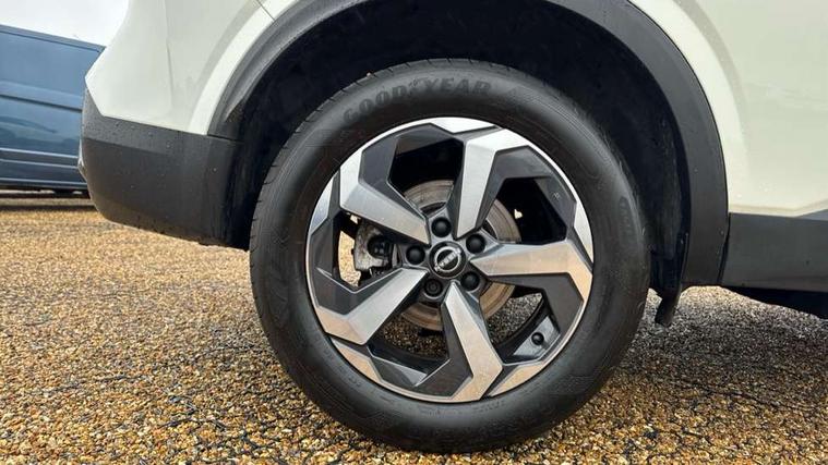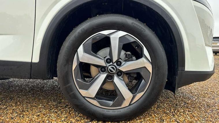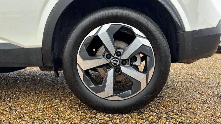 Android auto/Apple CarPlay (Wired), Blind spot warning, Drive modes (sport, normal, eco), Electric speed sensitive power steering, Emergency and breakdown call, Full Digital 12.3" TFT Digital Combimeter, Google maps services - search, weather, 3D maps and Google street view, Idle stop/start system, Intelligent around view monitor, Intelligent Cruise control (ICC), Intelligent driver alert system, Intelligent forward collision warning, Intelligent lane intervention, Lane departure prevention, Lane departure warning system, Maximum speed limiter, Moving object detection, Nissan connect 12.3 inch touchscreen infotainment system, Nissan connect navigation, Push button starter, Rear cross traffic alert, Rear parking sensors, Rear view camera, Remote control services - door locks, lights, horn and car locator, Telematics - notifications and connectivity services, TomTom live traffic services, Traffic sign recognition with legal speed adjustment, Trip computer, Virtual personal assistant and firmware over the air capability, Wireless apple carplay, 6 speakers, AM/FM audio system with DAB, Bluetooth audio streaming, Front USB connections (Type-A and Type-C), Rear USB charging only ports (Type-A and Type-C), Auto dimming rear view mirror, Auto rear wiper when reversing, Automatic hazard signal with emergency stop signal, Body colour mirror caps, Body coloured door handles, Bodyside mouldings, Chrome side window finisher, Door handle with button, Electric auto folding door mirrors, Electrically adjustable and heated door mirrors with LED turn indicator, Follow me home headlights, High beam assist, Intelligent auto headlights, LED daytime running lights, LED Headlights, LED rear lights, One touch front and rear electric windows with remote opening and closing, Partially body coloured bumpers, Privacy glass, Rear bumper with graphite insert, Rear reversing light (bulb lighting), Rear roof spoiler, Rear side wing doors, Rear styling plate, Shark fin antenna, Splash free rain sensing wipers, Super UV and infrared cut glass, Three blink turn signal, 12v power socket in dashboard and luggage, 2x Rear coat hooks, 3 bench rear seats in 2nd row, 3 rear headrests, 4 folding assist grip, 6 Luggage hooks - 4 on floor, 2 on side, 6-way manually adjustable driver's seat, 60/40 split folding rear seat bench, Ambient lighting around centre console, Centre console storage tray, Chrome interior door handles, Cloth monoform upholstery, Driver and front passenger sunvisors with illuminated vanity mirrors, Driver seat back pocket, Dual zone automatic climate control with pollen filter, Electrically adjustable lumbar support for driver, Front and rear door storage, Front centre console and armrest, Front cupholders x 2, Front door with bottle holders, Glovebox with light, Hard trunk cover, Height adjustable driver's seat, Height adjustable front headrests, Height adjustable passenger seat, Leather steering wheel, Luggage board system, Luggage space lighting, Manually adjustable passenger (slide recline + lifter), Multifunction steering wheel, Passenger seat back pocket, Rear armrest with 2 cupholders, Rear door bottle holders, Single front passenger seat, Soft PVC kneepad, Steering wheel gearshift paddles, Steering wheel switches, Sunglasses holder, Tilt/telescopic adjustable steering wheel, Two rear isofix child seat anchorage points with top tether, Welcome light and console tray ambient lighting, 3x3 point rear seatbelt pretensioners + load limiters, ABS with EBD and brake assist, Active brake limited slip, Auto hold function, Child locks on rear doors, Curtain and front side, far side airbags, Driver and passenger airbags, Driver, passenger and 2nd row rear seat belt reminder, Electronic parking brake, Front seatbelt pretensioners + load limiters, Height adjustable front seatbelts, Hill start assist, Intelligent blind spot intervention, Intelligent front emergency braking with pedestrian, cyclist recognition and junction assist, Intelligent rear automatic braking, Tyre pressure monitoring system, Vehicle dynamic control, Capless fuel filler, Engine immobiliser, Intelligent Key, Remote central door locking with deadlocking, Thatcham Cat.1 alarm, Interior instrumental panel B finisher, 18" Diamond cut alloy wheels, Tyre puncture repair kit,