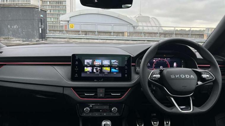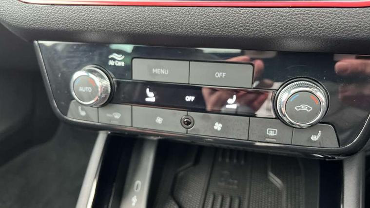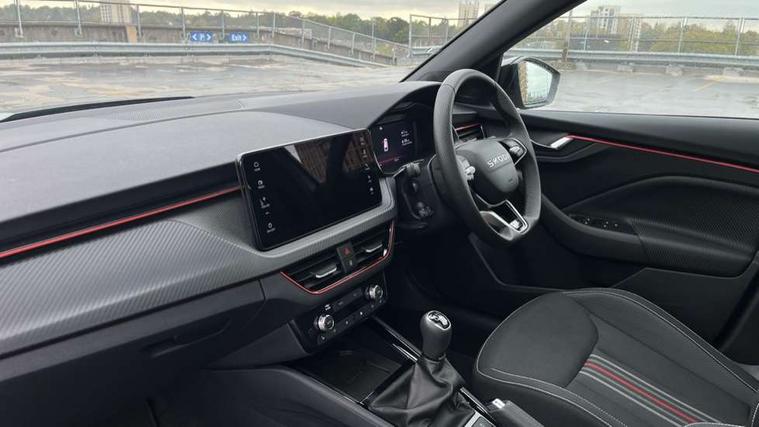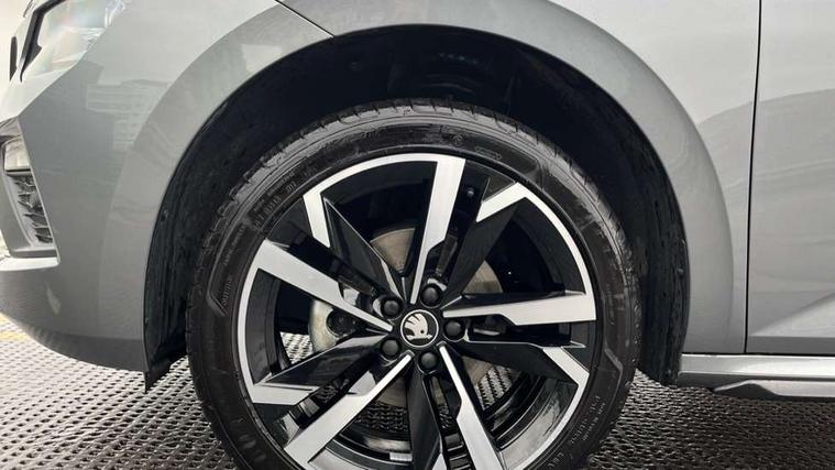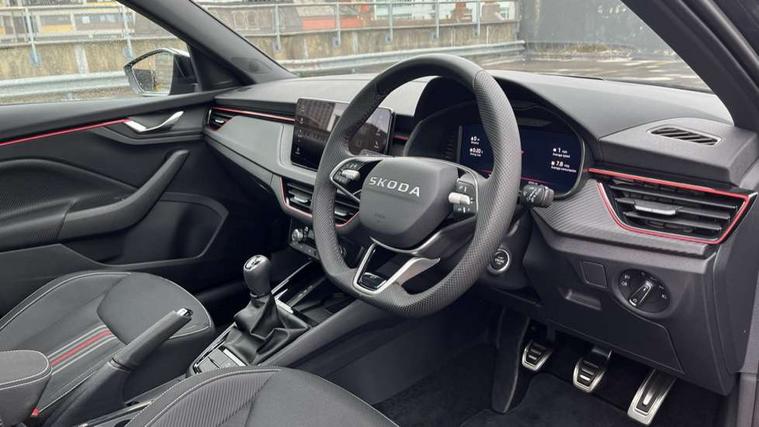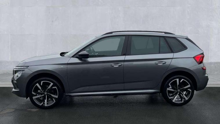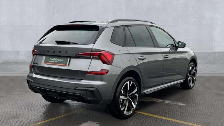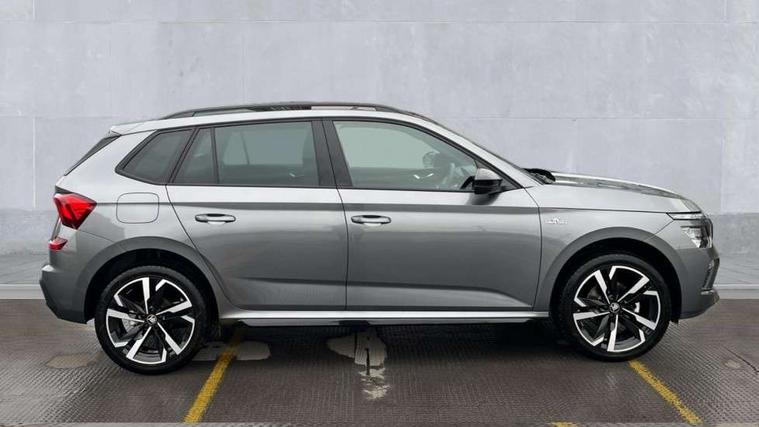 Advanced driver attention and drowsiness monitor, Bluetooth system, E-call, Front assist system, PAS, Rear parking sensors, Rear view camera, Service indicator, Speed limiter, Traffic sign recognition, Virtual cockpit with 10.25" display, Voice control system, Wireless smartlink, 4 USB C ports, 8 Speakers, 9.2" Skoda navigation display, DAB Digital radio, Auto dimming rear view mirror, Automatic headlight control with coming home and leaving home feature, Black door mirrors, Black radiator grille, Black rear diffuser, Black roof spoiler, Body colour bumpers, Body colour door handles, Boot lettering in black, Extended tailgate glass, Fixed panoramic sunroof with black roof rails, Front and rear electric windows, Heated rear window, LED daytime running lights, LED high beam, LED low beam, LED third brake light, Light sensors, Monte carlo plaque, Privacy glass, Rear side wing doors, Rear wiper, Ticket holder inside windscreen, 12V socket in luggage compartment, 3 seat bench in 2nd row, Aluminium pedals, Ambient lighting in white/red, Art leather carbon decor inserts, Art leather carbon door inserts, Black roof lining, Cargo elements, Chrome inner door handles, Driver and passenger sun visors with vanity mirror, Dual zone climate control, Front and rear roof lights, Front centre armrest, Front head restraints, Glove compartment with illumination, Height adjustable driver seat, Height adjustable front passenger seat, Ice scraper, Inner circulation control with pollen filter, ISOFIX on front passenger seat, Isofix preparation for back seats, Leather gearknob and handbrake lever, Manual lumbar support for front seats, Monte Carlo cloth upholstery, Net package and top tether hooks in boot space, Net under rear shelf, Pocket on the back of both front seats include mobile phone pockets, Rake/reach adjustable steering wheel, Reading lights, Rear centre armrests, Red hotstamping, Single front passenger seat, Sports seats, Textile floor mats, Third rear headrest, Top tether for front passenger seat, Umbrella in driver's door, Light and view plus package - Kamiq, 3x3 point rear seatbelts, Airbags - driver and front passenger, Disc brakes, ESP, Extended and predictive pedestrian/cyclist protection, Front passenger airbag deactivation switch, Front side airbags with curtain airbags, Hill hold control, Manual leather parking brake, Manual rear child locks, One tone horn, Seatbelt reminder for driver an co-driver, Traction control, Tyre pressure monitor, Anti-theft alarm system with interior monitoring, backup horn, towing protection and remote central locking with SAFE system, Anti-theft wheel bolts, Electronic engine immobilizer, 18" Ursa black diamond cut alloy wheels,