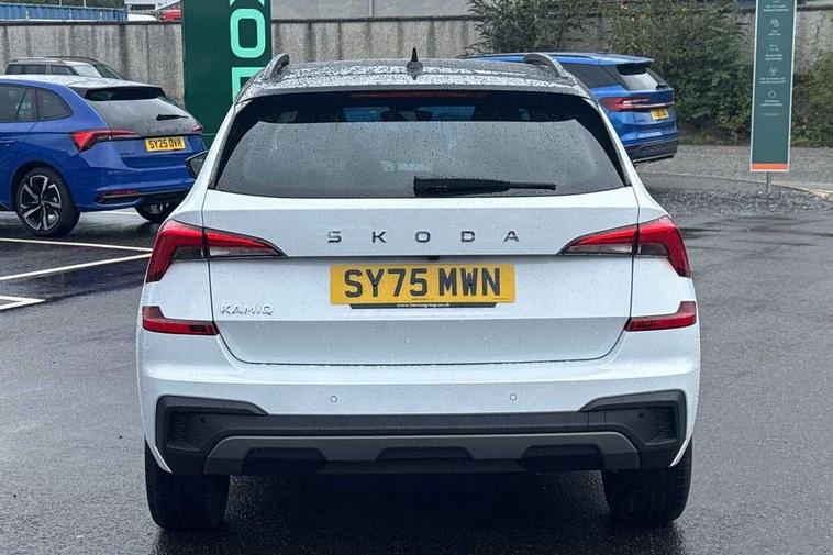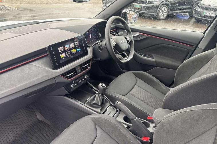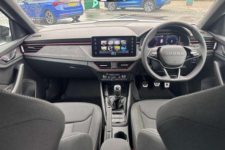Advanced driver attention and drowsiness monitor, Bluetooth system, E-call, Front assist system, PAS, Rear parking sensors, Rear view camera, Service indicator, Speed limiter, Traffic sign recognition, Virtual cockpit with 10.25" display, Wireless smartlink, 4 USB C ports, 8 Speakers, 9.2" Skoda navigation display, DAB Digital radio, Auto dimming rear view mirror, Automatic headlight control with coming home and leaving home feature, Black door mirrors, Black roof, Black roof rails, Body colour bumpers, Body colour door handles, Chrome grille surround, Front and rear electric windows, Full LED headlights, Heated rear window, LED brake lights, LED daytime running lights, LED front turning lights, LED high beam, LED low beam, LED third brake light, Privacy glass, Rear LED fog light, Rear side wing doors, Rear wiper, Ticket holder inside windscreen, 12V socket in luggage compartment, 3 seat bench in 2nd row, 3 spoke leather sports multi-function steering wheel, Aluminium pedals, Ambient lighting in white/red, Black roof lining, Black suedia decor inserts, Black suedia door inserts, Cargo elements, Chrome inner door handles, Driver and passenger sun visors with vanity mirror, Dual zone climate control, Dynamic cloth upholstery, Front and rear roof lights, Front centre armrest, Front head restraints, Glove compartment with illumination, Height adjustable driver seat, Height adjustable front passenger seat, Ice scraper, Inner circulation control with pollen filter, ISOFIX on front passenger seat, Isofix preparation for back seats, Leather gearknob and handbrake lever, Manual lumbar support for front seats, Net package and top tether hooks in boot space, Net under rear shelf, Overhead glasses storage compartment, Pocket on the back of both front seats include mobile phone pockets, Rake/reach adjustable steering wheel, Reading lights, Rear centre armrests, Red hotstamping, Single front passenger seat, Sports seats, Textile floor mats, Third rear headrest, Top tether for front passenger seat, Umbrella in driver's door, 3x3 point rear seatbelts, Airbags - driver and front passenger, Disc brakes, ESP, Extended and predictive pedestrian/cyclist protection, Front passenger airbag deactivation switch, Front side airbags with curtain airbags, Hill hold control, Manual leather parking brake, Manual rear child locks, One tone horn, Seatbelt reminder for driver an co-driver, Traction control, Tyre pressure monitor, Anti-theft alarm system with interior monitoring, backup horn, towing protection and remote central locking with SAFE system, Anti-theft wheel bolts, Electronic engine immobilizer,