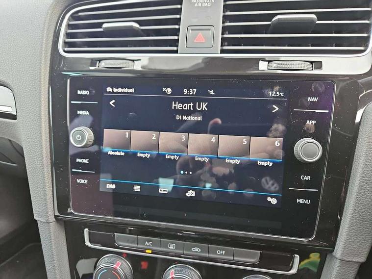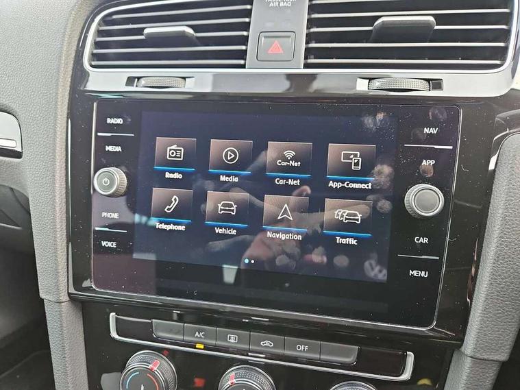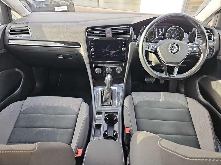 'Lights On' Reminder warning buzzer, Adaptive Cruise Control with pedestrian detection and speed limiter, Bluetooth hands free telephone connection, Brake pad wear indicator warning light, Drive mode selector, Driver alert system, Driver profile selection, Exterior temperature gauge, Instrument cluster in white, Multifunction computer, PAS - speed related, Rev counter, Stop/start system, Tailgate, Trip and service interval display, Ultrasonic front and rear optical and audible parking sensors, Warning buzzer and light for front seatbelts unfastened, Battery regeneration during braking, Lowered sports suspension, XDS electronic differential lock, Composition media system, DAB Digital radio, MDI multi device interface, MP3/WMA compatability, Premium USB cable in choice of either Apple or Android smartphone compatibility, SD card slot, SMS Functionality, Title and cover art display, 4 X 20W output, USB connection and socket, Black front air intake and radiator grille with chrome insert, Black rear diffuser, Body colour bumpers, Body colour door handles, Body colour door mirrors with integrated indicators, Dusk sensor + auto driving lights, Electric front windows, Electric rear windows, Electrically adjustable and heated door mirrors, Front intermittent wipe with 4 position delay, Fully galvanised body, Heated rear windscreen, High level 3rd brake light incorporating LED Technology, LED daytime running lights, LED front fog lights with static cornering light function, LED rear lights, LED rear number plate lights, Rear roof spoiler, Rear tinted glass from B-pillar backwards approx 65% tinted, Rear window aerial, Rear windscreen washer and wiper with interval delay, Reflectors in all doors, Silver roof rails, 12V socket in luggage compartment, 3 rear headrests, 3 spoke steering wheel, 60/40 split folding rear seat, Bag hook in luggage compartment, Boot lashing points, Chrome-plated electric window button surround, Cooled glovebox, Courtesy light delay, Cover for storage compartment in centre, Dust/pollen filter, Front + rear carpet mats, Front centre armrest with storage box and rear air vents, Front passenger seat height adjust, Front seat back storage pockets, Grab handles front x 2, rear x 2 with integrated coat hooks, Height/reach adjust steering wheel, Illuminated vanity mirrors, Isofix preparation for 2 rear child seats, Load through provision with rear centre armrest and cupholders x2, Luggage compartment cover, Luggage compartment lighting, Multifunction leather steering wheel with leather trimmed gear knob including paddle shift, Overhead storage box, Pearl grey headlining, Storage box in luggage compartment, Storage compartments in doors, Sun visors, Variable boot floor, height adjustable and removable, Ambient lighting pack - Golf, Convenience Pack - Golf, Mirror pack - Golf, 3 point height adj front seatbelts + pretensioners, 3 rear 3 point seatbelts, Anti-lock Braking System (ABS) with Hydraulic Brake Assist (HBA), Automatic post collision braking, Child locks on rear doors, Driver/Front Passenger airbags, Driver/Passenger whiplash optimised head restraints, Drivers knee airbag, Electronic parking brake with auto hold, ESP with EDL + ASR, Front and rear curtain airbags, Front assist including city emergency braking, Front passenger airbag deactivation, Front seat side impact airbags, Front ventilated disc brakes and rear disc brakes, Pre crash preventive occupant protection, Tyre pressure monitor, Volkswagen roadside assistance, Alarm with interior protection and deactivation via infotainment system, Electronic engine immobiliser, Remote central locking with 2 remote folding keys, Chrome air vent surrounds, Chrome-plated light switch surround, Piano black centre console, Tumbler decorative inserts, Steel space saver spare wheel,