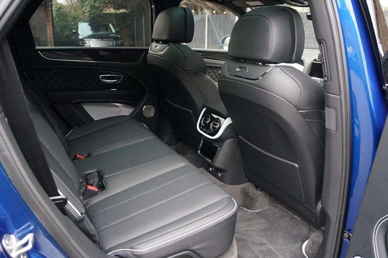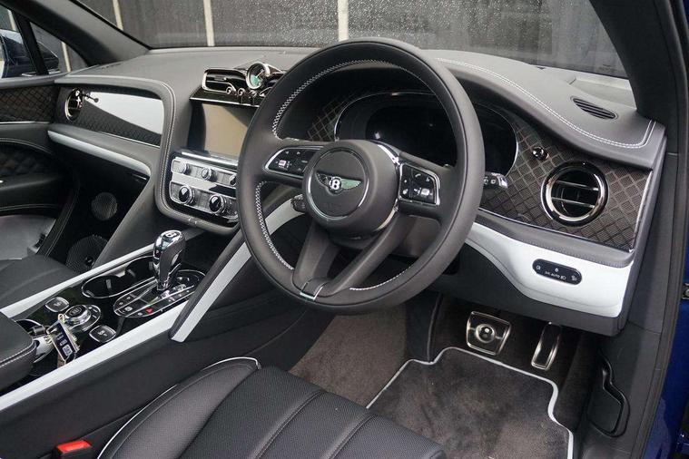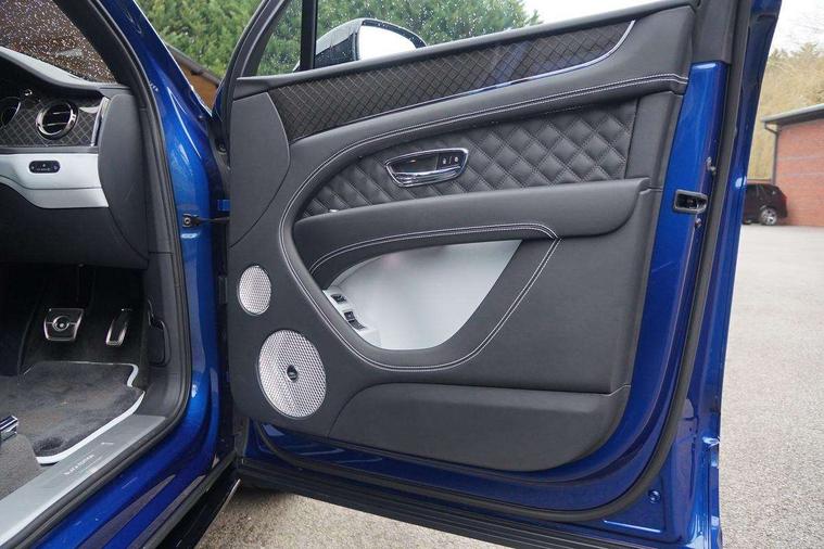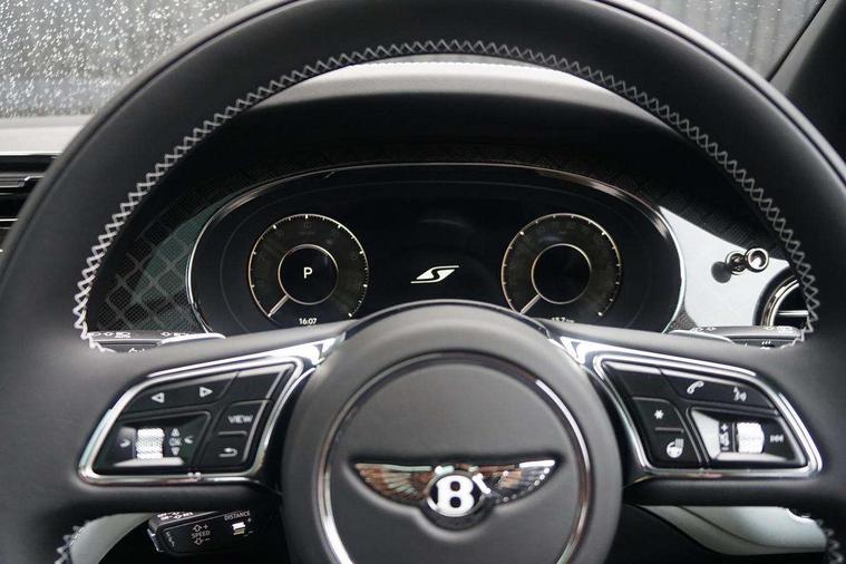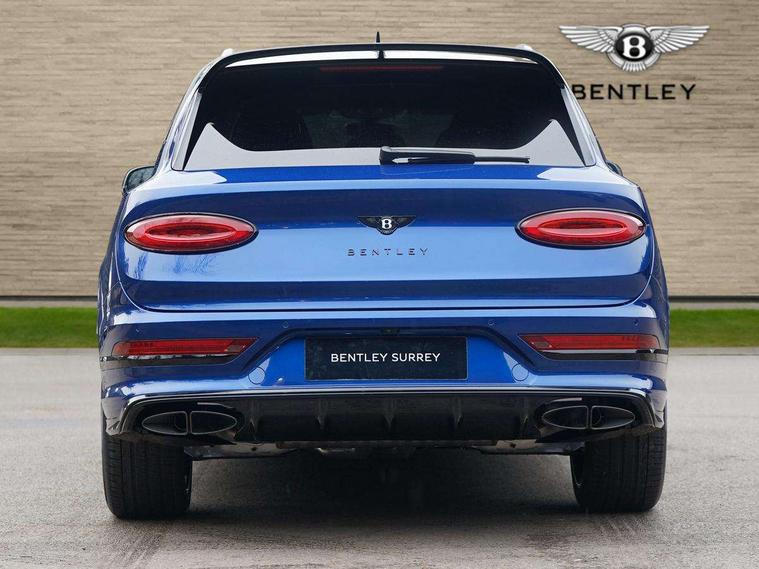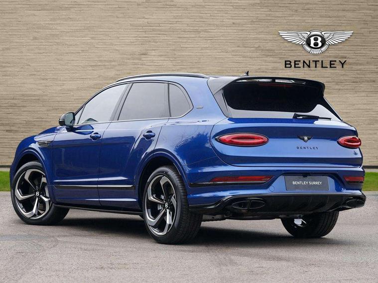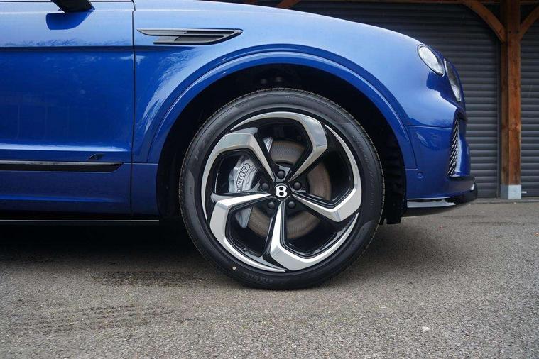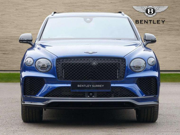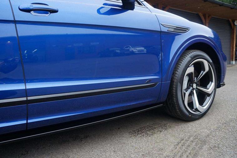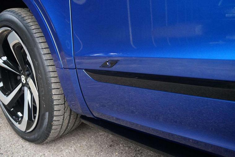 10.9" touch screen high resolution and configurable infotainment display and digital drivers information display, Advanced navigation function with text, search, 3D, satellite maps, speed limit, dynamic traffic route guide, telephone, Text-speech + voice, Bentley branded clock, Bentley GPS tracking system full fitment, Bentley safeguard, Blind spot assist, Bluetooth and WIFI enabled, Emergency services call system, Four drive dynamics modes (bentley, comfort, enhanced sport, custom), Front/rear park distance control, Hands free power tailgate, MMI Screen, My Bentley connected car services, Power latching to all doors for easy entry, Redesigned instrument panel lower trim rolls, incorporating a storage compartment on the passenger side, Seamlessly integrated technology with wireless apple car play and android auto, Speed sensitive variable ratio electric power steering, Sports driver information panel, Sports kombi graphics, Touch screen remote, Traffic jam assist, Voice control system, Wireless phone charging compartment, Air suspension with continuous damping control, Bentley Dynamic ride with electronic all wheel steer, Permanent all wheel drive with centre torsen differential, DAB Digital radio, 3rd brake light, Adaptive low beam, Auto dimming rear view mirror, Automatic headlights, Bentley badge in tailgate opening switch, Black door mirrors, Black painted shark fin aerial, Black speed style front and rear bumper, Body coloured front lower bumper apron panel, Body coloured lower bodywork - Standard paint range, Bumper design with large side intakes and sculptured surfaces, Clamshell rear tailgate design with Bentley lettering under the wings, Dark tinted front & rear lamps, Elec/heat/adj/fold door mirror+memory, Electric tilt/slide panoramic sunroof, Exterior S badge, Fender design reduces over bodied perception, Fixed rear spoiler, Front and rear fog lamps, Full LED supplementary lamps and tail lamps, Full matrix LED headlamps with high beam assist, Full width clamshell design and deeply contoured rear tailgate panel, Heated rear windscreen, Illuminated treadplates, Large dominant B shaped side wing vent front position, LED daytime running lights, Long fender vent above the power line on body side, Lower door side mouldings, Number plate aperture position under rear bumper, Oval split tailpipe, Phone antenna amplifier, Rain sensing wipers, Rear side wing doors, Rear wiper, S fascia badge, Sports exhaust, Trailer sway mitigation, Tunnel detection for auto light control, V8 exterior badge, Wet arm wipers and heated water jets, 12V power in rear centre console, 12V socket in glovebox, 12V socket in luggage compartment, 3 seat bench in 2nd row, 4-Zone HVAC, Air Ioniser, Electric tilt and reach adjustment steering column with memory and easy entry function, Electronic accessory preparation, Embroidered Bentley emblems, Foams and cover design on all seats, Folding luggage compartment cover, Front and rear cupholders, Indented steering wheel, Isofix attachments on rear seats, Key box, Load through facility, Lockable cooled glovebox, Luggage rails, Rear seat climate control, Single front passenger seat, Stowage with instrument panel, doors (front and rear), armrests and console, Twin front armrests, Two metal bulls eye vents with organ stops and redesigned centre vents, Two type C USB ports front and rear, Unique S fluted seat colour combination with dinamica inserts, Veneered/carbon fibre centre fascia panel, Wing pockets for small items, Blackline Specification Pack - Bentayga, 3 rear seatbelts, ABS/EBD, Child safety lock, EDL, Electronic park brake with move-off assist, Electronic tyre pressure monitoring, ESP + MSR + ASR, Exit warning, Front and rear head airbags, Front and rear thorax airbag system, Front passenger airbag deactivation, Front seatbelt pretensioners with force limiters, Hill descent function, Hydraulic Brake Assist (HBA), Rear outer seatbelt pretensioners with force limiters, Rollover mitigation, Side airbags, Traction control, Immobiliser, Keyless entry, Keyless ignition, Preparation for vehicle tracking, Remote central locking, Volumetric anti theft alarm, 22" Summer tyres,