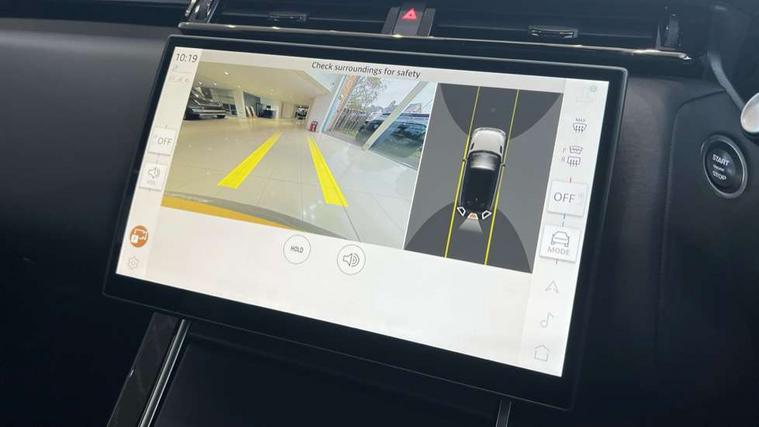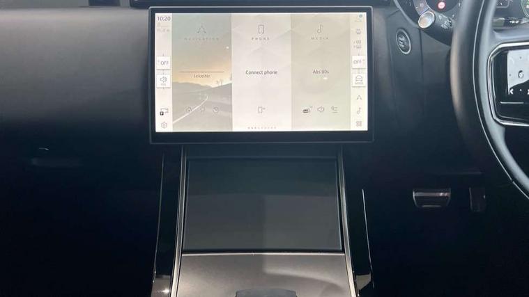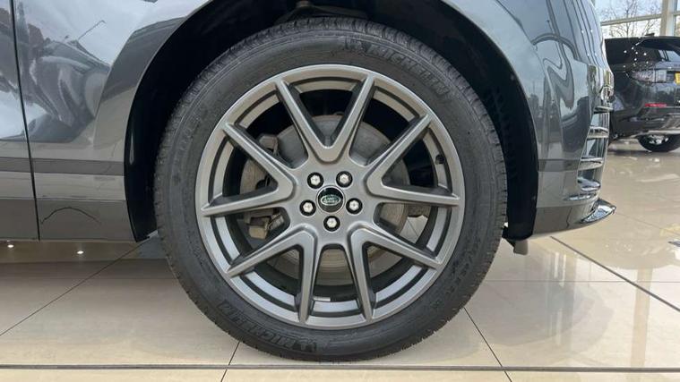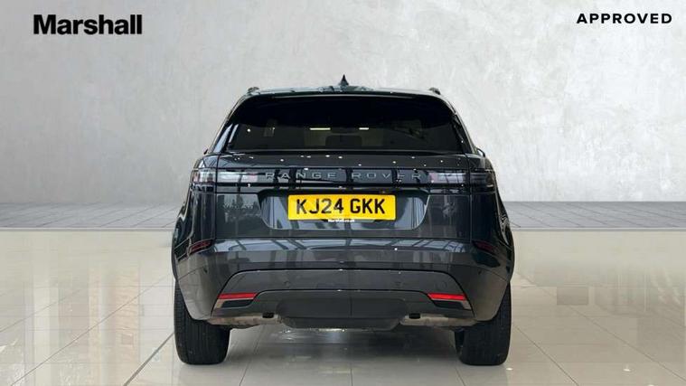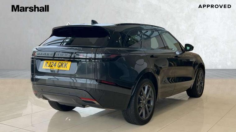 Adaptive cruise control with steering assist, Android Auto, Apple CarPlay, Blind spot assist, Bluetooth connectivity, Brake pad wear indicator warning light, Driver condition monitor, eCall emergency call system, Front and rear parking aid, InControl remote, Land Rover InControl apps, Lane keep assist, Pivi pro with connected navigation, Rear collision monitor, Rear traffic monitor, Service indicator, Speed proportional electronic power assisted steering (EPAS), Traffic sign recognition with adaptive speed limiter, Trip computer, Voice control system, Wireless device charging, 7kw on board charger, 8 speed automatic transmission, AC/DC charging, Adaptive dynamics, All terrain progress control, Coil suspension system, Home charging cable, Open differential with torque vectoring by braking, Public charging cable, Single speed transfer box, DAB radio, Steering wheel mounted controls, 3rd brake light, Acoustic laminated windscreen, Auto dimming interior rear view mirror, Automatic headlamp levelling, Automatic headlights, Body coloured bumpers, Boot protection plate, Electric windows with one touch open/close and anti trap, Flush deployable exterior door handles, Follow me home headlights, Heated rear window with timer, Heated washer jets, Heated windscreen, Metal front tread plates, Metal load space scuff plates, Pixel LED headlights with signature DRL, Power fold, auto-dimming, heated door mirrors with memory and approach lights, Rain sensor windscreen wipers, Rear animated directional indicators, Rear fog lights, Rear side wing doors, Rear wash/wipe, Tailgate/boot lid spoiler, Trailer stability assist, Velar badge, 3 seat bench in 2nd row, Ambient lighting, Bright metal pedals, Carpet mats, Driver/passenger sunvisors with illuminated vanity mirrors, Ebony morzine headlining, Electrically adjustable steering column, Extended leather upgrade, Heated steering wheel, Isofix system on outer rear seats, Loadspace cover, Overhead lighting console, Overhead stowage for sunglasses, Passive front headrests, Rear air vents, Rear centre headrest, Single front passenger seat, Twin front cupholders, Twin sliding front centre armrest, Online pack with data plan - Velar, Power socket pack 2 - Velar, 380mm front brakes and 325mm rear brakes, 3x3 point rear seatbelts, Anti-lock braking system (ABS), Cornering brake control, Curtain airbags, Customer configurable autolock, Door side intrusion beams, Driver airbag, DSC - Dynamic Stability Control, Electronic brake force distribution, Electronic parking brake, Electronic traction control, Emergency braking, Front and rear seatbelt reminder, Hill descent control, Hill launch assist, Low traction launch, Passenger airbag, Power operated child locks, Rear airbags, Roll stability control, Side airbags, Tyre pressure monitoring system (TPMS), Unpainted brake calipers, Global lock and unlock switch on driver door, Immobiliser, Intrusion sensor, Keyless entry, Lock only switch on front passenger door, Locking wheel nuts, Perimetric alarm, Remote central locking, All season tyres,