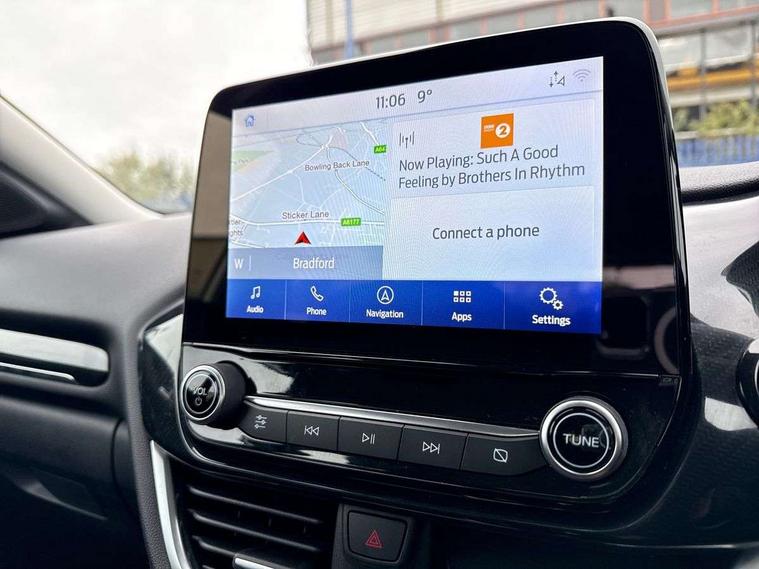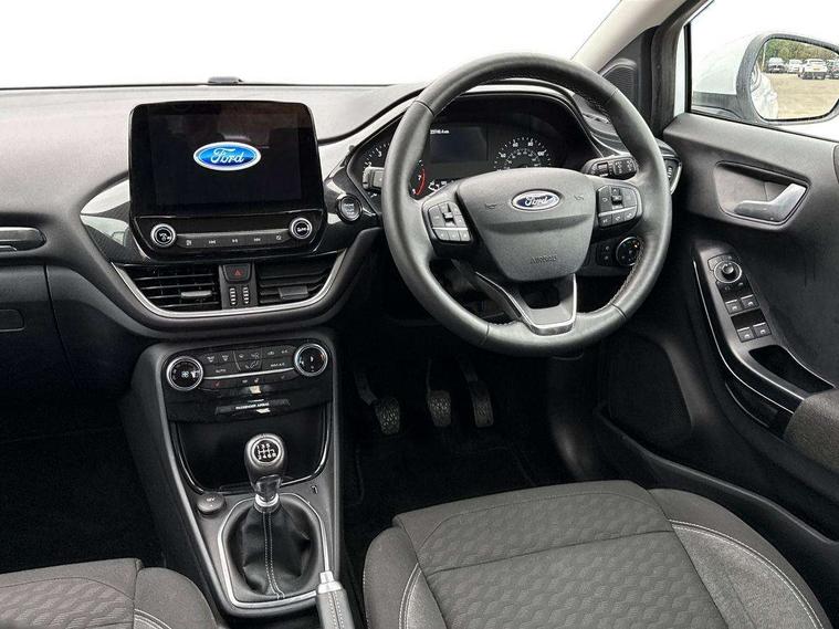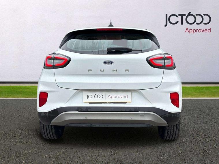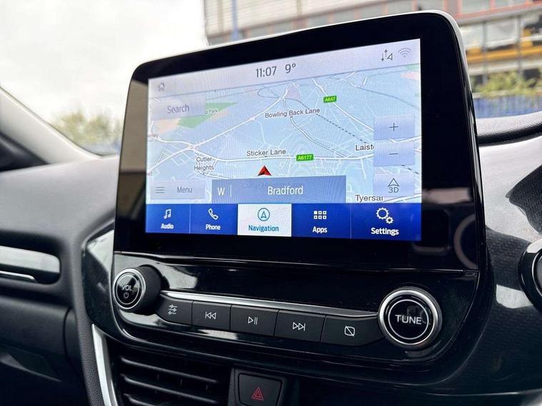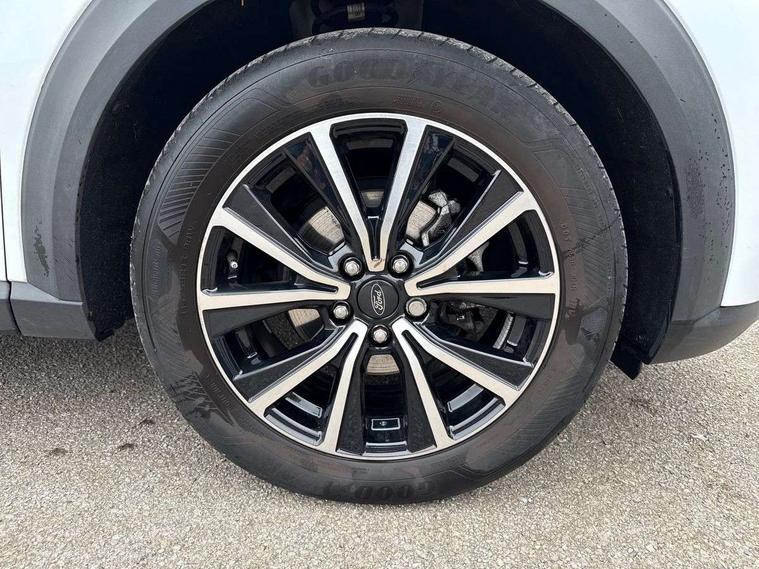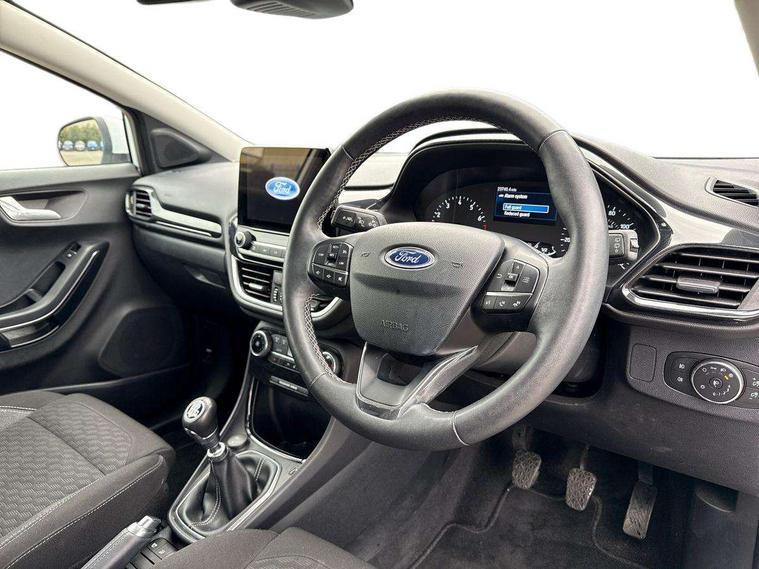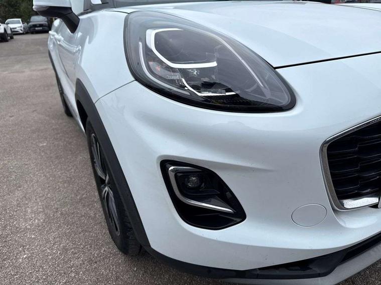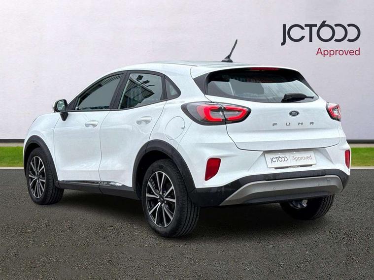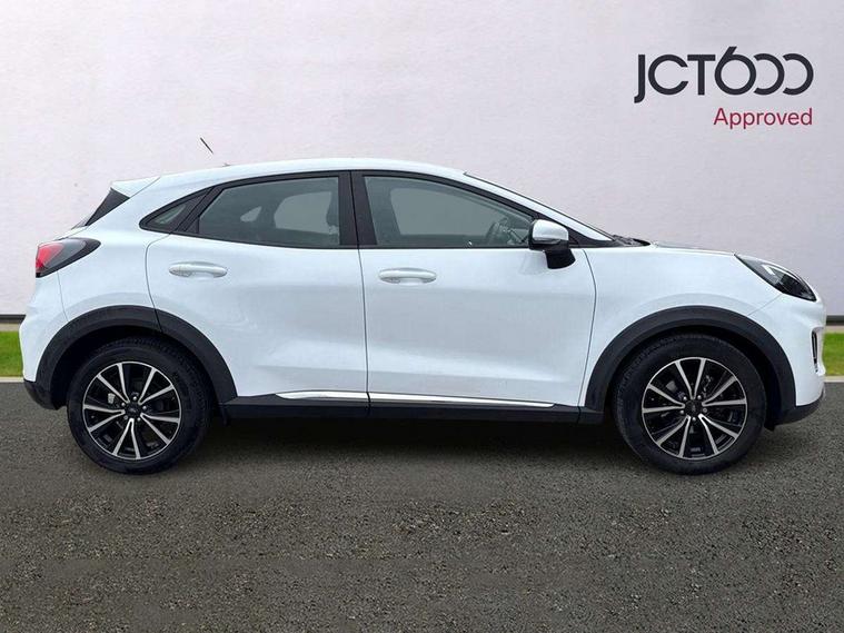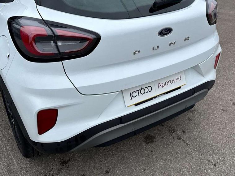 Driver impairment monitor, Emergency call service, Ford easy fuel, Lane keeping aid with lane departure warning, Power assist steering, Power start button, Rear parking sensor, Selectable drive modes(Normal, sport, Eco, trail, slippery), Speed sign recognition, Standard suspension, Automatic headlights with auto high beam, Automatic rain sensing wipers, Body colour rear spoiler, LED rear lamps, Power foldable heated door mirrors with puddle lamps, Projector headlamps with LED day time running lights and front fog lamps, Quickclear heated windscreen, Rear side wing doors, Rear wiper, Third brake light, 3 seat bench in 2nd row, Centre console with armrest and stowage, Electronic automatic temperature control (EATC), Ford megabox extended bootspace, Front and rear head restraints, Front floor mats, Manual 2 way passenger seat adjustment, Manual 4 way driver seat adjust with lumbar adjustment, Sensico leather steering wheel/gear knob/handbrake, Single front passenger seat, Titanium cloth upholstery, Ford SYNC 3 navigation pack - Puma, 3 rear seatbelts, Child safety lock, Electronic stability control (ESC) and hill start assist, Pedestrian/cyclist detection & post-collision braking, Pre collision assist system, Tyre pressure monitoring system (TPMS), Thatcham alarm, 17" 10 spoke absolute black machined finish alloy wheel,