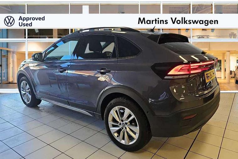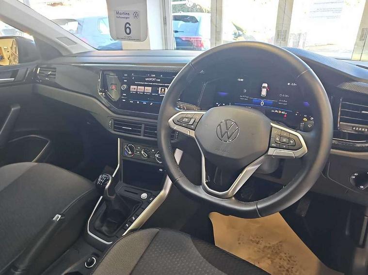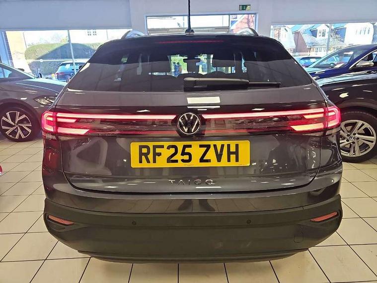 8" Digital cockpit basic display, Advanced driver attention and drowsiness monitor, Dynamic road sign display, e-Call (emergency call), Power Steering, Predictive adaptive cruise control, Rear view camera, Travel assist including emergency assist, Washer fluid level indicator, Wireless Charging including Bluetooth, Start-stop system with battery regeneration (recuperation - energy recovery during braking), Digital radio reception (DAB+), WeConnect plus, Ambient lighting with logo projection, Aspherical driver's exterior mirror, Body coloured bumpers, Body coloured exterior mirror housings and door handles, Electric windows, External USB type C socket and charging sockets, Heat insulating glass windscreen, LED rear combination lamp, LED third brake light, Left convex exterior mirror, Power folding adjustable/heated exterior mirrors and front passenger exterior mirror lowering function, Rear fog light on one side, reversing light on both sides, Rear side wing doors, Rear wash/wipe with intermittent wipe setting, Side windows in heat-insulating glass, from B-pillar and rear window dark tinted, 'Slash/ Austin' Cloth upholstery, 12V socket in centre console, 2 front reading lights, 3 rear head restraints, 3 seat bench in 2nd row, Black carpets, Ceramique headliner, Child seat anchor for child seat system i-Size, 2x top tether and child seat anchor in front on front passenger side, Door and side trim panels in titan black, Driver and front passenger seat height adjustment, Front centre armrest, Handbrake lever handle in leather, Height and reach adjustable steering wheel, Leather trimmed gear knob, Leather wrapped multifunction steering wheel, Luggage compartment floor, Luggage compartment light, Lumbar support for driver's and front passengers seat, Seat covers in titanium black, Single front passenger seat, Split folding backrest with centre armrest and unsplit rear seat bench, Storage compartment under front seats, Sun visors with illuminated vanity mirrors, Titanium black instrument panel, Chrome Package - Taigo, Drivers assistance package - Taigo, Light and sight pack - Taigo, 2 x 3-point seatbelts/outer rear seats with ECE label, 3-point seat belts in front with pretensioner and height adjustment, 3-point seatbelt for centre rear seat, Driver and front passenger airbag with front passenger airbag deactivation, Driver and front passenger safety-optimised head restraints, Electronic stability control, Extended and predictive pedestrian/ cyclist protection, Front and rear disc brakes, Front curtain and side airbags with center airbag, Hill start assist, Manual rear child locks, Single tone horn, Tyre pressure loss indicator, Anti-theft alarm system with interior monitoring, backup horn, and towing protection, Keyless locking and starting system keyless access with safelock, Black (slush) Dashboard, Lava stone black gloss/matt decorative inserts in dash and front door panels, Low rolling resistance tyres,