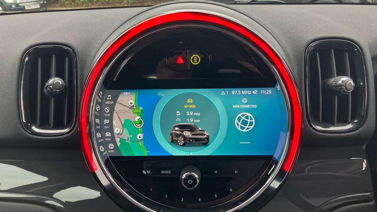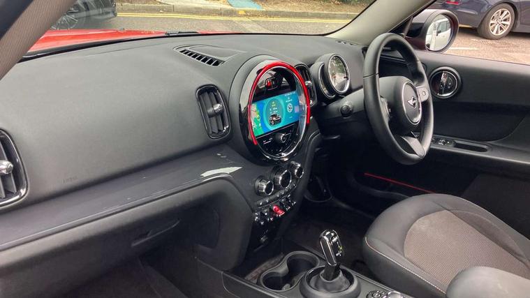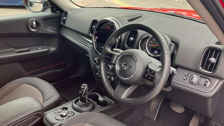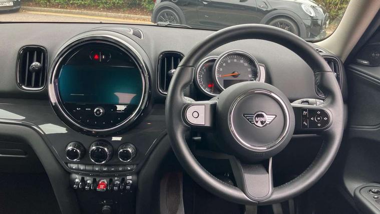 Active Guard incl speed limiting and lane departure functions with auto steering, and front collision warning with brake intervention, Automatic start/stop function with brake energy recuperation, Compatible mobile phone bluetooth with audio streaming, Cruise control with brake assist, Electro-mechanical speed dependant steering assistance, Instrument cluster, Mini E-call, On board computer, Rear parking distance control, 51 Litre fuel tank, Double Vanos system, Fully variable valve control, High precision injection, Performance Control, Steptronic transmission with double clutch, FM tuner and DAB digital radio, 3rd brake light, Body colour fuel filler cap, Day time driving lights, Door sill strips, Dynamic brake lights, Electric windows, Heated rear window, Heated windscreen washer jets, LED fog lights, LED Headlights, Left exhaust tailpipe with chrome finisher, Model logo, Model logo on Tailgate, Radiator grille, Rain sensor with auto headlights, Rear fog lights, Rear side wing doors, Rear window wiper, Side scuttle panel with integrated indicator, Split rear doors, Sun/heat protection glass, White indicator lenses, 12V socket in centre console, 3 seat bench in 2nd row, 3 spoke sport leather steering wheel + limiter function and audio controls, 360L luggage compartment capacity, 4 lashing eyes in luggage compartment, 40:20:40 split folding rear seats, Chrome interior highlights, Colour line - Carbon black, Cupholders, English handbook, Floor mats, Front headrests, Glove compartment, Headliner with grab handles and clothes hooks, Height and length steering column adjustment, Interior lighting with 12 basic colours selectable via toggle switch in roof, Isofix rear child seat preparation, Leather gearshift lever and handbrake gaiters, LED reading lights, vanity mirror lights, front foot well light and spotlight on front seats, Manual air conditioning, Mechanical seat adjustment, driver seat height adjust, forward/back and front seats backrest, Multifunction steering wheel, Passenger seat height adjuster, Rear headrests, Single front passenger seat, Storage compartments in doors, Sunvisors with vanity mirrors, Excitement pack - Countryman, Navigation pack - Countryman, 2 tone horn, 3 point seatbelts on all seats, 6 Airbags - front, side, head and seat belt tensioners, Anti-lock braking system (ABS), DSC - Dynamic Stability Control, Electronic handbrake, Front and rear disc brakes, Hill start assist, Manual rear child locks, Tyre pressure monitoring system, Alarm system with tilt sensor, monitoring doors, bonnet interior and tailgate, Auto drive away locking, Deadlocking function, Electronic vehicle immobiliser, Locking wheel bolts, Start/stop toggle with keyless go, Tool kit,