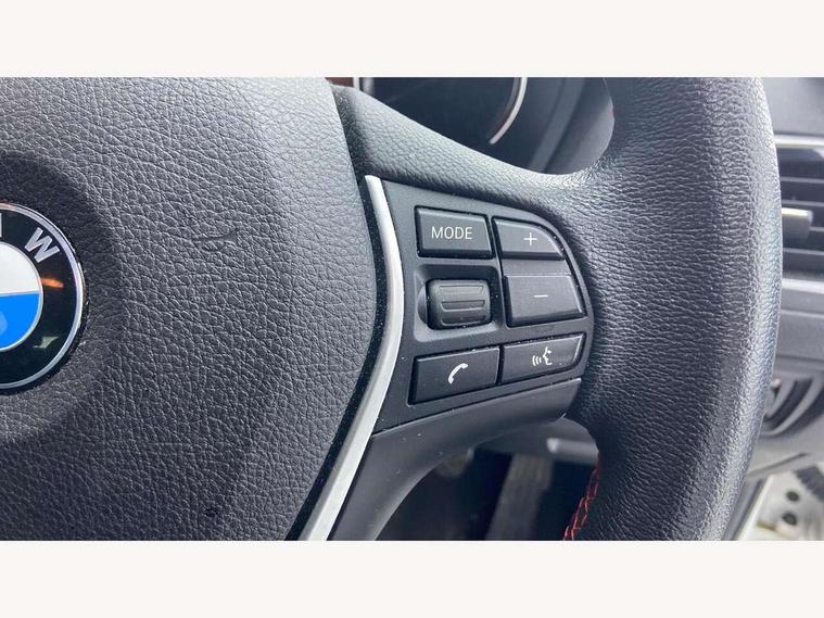 Automatic start/stop system, BMW Online services, BMW remote services, BMW Teleservices, Brake force display, Brake pad wear indicator in front and rear, Check Control warning system for monitoring of lights and door/luggage compartment open warning, Eco pro mode, Instrument cluster with speedometer with miles per hour read out, tachometer and fuel gauge, Lights on warning by audio warning signal when ignition is switched off, Oil temperature display via on board computer in instrument cluster, On board computer - average speed+fuel consumption, service interval, clock/date, odometer/trip meter, outside temperature display and ice warning, On board diagnostics, Optimum shift indicator, Personal Profile, Real time traffic information, Servotronic PAS, Speed limiter, Battery age recognition function, Drive Performance Control, BMW professional radio with CD player, DAB Digital radio, Body colour door handles, Body colour front and rear bumpers, Body colour roof mouldings, Clear lenses direction indicator lights, Dark chrome exhaust tailpipe, Daytime driving lights, Direction indicator side lights in exterior mirrors, Dynamic brake lights, Electrically adjustable heated door mirrors and washer jets, Follow me home headlights, Front air inlet with high gloss black finish, Front and rear bumper system with replaceable deformation elements, Front and rear electric windows with open and close fingertip control, anti trap facility and comfort closing, Green tinted heat protection glazing, Headlight beam throw control, Heated windscreen washer jets, High gloss black extra wide kidney grille with black vertical slats, High level third brake light, Lightweight engineering, Nearside reverse light in rear light cluster, Offside rear fog lights, Rain sensor including auto headlights activation, Rear bumper with high gloss black finish, Rear window aerial, Rear window wiper, Shark fin antenna, Visible VIN plate, Welcome lighting, 12V power socket in centre console, 12V power socket in passenger footwell, 60/40 split folding rear seat, Anthracite Velour front and rear floor mats, Conditioned based service, Four grab handles integrated in roof lining, Front and rear side armrest integrated into door trim, Front door sill finishers in BMW designation, Front folding sliding armrest with storage compartment, Front head restraints, Front sports seats with electric side bolster adjustment, Front storage compartment in centre console and in door trim, Front/rear courtesy lights with soft on/off dimming, Glove box handle with chrome surround, Glovebox, Interior light in front centre interior mirrors and rear centre auto interior light activation when door is opened when ignition switched off, Isofix child seat for two outer rear seats, Leather gear knob and handbrake grip, Luggage compartment access via BMW roundel, Manually adjustable steering column, Multi-function controls for steering wheel, Rear folding head restraints, Two cupholders with sliding cover and inlay mat, Two sills lashing eyes in the luggage compartment, 3 point seatbelts on all seats, front pyrotechnic belt tensioners, stopper and belt force limiters, rear coded belt buckles, Active differential brake (ADB), electronic differential lock in DSC-OFF mode, Airbags - Front driver and passenger, front and rear head, front side, curtain head protection, Anti lock braking system (ABS) with brake assist, Automatic Stability Control (ASC), Battery safety cut-off, BMW emergency call, Brake drying, Brake energy regeneration, Braking readiness, Cornering brake control (CBC), Crash sensor activating central locking release, hazard warning lights, Driver and front passenger seat belt security check, DSC+, Dynamic brake control, Dynamic Traction Control - DTC, Front passenger manual airbag deactivation, Front ventilated brake disc, Hill start assist, Rear brake discs, Rear child proof door locks, Side impact protection, Twin horns, Tyre pressure monitoring system, Warning triangle and first aid kit, Automatic drive away locking facility, Central locking switch for all doors, fuel filler cap and luggage compartment, Locking wheel bolts, Remote central locking with two Integrate key, one button for opening and closing all lock, open and close window, button for open luggage compartment, Remote control integrated key with red inset, Start/stop button with comfort go keyless engine start and auto start stop deactivation button, Thatcham Cat.1 alarm and immobiliser, Reduced rolling resistance tyres, Run flat tyres,