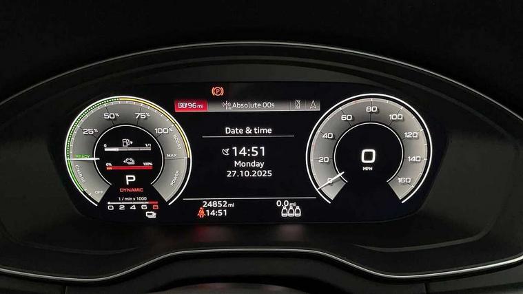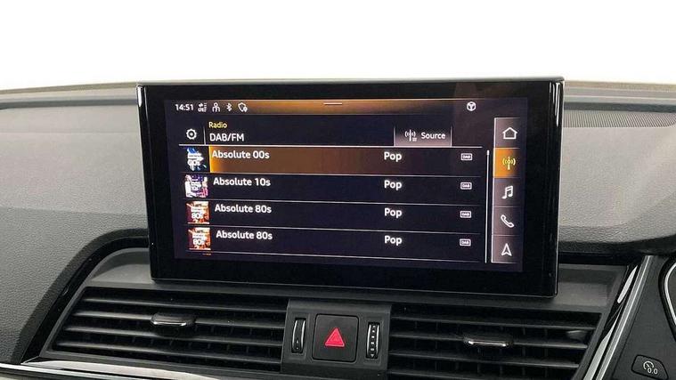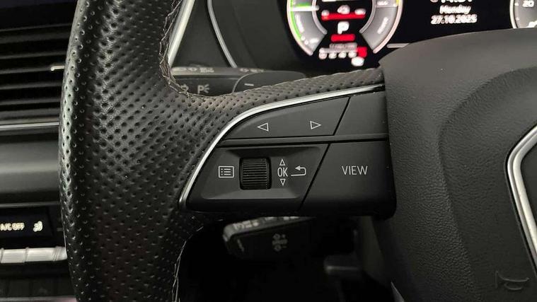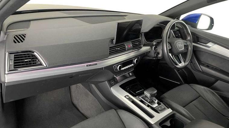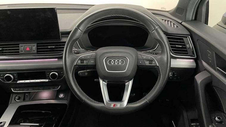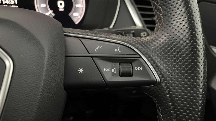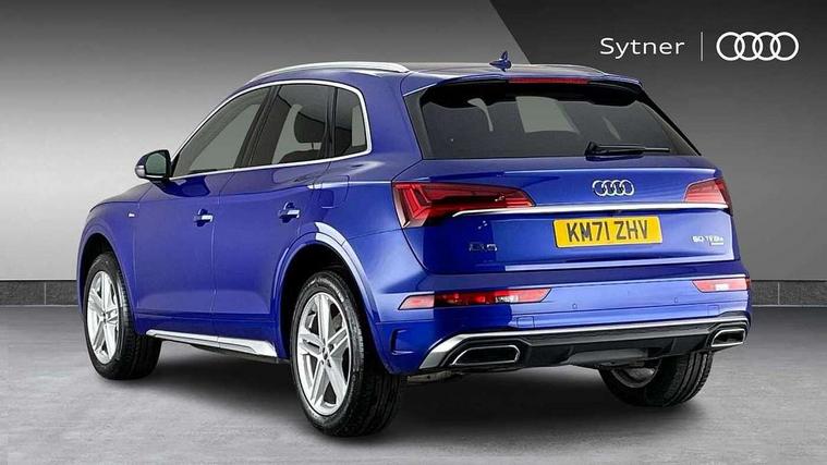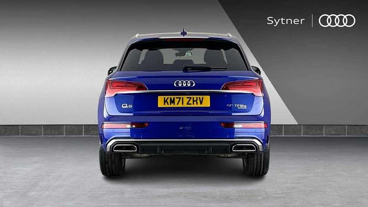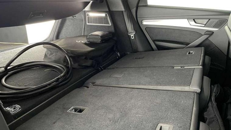 Audi connect safety and service (e-call), Audi connect with Amazon Alexa Integration, Audi drive select, Audi virtual cockpit plus with 12.3" screen and three different layout designs, Audi wireless smartphone interface, Automatic start-stop system with coasting functionality and efficiency programme, Bluetooth interface, Electro - mechanical power assisted steering, MMI navigation plus with 10.1" touch screen, Power tailgate, Reversing camera, Service interval indicator, Voice control system with Audi hotword activation "Hey Audi", 3 pin 10 amp domestic charging cable, Dynamic suspension, Quattro on demand, Type 2 mode 3 22kW 32 amp charging cable, Type 2 socket for AC charging, DAB Digital radio, 3rd brake light, Acoustic windscreen, Aluminium roof rails, Audi matrix LED headlights with dynamic front and rear indicators, Auto dimming rear view mirror, Automatic headlights and windscreen wipers, Body colour bumpers, Body colour door mirrors, Body colour rear diffuser with matt aluminium silver surrounds, Body colour underbody protection, Chrome plated exhaust trims, Daytime running lights, Door sills in Selenite silver, Electric adjustable/heated/folding door mirrors, Front air inlet surrounds in aluminium, Front and rear electric windows, Front radiator grille in honeycomb design, Headlight washers, Lower bumpers painted in contrast Manhattan grey, Rear chrome trim strip below lights, Rear privacy glass and rear side windows, Rear side wing doors, Rear spoiler, Rear wiper, Roof bars, S Line badges on the front wings, S Line front and rear bumpers, S Line side skirts, 2 x USB charging port with aux input socket, 3 rear headrests, 40:20:40 split folding 3 rear bench seat in 2nd row with rear centre armrest, Black cloth headlining, Comfort front centre armrest, Contrast stitching on seats, steering wheel and gear lever gaiter, Deluxe 3 zone electronic climate control, Front/rear floor mats, Gear lever in black leather, Heated front seats, Height adjustable front head restraints, Height/reach adjustable steering column, Illuminated door sill trims with S logo, ISOFIX child seat mounting and top tether, Manual seat adjustment with 4-way electric lumbar support, Rear seat bench plus, Single front passenger seat, Sunvisors with vanity mirrors, Tool kit, Trunk roller cover, High gloss pack - Q5, LED interior light pack - Q5, 3 point seatbelts on all seats, 6 airbags - Driver, front passenger, curtain and side airbags, Electrically operated child locks on rear doors, Electromechanical parking brake, Electronic stabilisation control including ABS, ASR and EDL, Front passenger airbag deactivation, Hill descent control, Hill hold assist, Multi collision brake assist, Pop-up bonnet for pedestrian protection, Pre sense city, Seat belt force limiter, Seatbelt monitoring, Tyre pressure warning, Warning triangle and first aid kit, Anti theft alarm, Anti-theft wheel bolts, Keyless Go access/ignition system, Matt brushed aluminium inlays, Tyre repair kit,