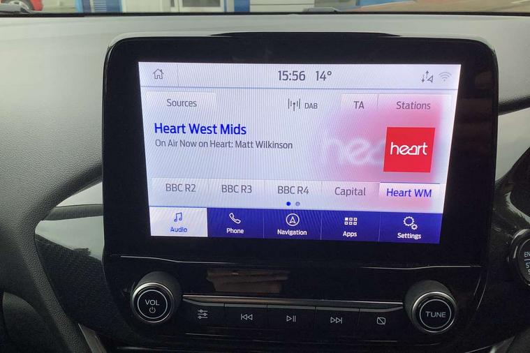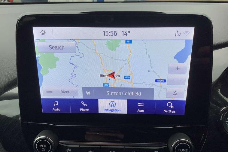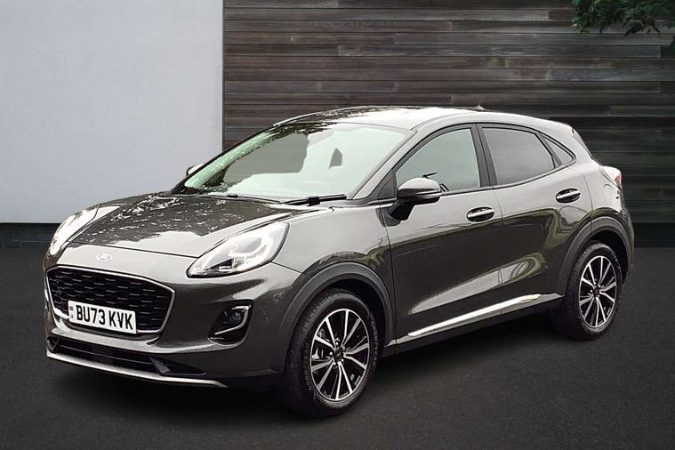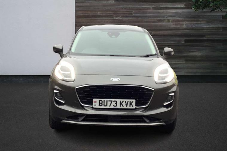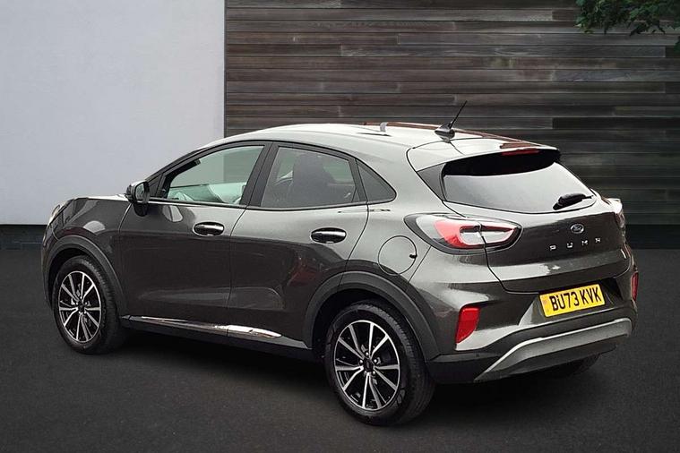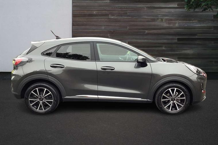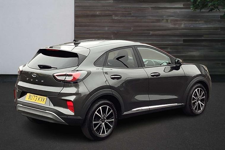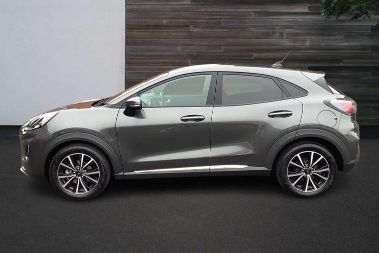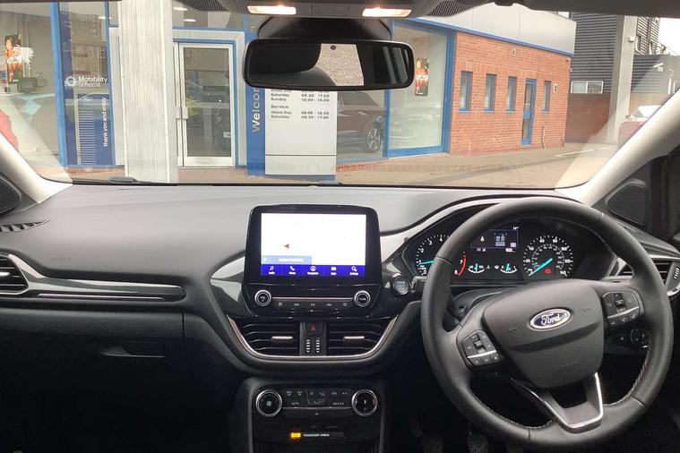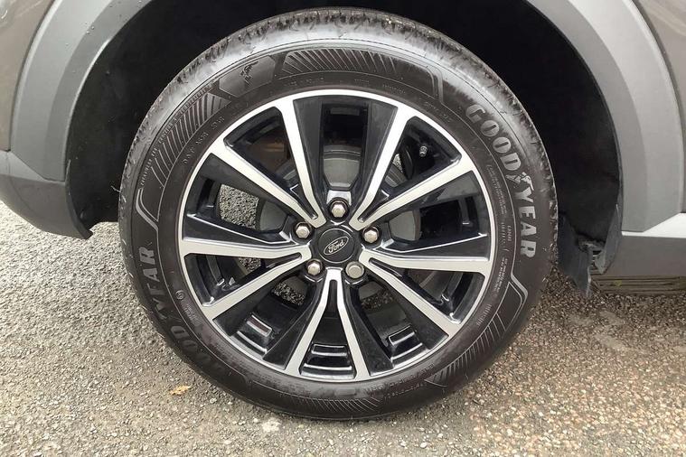 Driver impairment monitor, Emergency call service, Ford easy fuel, Lane keeping aid with lane departure warning, Power assist steering, Power start button, Rear parking sensor, Selectable drive modes(Normal, sport, Eco, trail, slippery), Speed sign recognition, Standard suspension, Automatic headlights with auto high beam, Automatic rain sensing wipers, Body colour rear spoiler, LED rear lamps, Power foldable heated door mirrors with puddle lamps, Projector headlamps with LED day time running lights and front fog lamps, Quickclear heated windscreen, Rear side wing doors, Rear wiper, Third brake light, 3 seat bench in 2nd row, Centre console with armrest and stowage, Electronic automatic temperature control (EATC), Ford megabox extended bootspace, Front and rear head restraints, Front floor mats, Manual 2 way passenger seat adjustment, Manual 4 way driver seat adjust with lumbar adjustment, Sensico leather steering wheel/gear knob/handbrake, Single front passenger seat, Titanium cloth upholstery, Ford SYNC 3 navigation pack - Puma, 3 rear seatbelts, Child safety lock, Electronic stability control (ESC) and hill start assist, Pedestrian/cyclist detection & post-collision braking, Pre collision assist system, Tyre pressure monitoring system (TPMS), Thatcham alarm, 17" 10 spoke absolute black machined finish alloy wheel,