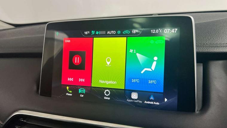 10.1" colour touchscreen, 12.3" Full digital driver information display, Adaptive cruise control, Android Auto, Apple CarPlay, Blind Spot Detection (BAS), Bluetooth connectivity, Driving modes, Emergency call service, Intelligent speed assist, Lane keep assist system (LAS) with Lane departure warning system (LDWS), PAS, Power tailgate, Rear cross traffic alert, Rear parking camera, Rear parking sensors, Satellite navigation system, Traffic jam assist, Trip computer, USB mobile phone charging function, 6 speaker audio system, DAB audio, Auto dimming rear view mirror, Automatic headlights, Body colour electric adjustable heated door mirrors, Electric folding door mirrors, Follow me home headlights, Front and rear aero wiper, Front and rear electric windows with one-touch up/down, Front fog lights, Intelligent high beam, LED Bi-Function headlights, LED centre brake light, LED daytime running lights, LED front and rear sequential indicators, Rain sensing wipers, Rear side wing doors, Silver roof rails, 12V power sockets, 2nd row 60/40 split fold seat, 2nd row seat with 2 stage incline adjustment, 3 rear headrests, 3 seat bench in 2nd row, 4 way electric adjustable passenger seat, 6 way electric adjustable drivers seat + lumbar support, Ambient lighting (adjustable colour), Dual zone automatic air conditioning, Front centre sliding armrest with storage compartment, Front headrests, Heated front seats, Height and reach adjustable steering wheel, ISOFIX restraints on outer rear seats x2, Leather steering wheel, Metal sports pedals, Single passenger seat, Sports Style Front Seats with One-Piece Back, Steering wheel paddle shift, 3x3 point rear seatbelts, ABS/EBD, Active emergency braking with pedestrian/Bicycle detection, Anti rolling protection, Cornering brake control (CBC), Drivers seatbelt reminder, Dual front airbags, Electric parking brake with auto hold function, ESP, Front and rear passenger seat belt reminder, Front passenger airbag deactivation switch, Front seat belt height adjuster, Front seatbelts (3-point + pretensioner + load limiter), Front side airbags, Hill descent control, Hill launch assist, Manual rear child locks, Rear outer seatbelt pretensioner and load limiter, Side curtain airbags, Tyre pressure monitoring system, Alarm system and engine immobiliser, Keyless entry and push button start system, Remote central locking, Speed sensing door locks, 18" Hurricane diamond cut alloy wheels, Tyre repair kit,