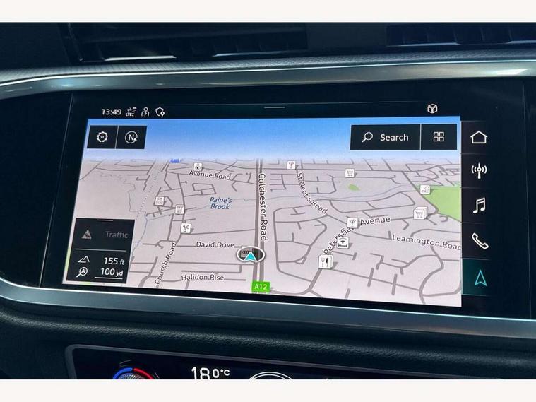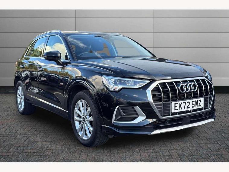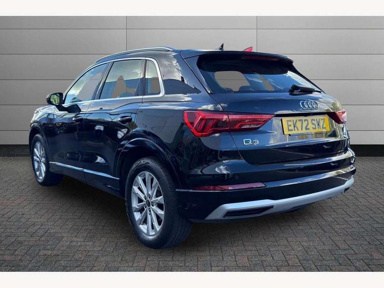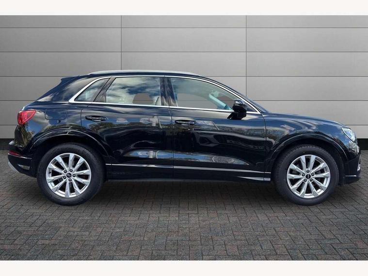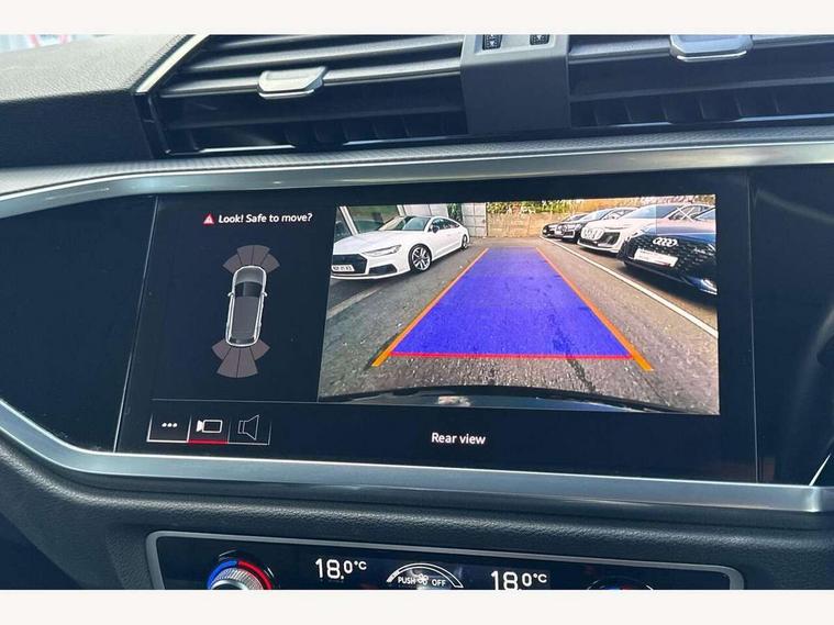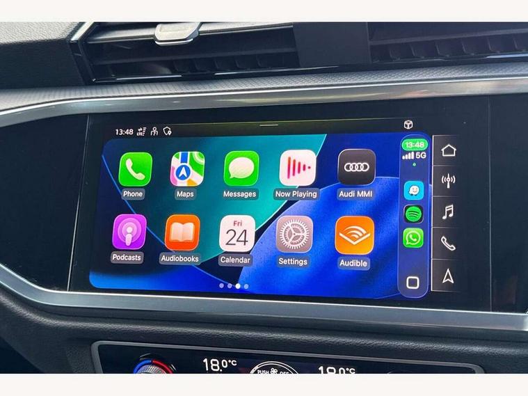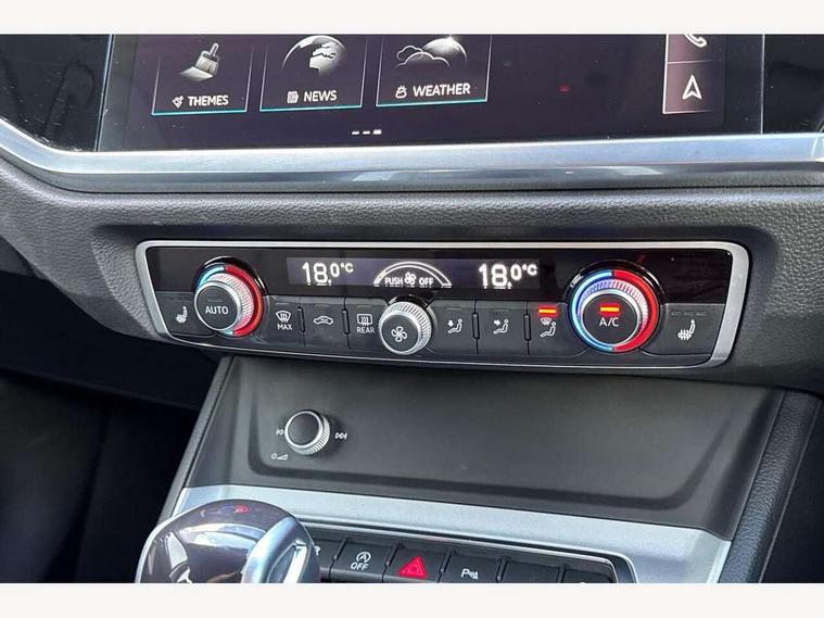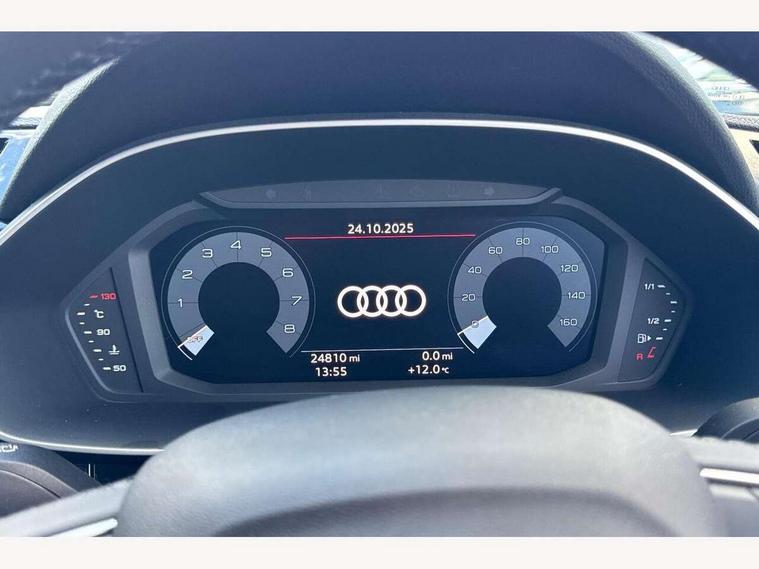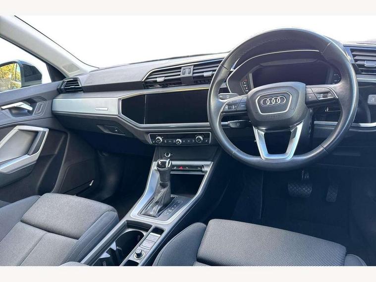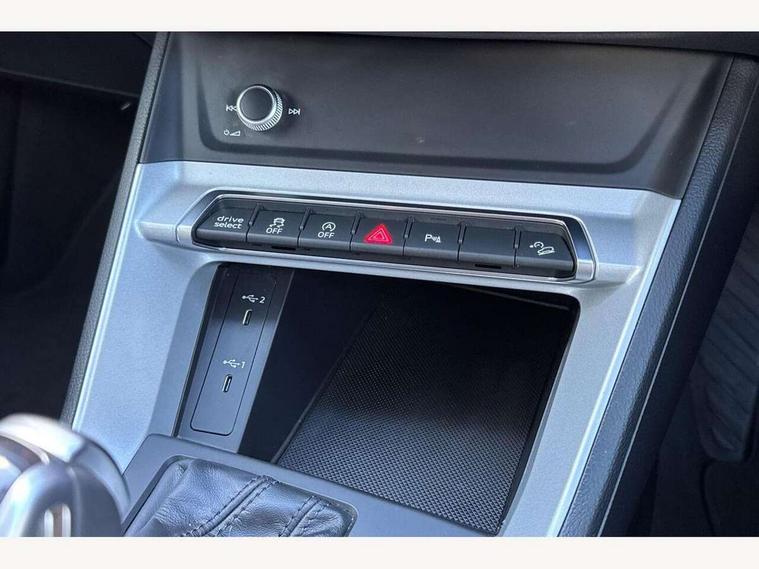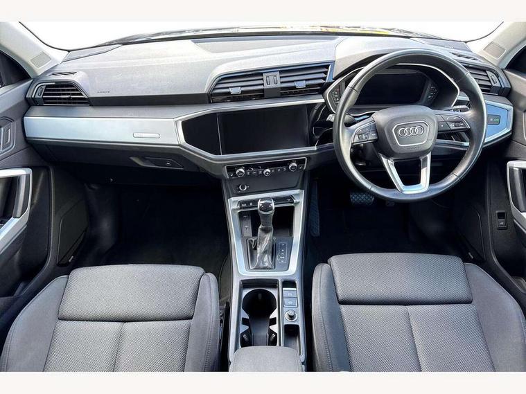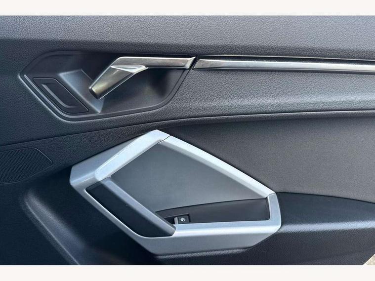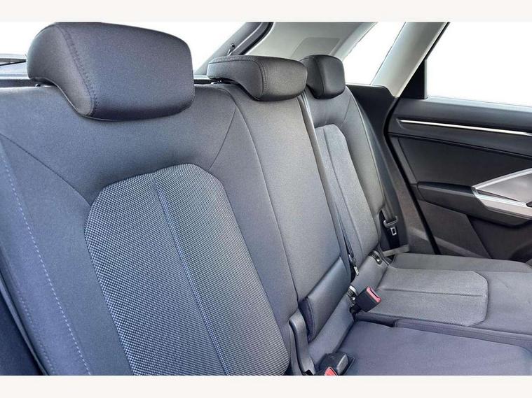 Amazon alexa Integration, Audi drive select, Audi lane departure warning, Audi Virtual Cockpit - 10.25" display, Bluetooth interface, Camera based traffic sign recognition, Legal emergency call, MMI Navigation Plus with high resolution 10.1 inch touchscreen colour display, Power operated tailgate, Progressive steering, Service interval indicator, Smartphone interface includes wireless Apple carplay/Android Auto, Start stop system with recuperation, Voice control system with natural language interaction, Standard suspension, 2 USB-C ports with charge and data functions, 6 passive loudspeakers, DAB digital radio module, Acoustic windscreen, Aluminium roof rails, Aluminium window trim, Auto dimming frameless rear view mirror, Body coloured bumpers, Electrically folding, adjustable and heated door mirrors with integrated LED side indicators and kerb view function for passenger side, Front and rear electric windows, Front fog lights, Front side air inlets in matt selenite silver, Front spoiler in matt selenite silver, Grille vertical bars in aluminium silver/Matt, High gloss black finish B and C pillars, LED Dynamic rear indicators, LED headlights with LED daytime running lights, LED rear lights, LED third brake light, Rain and light sensors, Rear diffuser strip in matt selenite silver, Rear side wing doors, Rear wiper, Titanium black radiator grille, Variable front intermittent wipers, 12V socket in rear centre console, 3 seat bench in 2nd row, 3 spoke multi-function leather steering wheel, 40:20:40 folding with manual adjustment for 60:40 forwards/backwards position and backrest angle, Door sill trims with aluminium inlay, Dual zone electronic climate control, Front and rear floor mats, Front and rear headrests, Front and rear roof module including reading lights, Front centre armrest, Glove compartment lighting, Height and reach adjustable steering wheel, ISOFIX child seat mounting for front passenger with airbag deactivation and outer rear seat including top tether attachment point for outer rear seats, Luggage compartment light, Lunar silver cloth headlining, Manual front seats with height adjustment, Single front passenger seat, Stainless steel luggage compartment sill finisher, Non smoking pack - Q3, 3x3 point rear seatbelts, 6 airbags - Driver, front passenger, curtain and side windows, Audi pre-sense front with pedestrain and cyclist recognition, Electrically operated child locks on rear doors, Electromechanical parking brake, Electronic stabilisation control including ABS, ASR and EDL, Front seatbelt reminder, Hill descent control, Hill hold assist, Pre sense basic, Seatbelt monitoring, Tyre pressure warning, Warning triangle and first aid kit, Anti theft alarm, Anti theft wheel bolts, Immobiliser, Remote central locking, Detail dashboard around MMI touch colour display in glass look, black with surround in aluminium look, Micrometallic silver inlay,